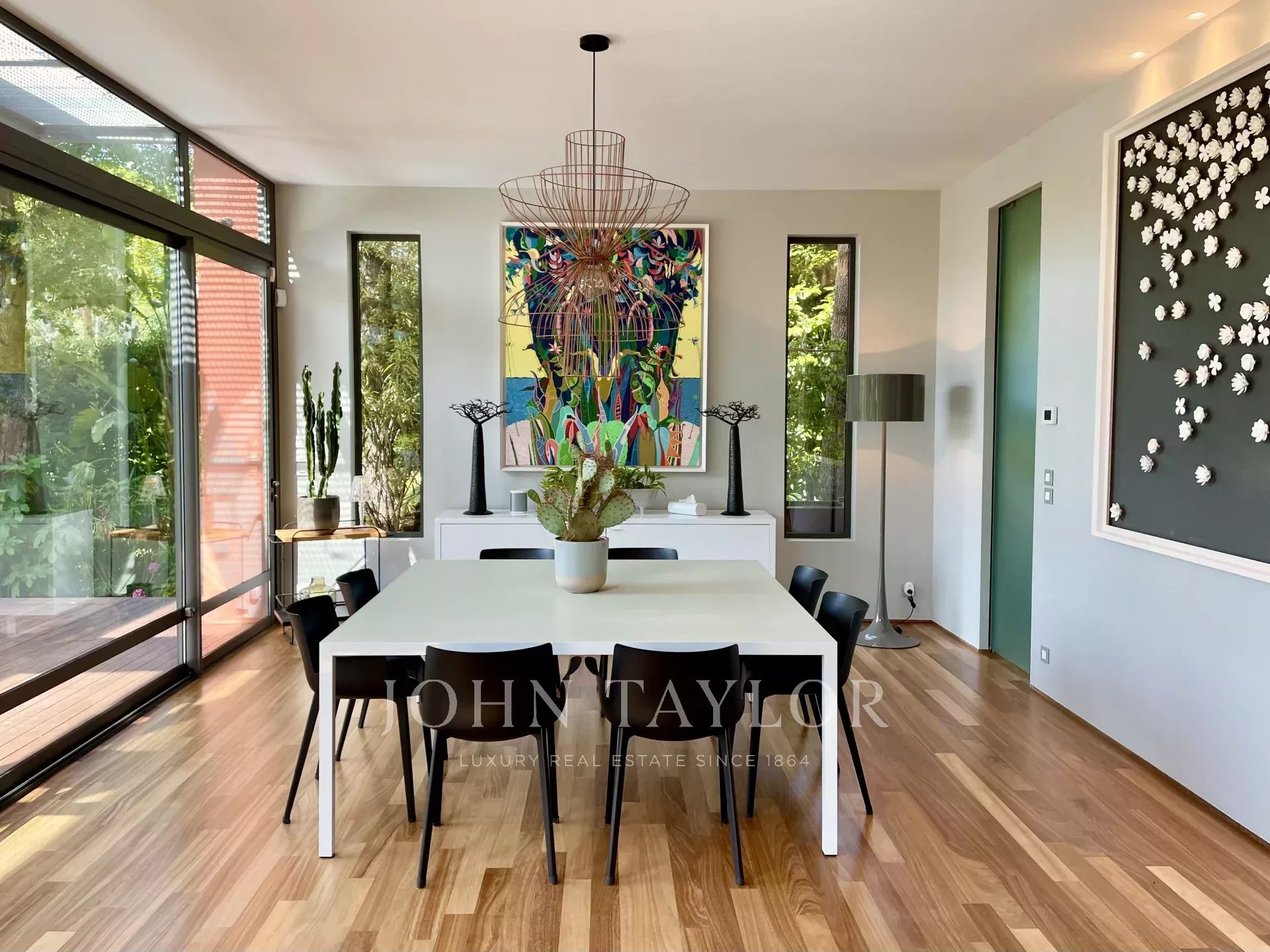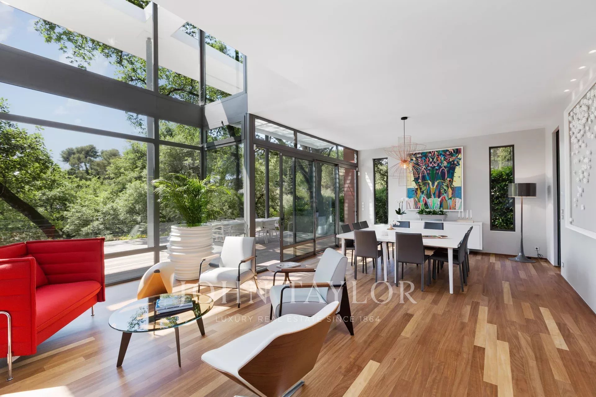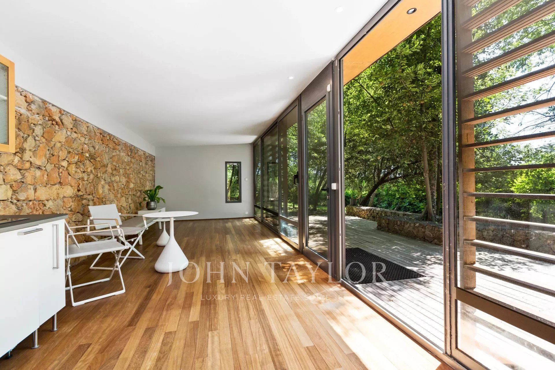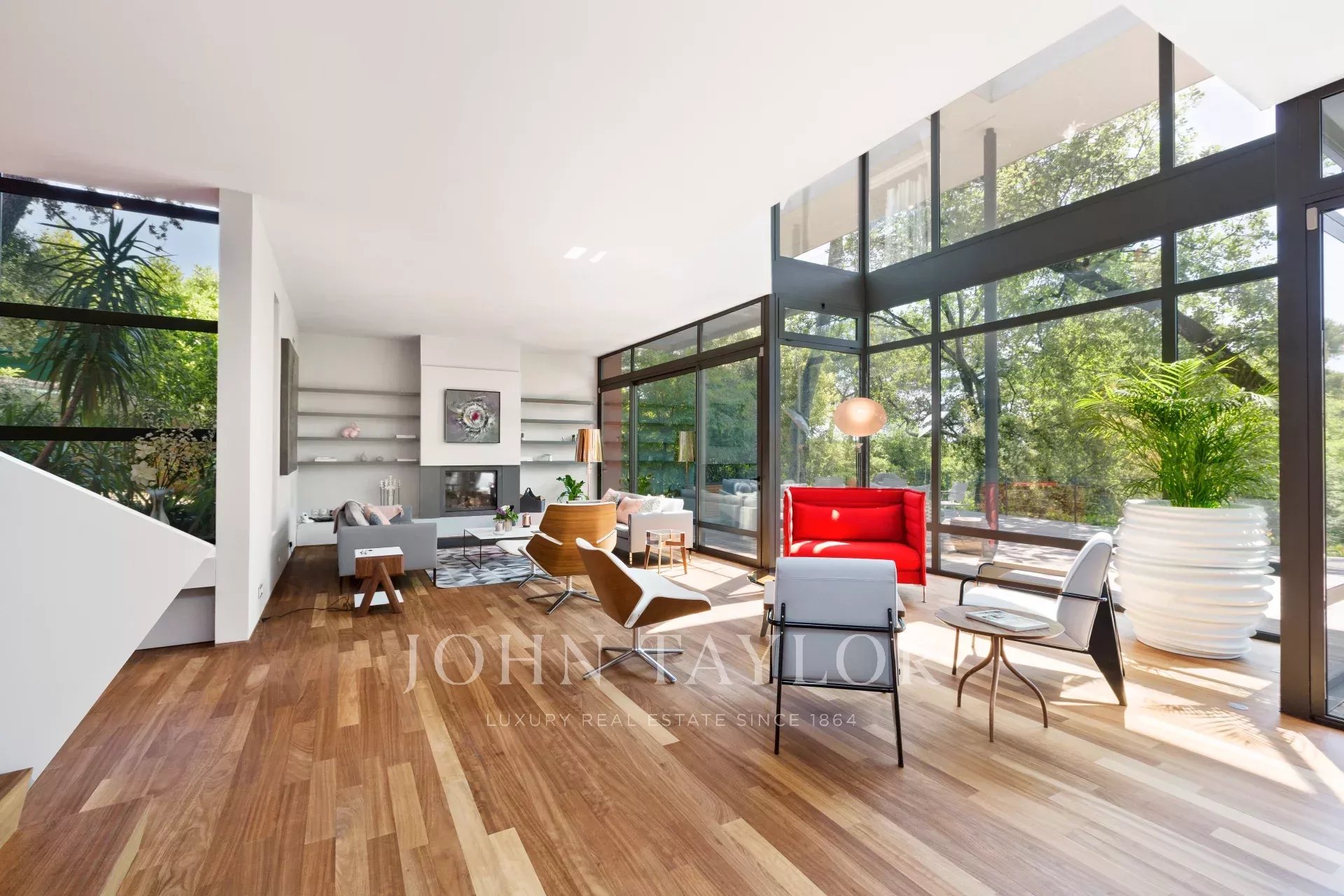 Tento moderní objekt o rozloze 350 m² se nachází v zalesněném areálu s nádhernými duby a borovicemi, jen několik metrů od nadace Fondation Maeght. Tato vila, kterou v roce 2002 navrhl italský architekt Antonino Cascio, je vzorem moderní architektury, zejména pro své inovativní bioklimatické prvky.