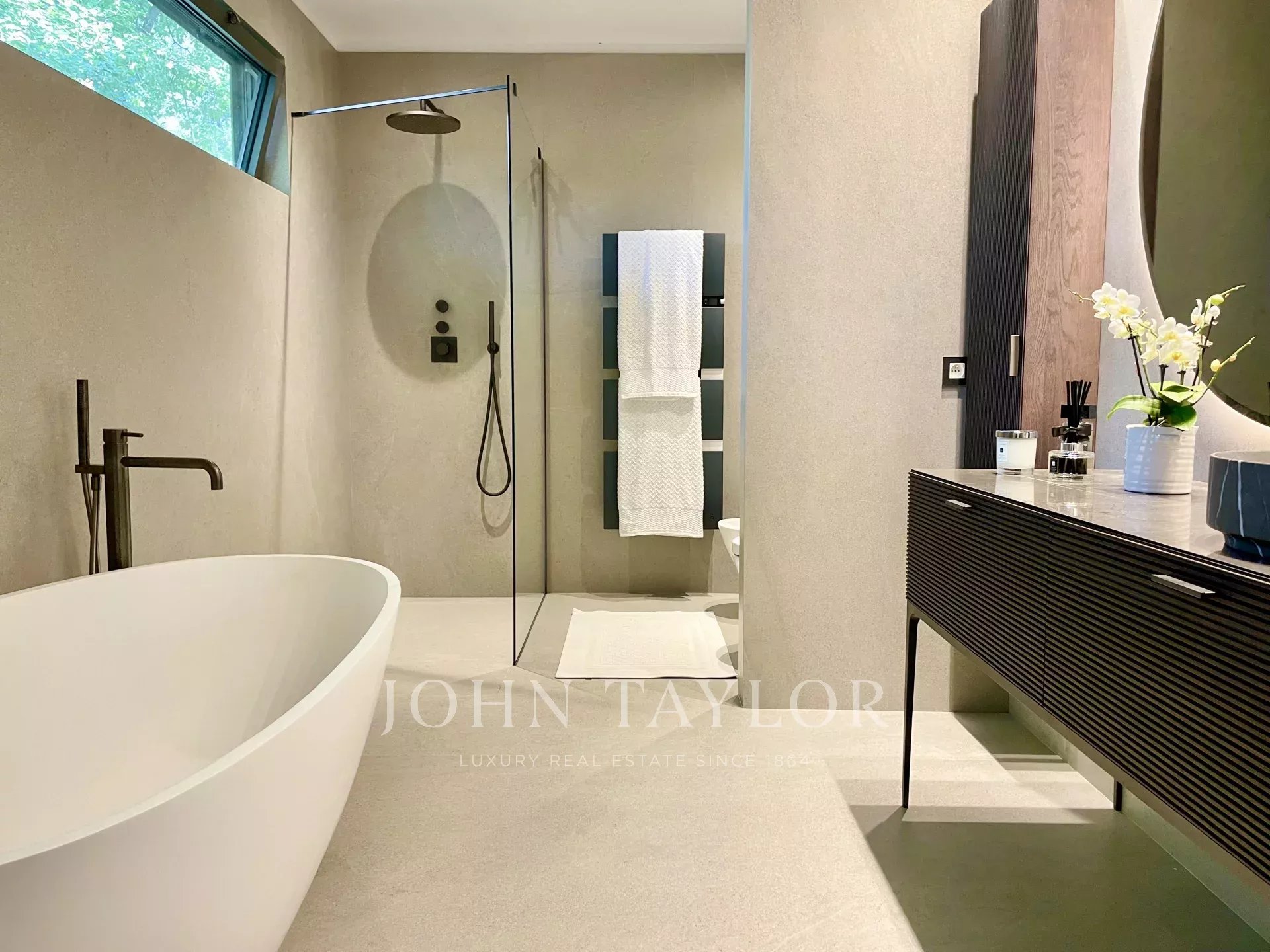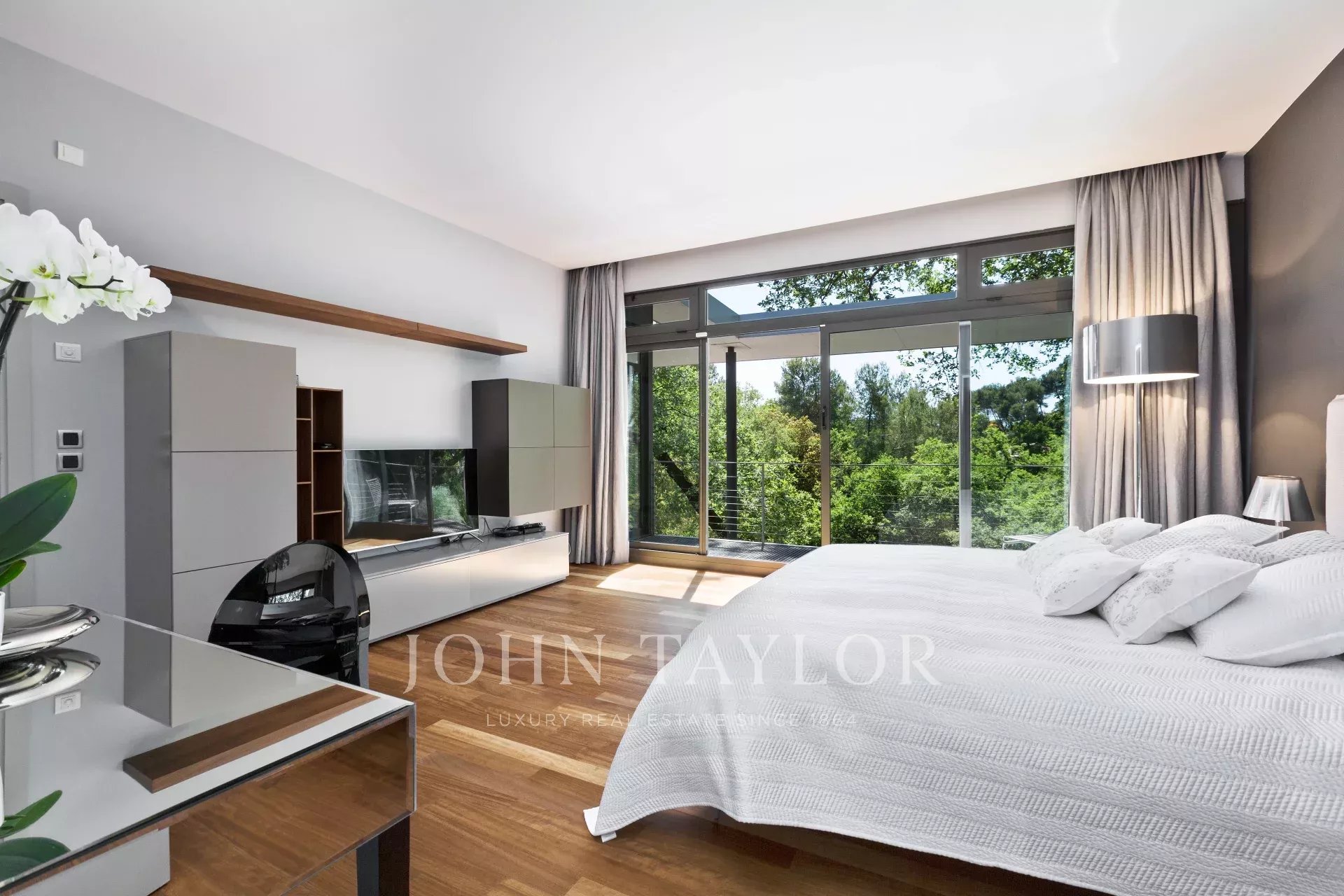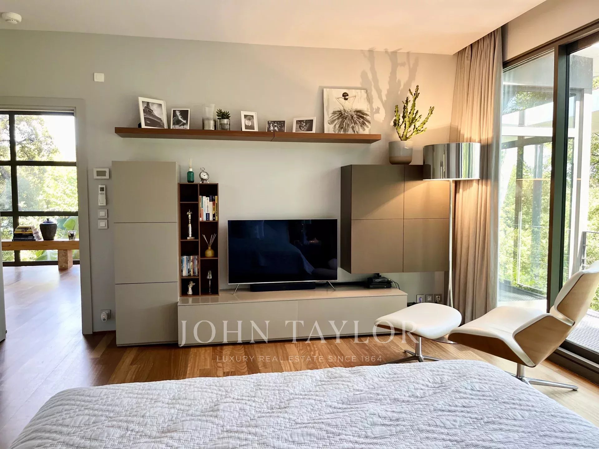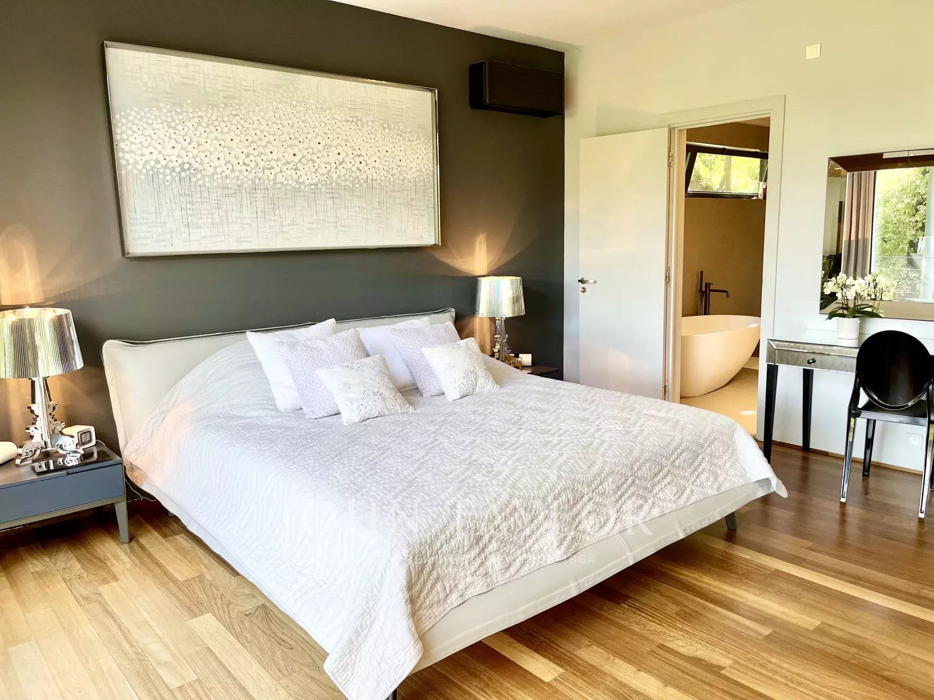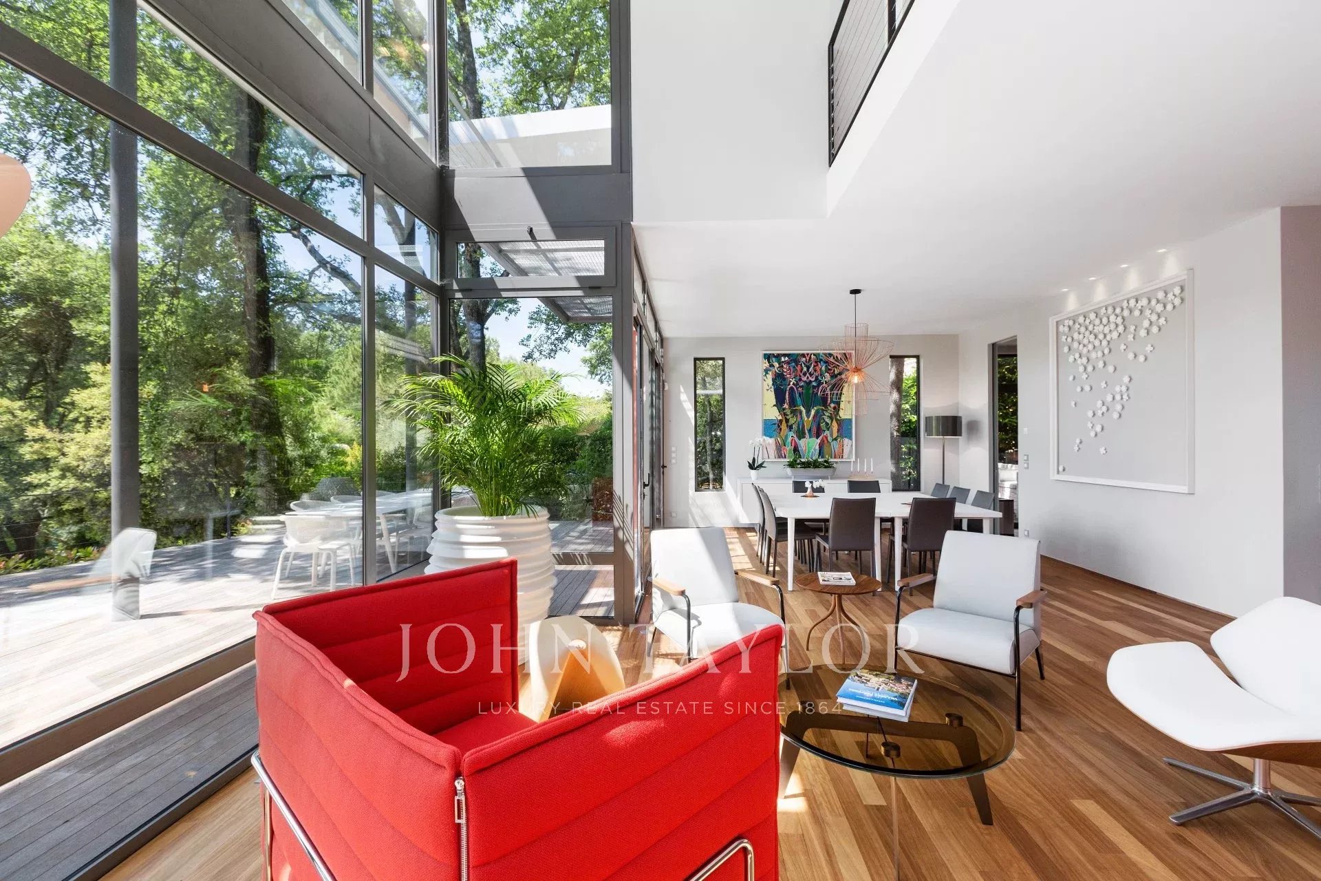 Tento moderní objekt o rozloze 350 m² se nachází v zalesněném areálu s nádhernými duby a borovicemi, jen několik metrů od nadace Fondation Maeght. Tato vila, kterou v roce 2002 navrhl italský architekt Antonino Cascio, je vzorem moderní architektury, zejména pro své inovativní bioklimatické prvky.