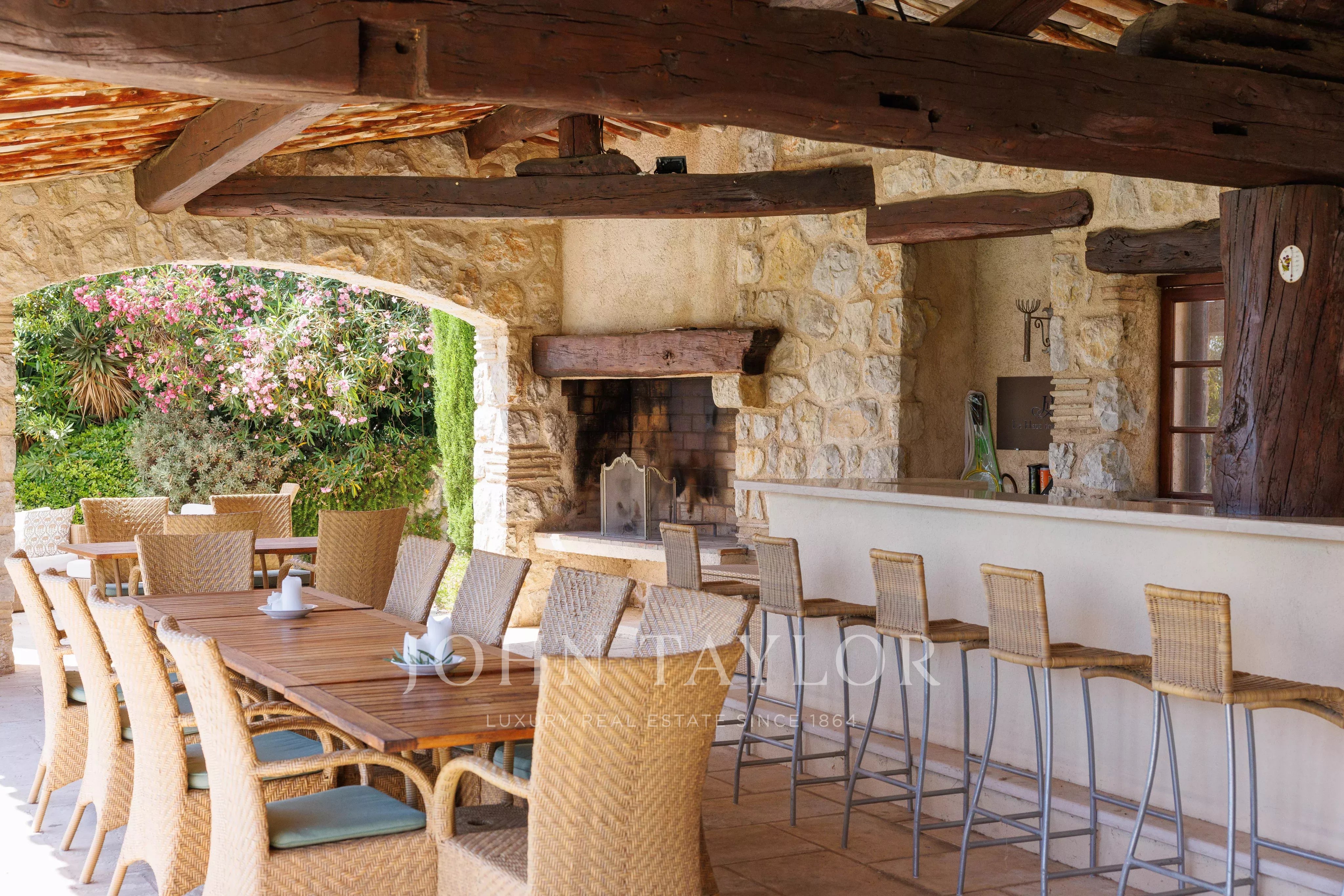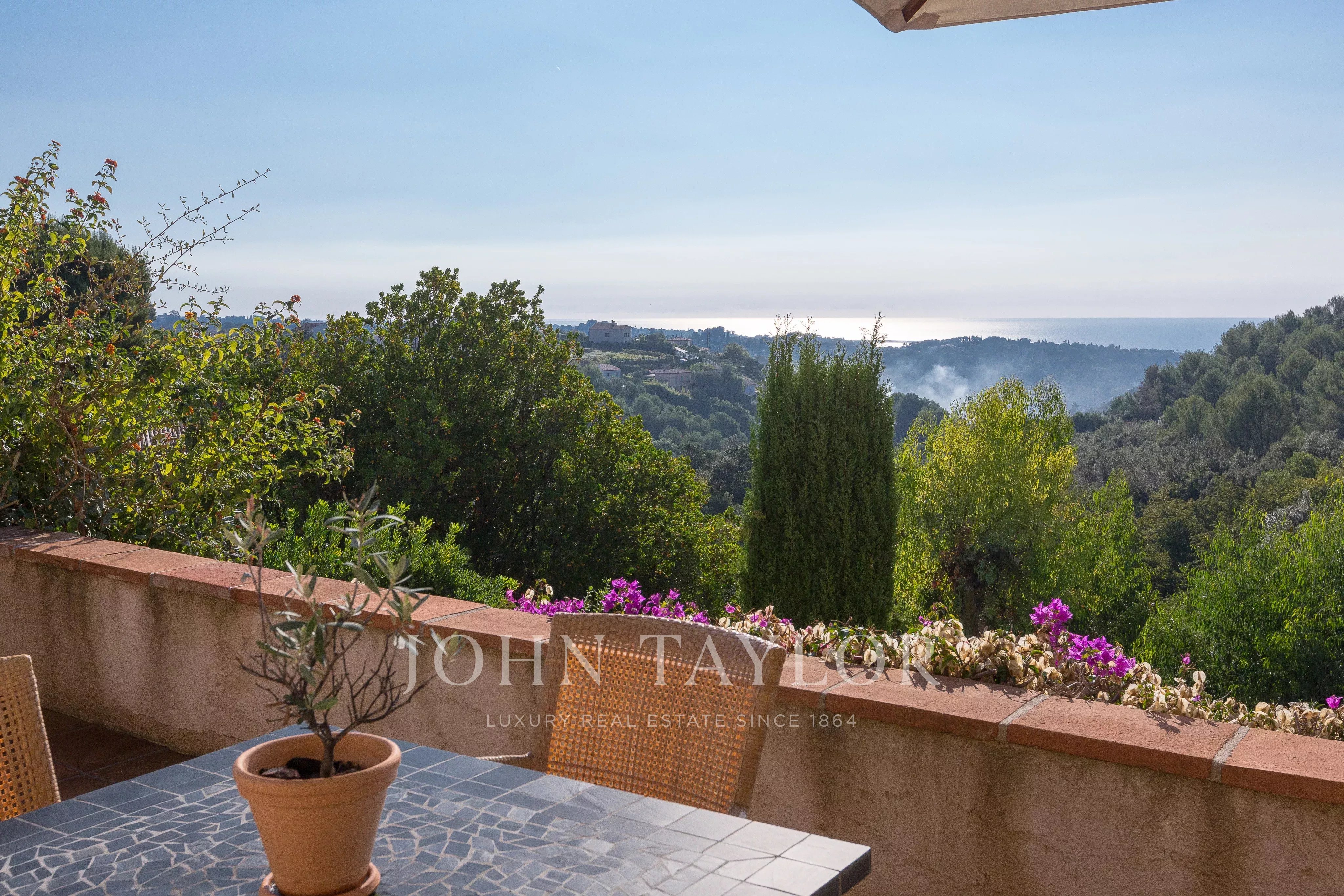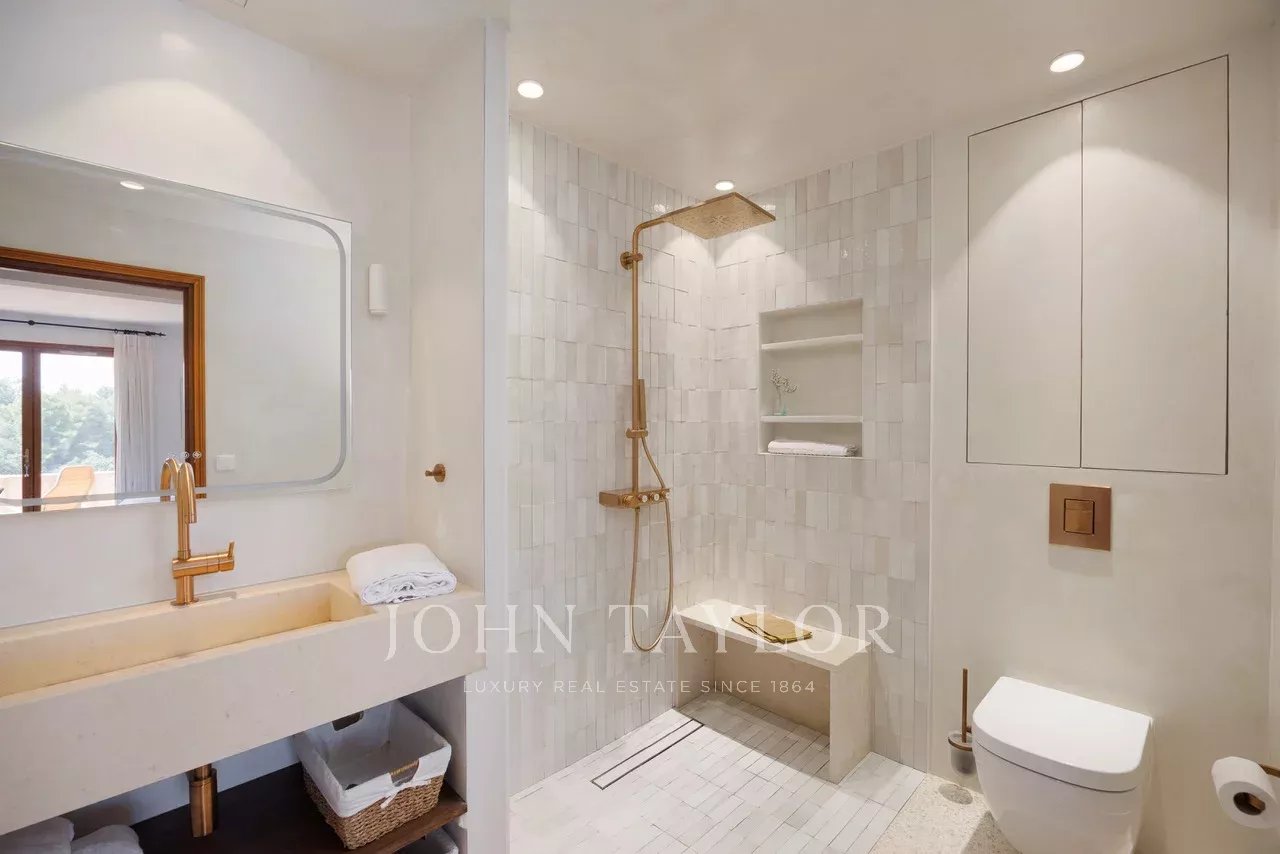 Tato nádherná kamenná nemovitost o rozloze 560 m², která se nachází v jedné z nejvyhledávanějších rezidenčních oblastí Saint-Paul-de-Vence, se rozkládá na pozemku o rozloze 6 400 m² a nabízí nerušený výhled na moře a okolní kopce.
