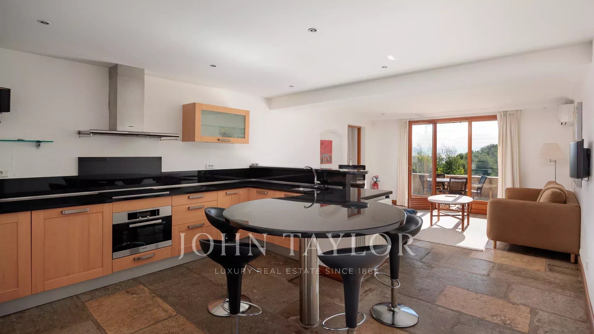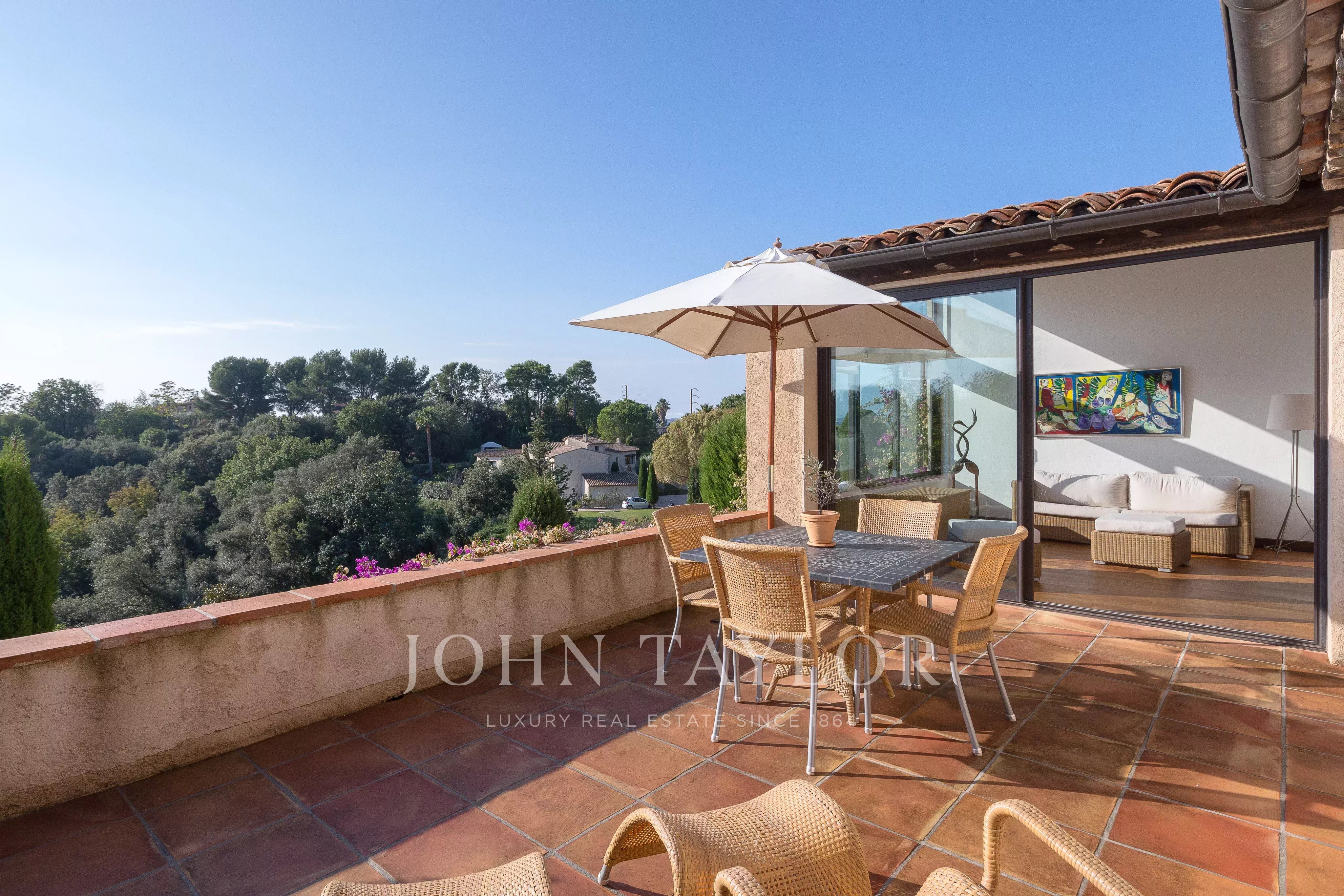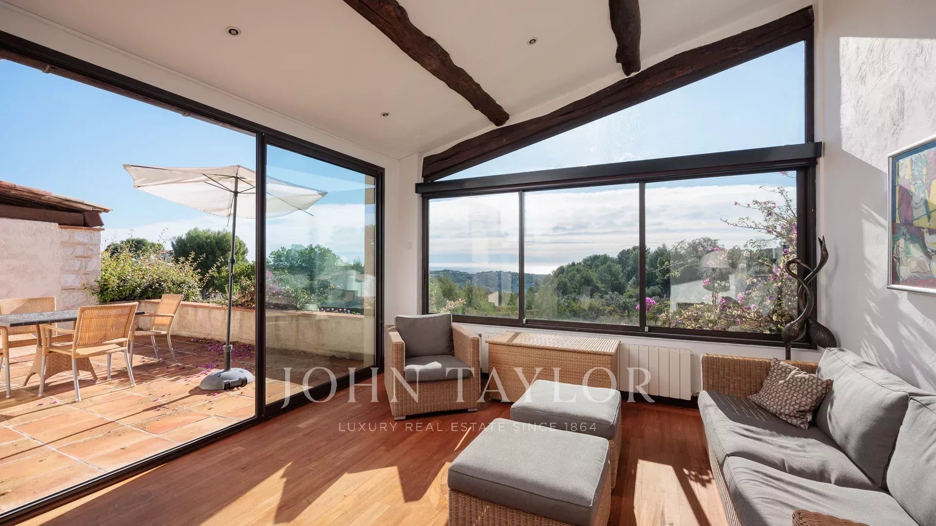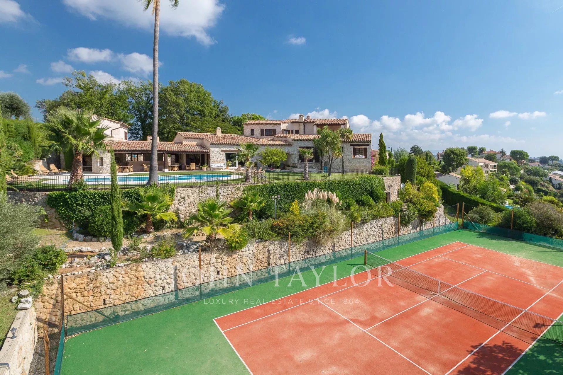 Tato nádherná kamenná nemovitost o rozloze 560 m², která se nachází v jedné z nejvyhledávanějších rezidenčních oblastí Saint-Paul-de-Vence, se rozkládá na pozemku o rozloze 6 400 m² a nabízí nerušený výhled na moře a okolní kopce.