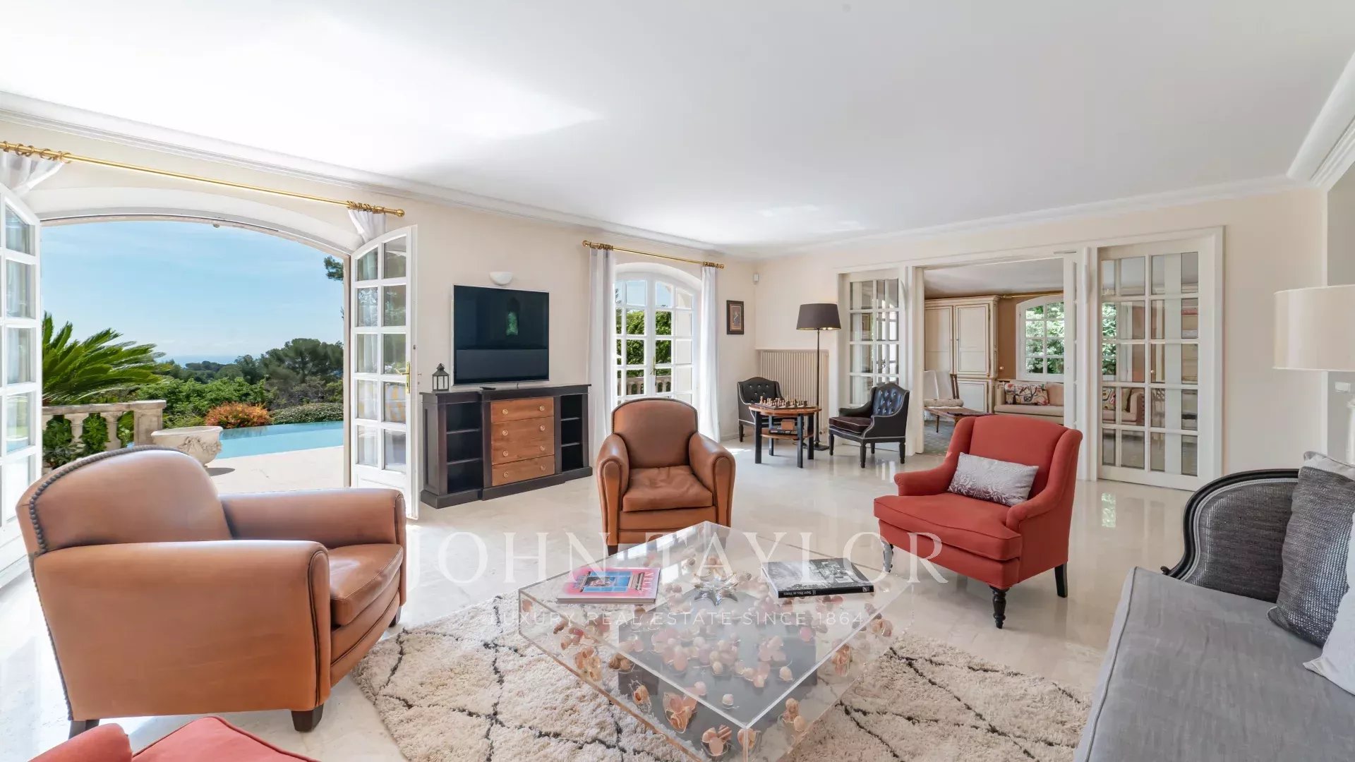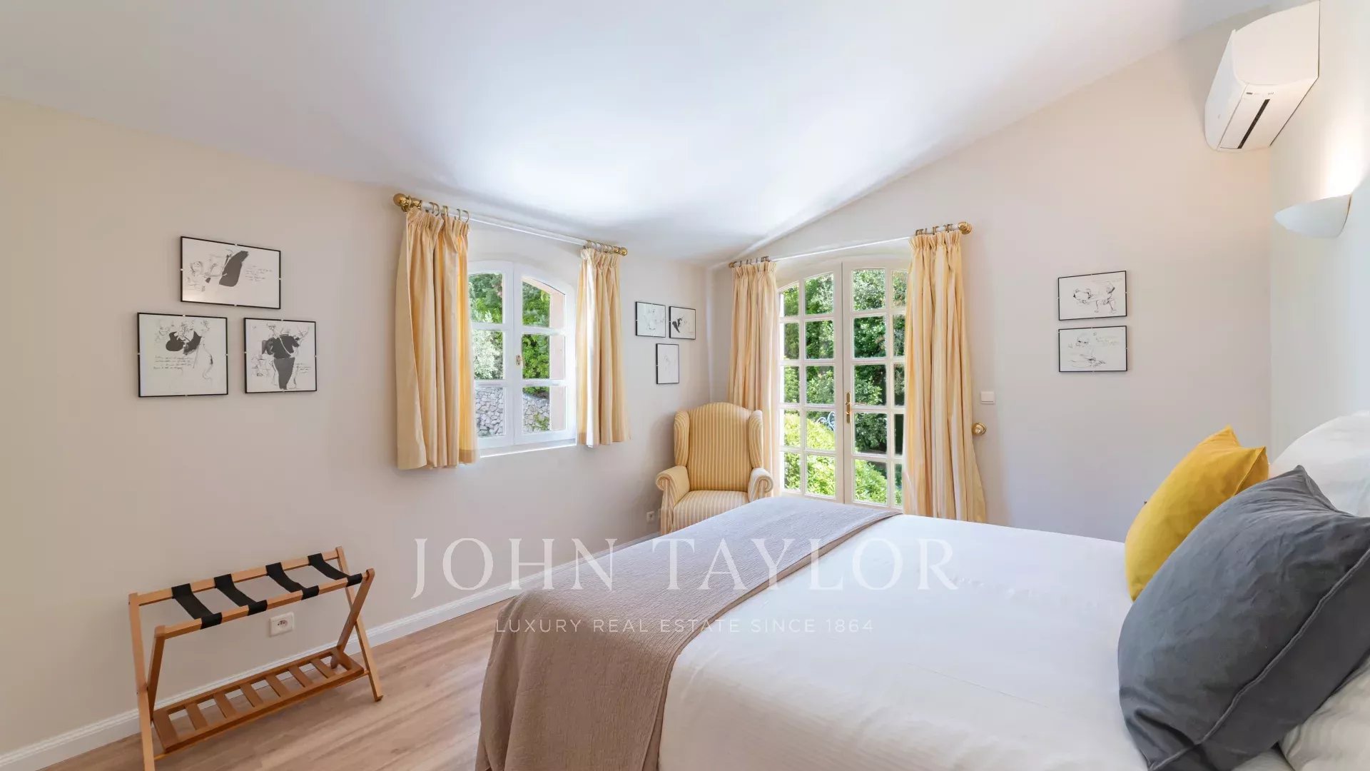 Vila se nachází na ideálním místě v klidném a prestižním prostředí, nedaleko Domaine des Hauts de Saint-Paul de Vence, a spojuje v sobě eleganci, pohodlí a klid.