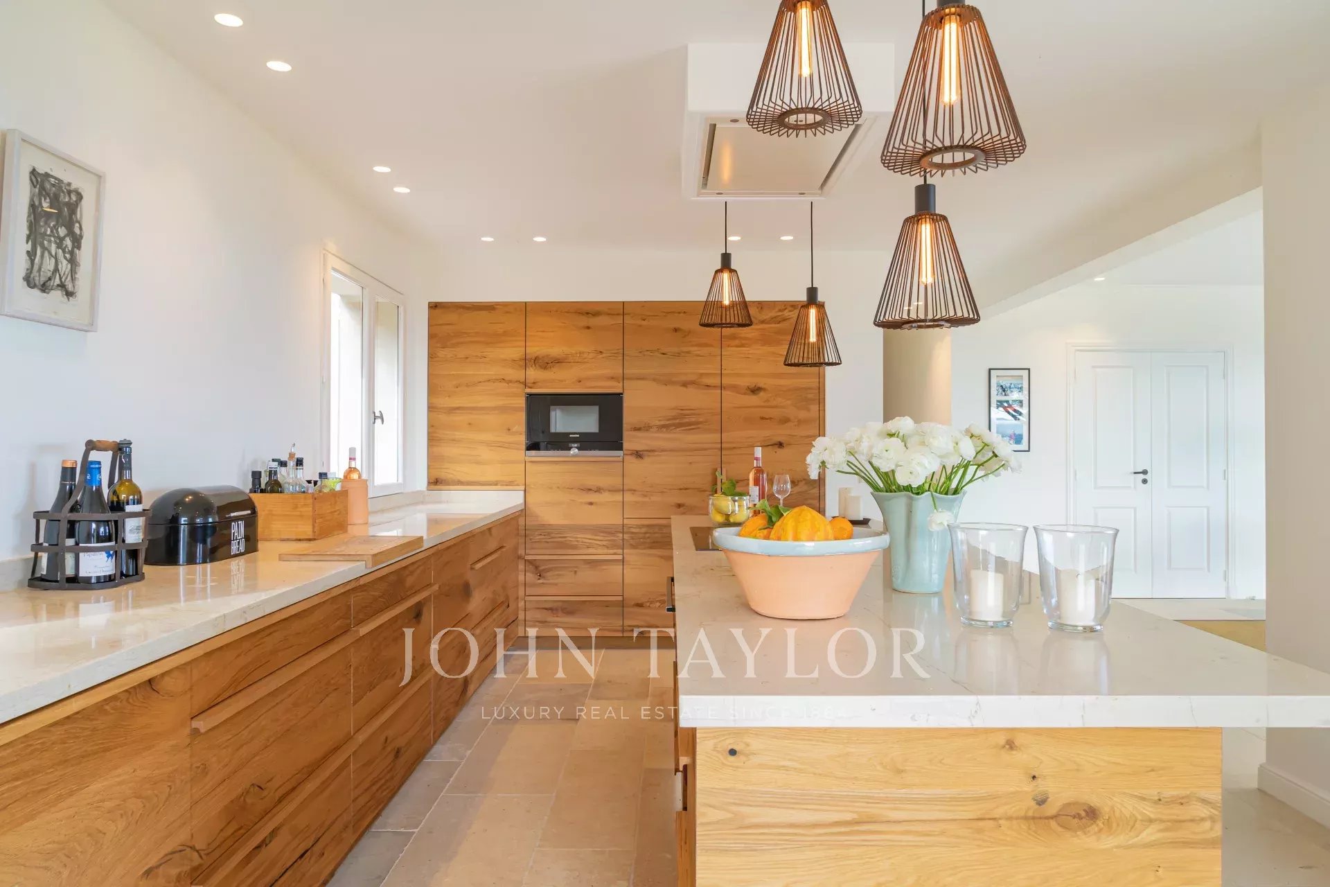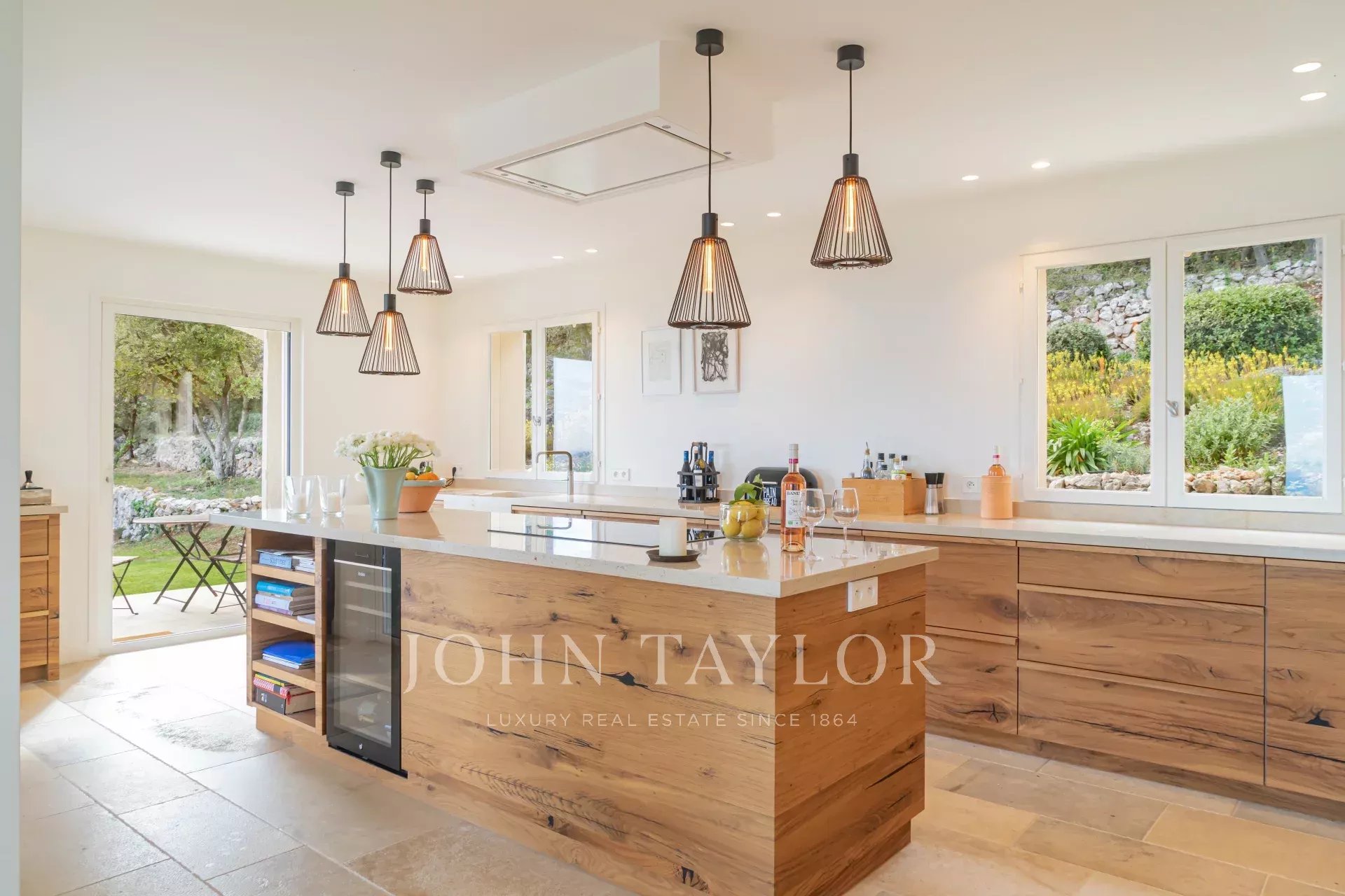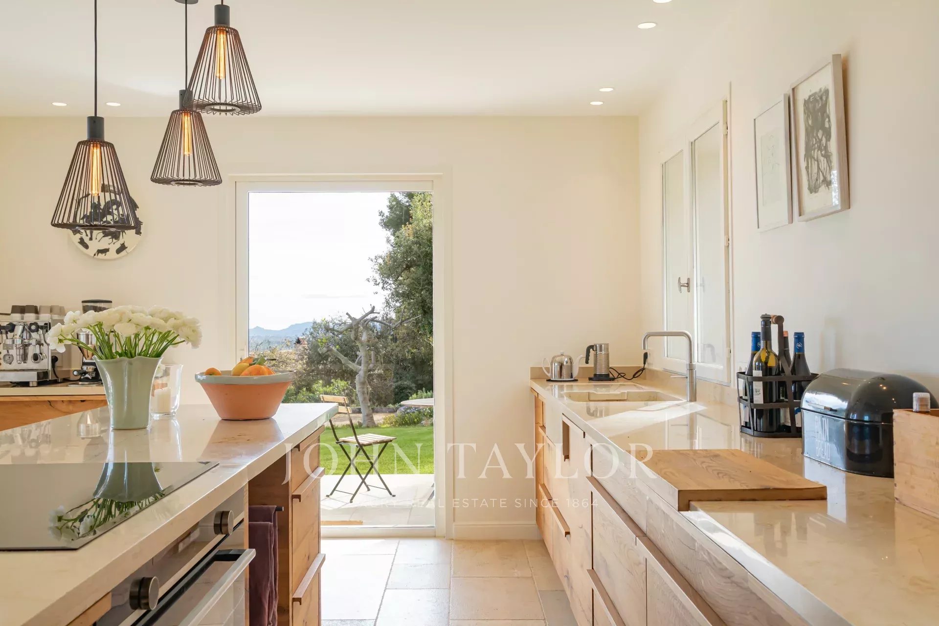 Přízemí: Vstupní hala, obývací pokoj, jídelna otevřená na terasu s výhledem na moře, velká plně vybavená otevřená kuchyně, rozšířená o velmi příjemnou krytou terasu s grilem na stejné úrovni jako zahrada.