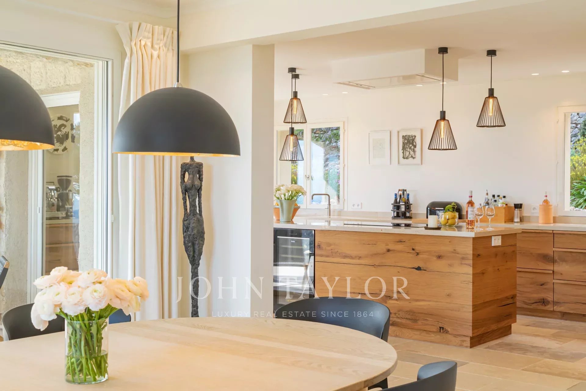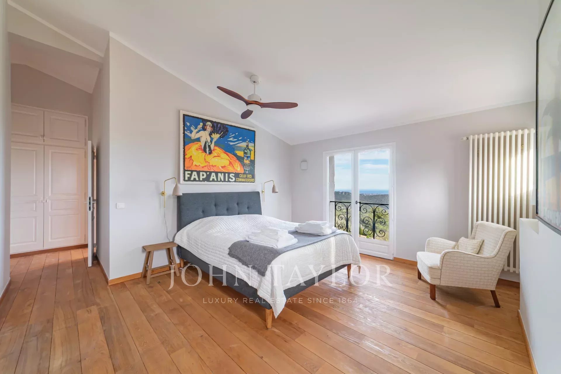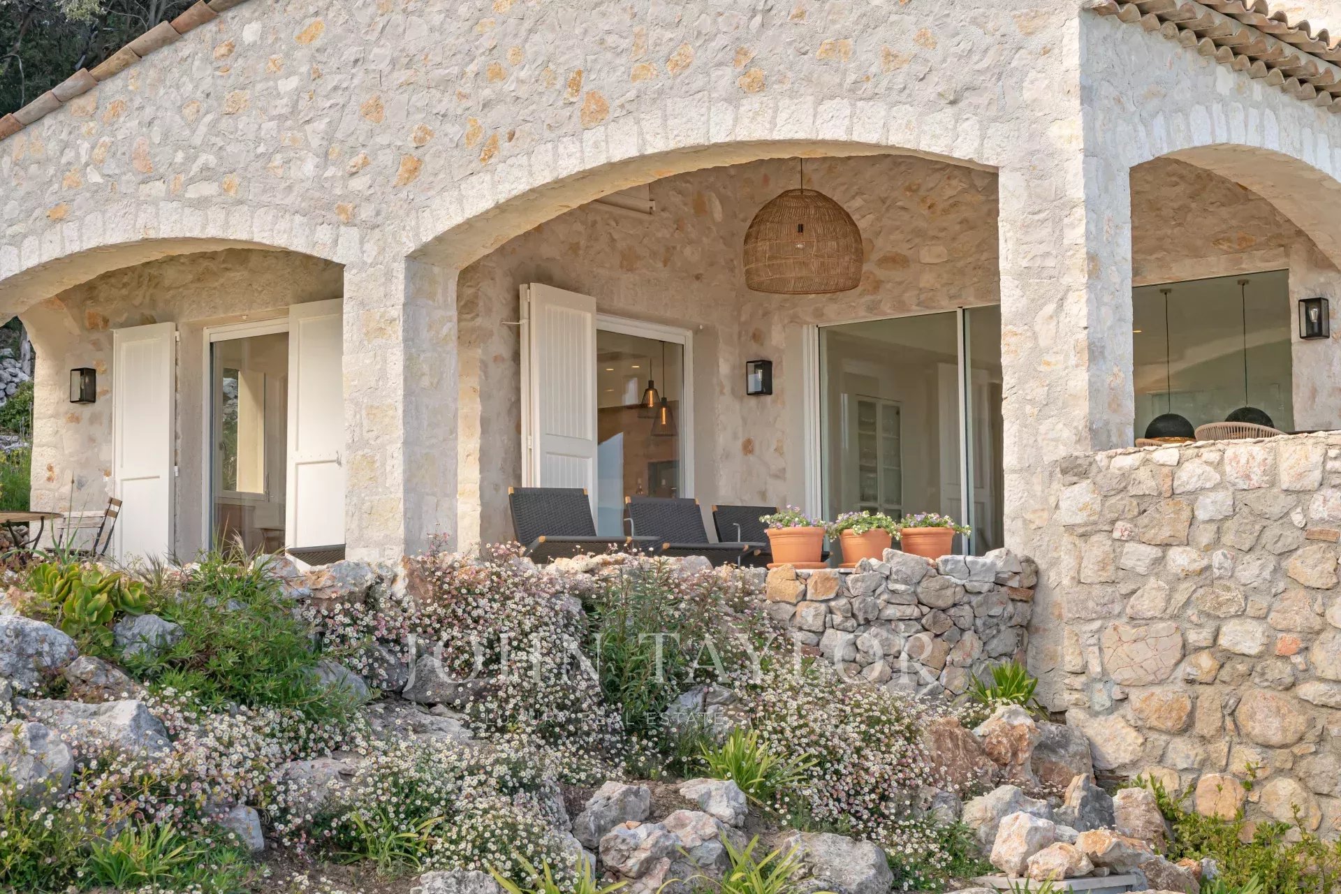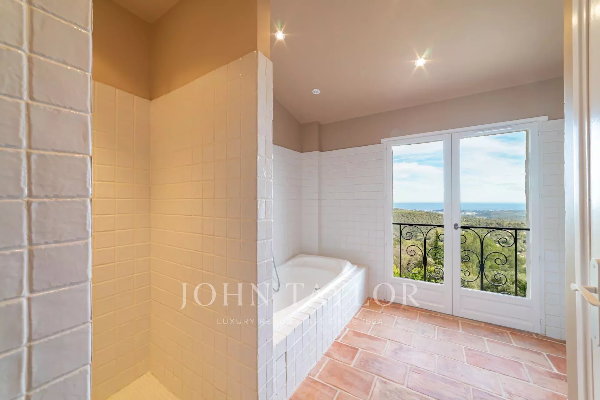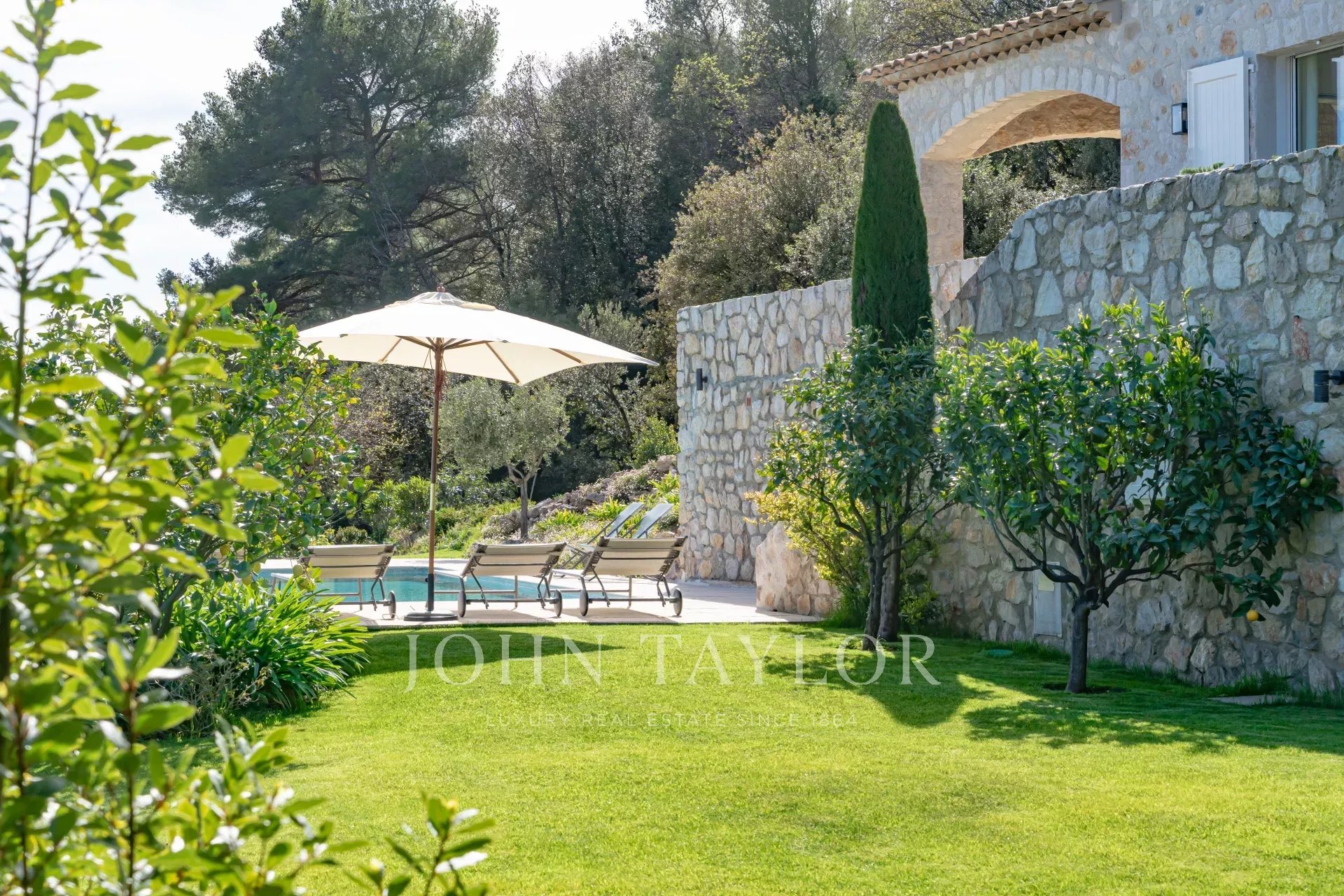V Tourrettes sur Loup, s nádherným výhledem na moře a okolní krajinu, krásná nově postavená nemovitost o obytné ploše 320 m² na pozemku o rozloze 4 000 m² s nekonečným bazénem.