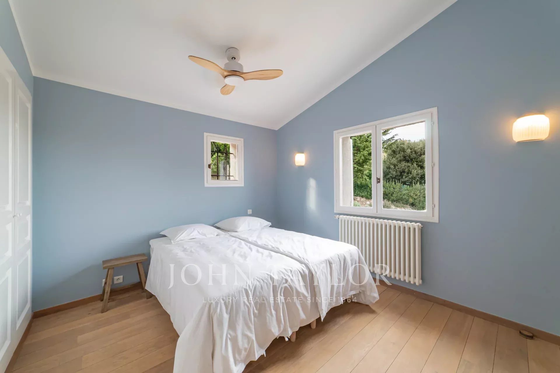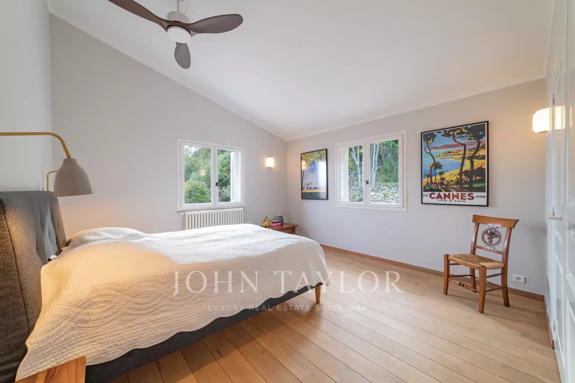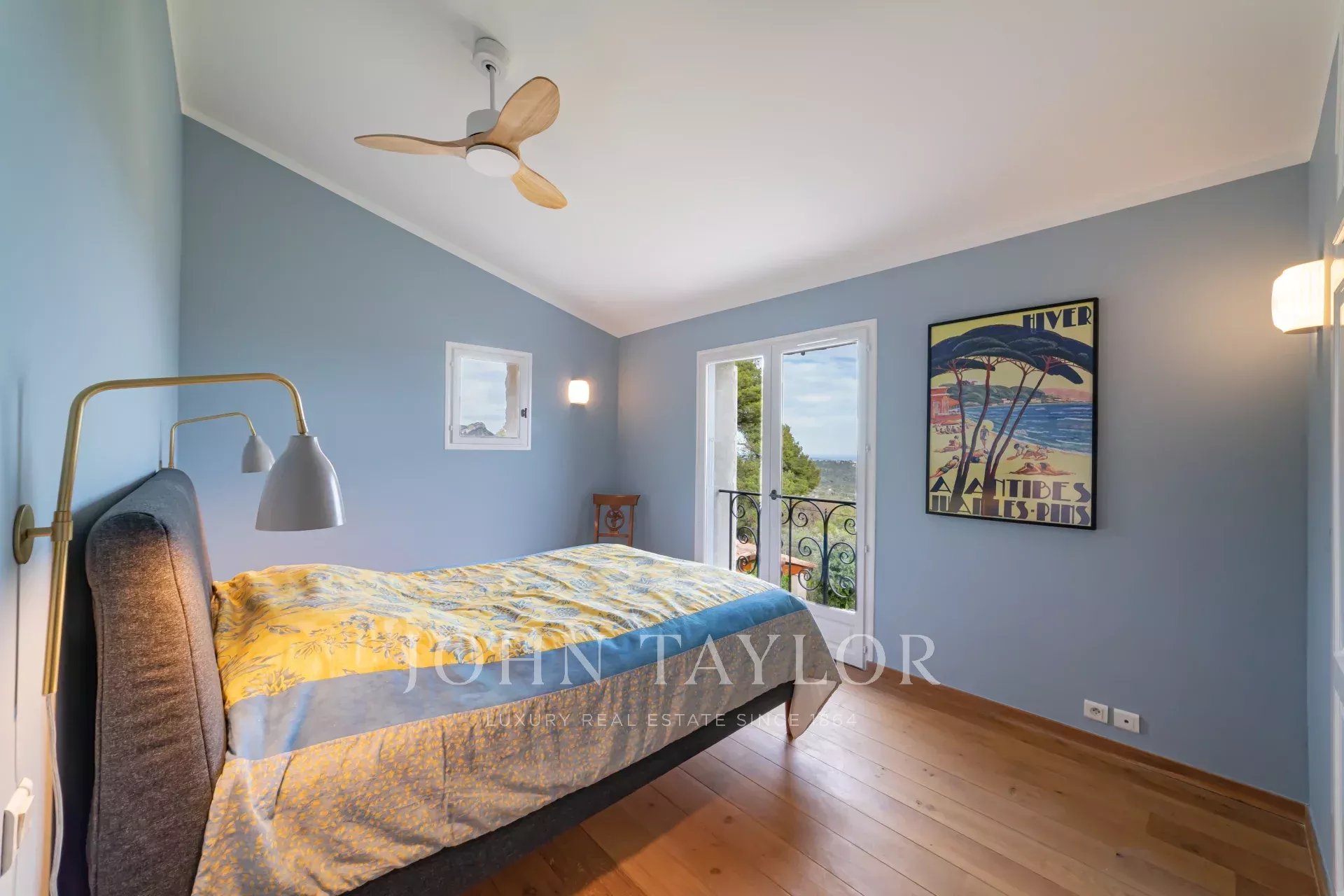 V patře čtyři ložnice s klimatizací, stropním ventilátorem a vlastní koupelnou. Dvě z nich mají nerušený výhled na moře.