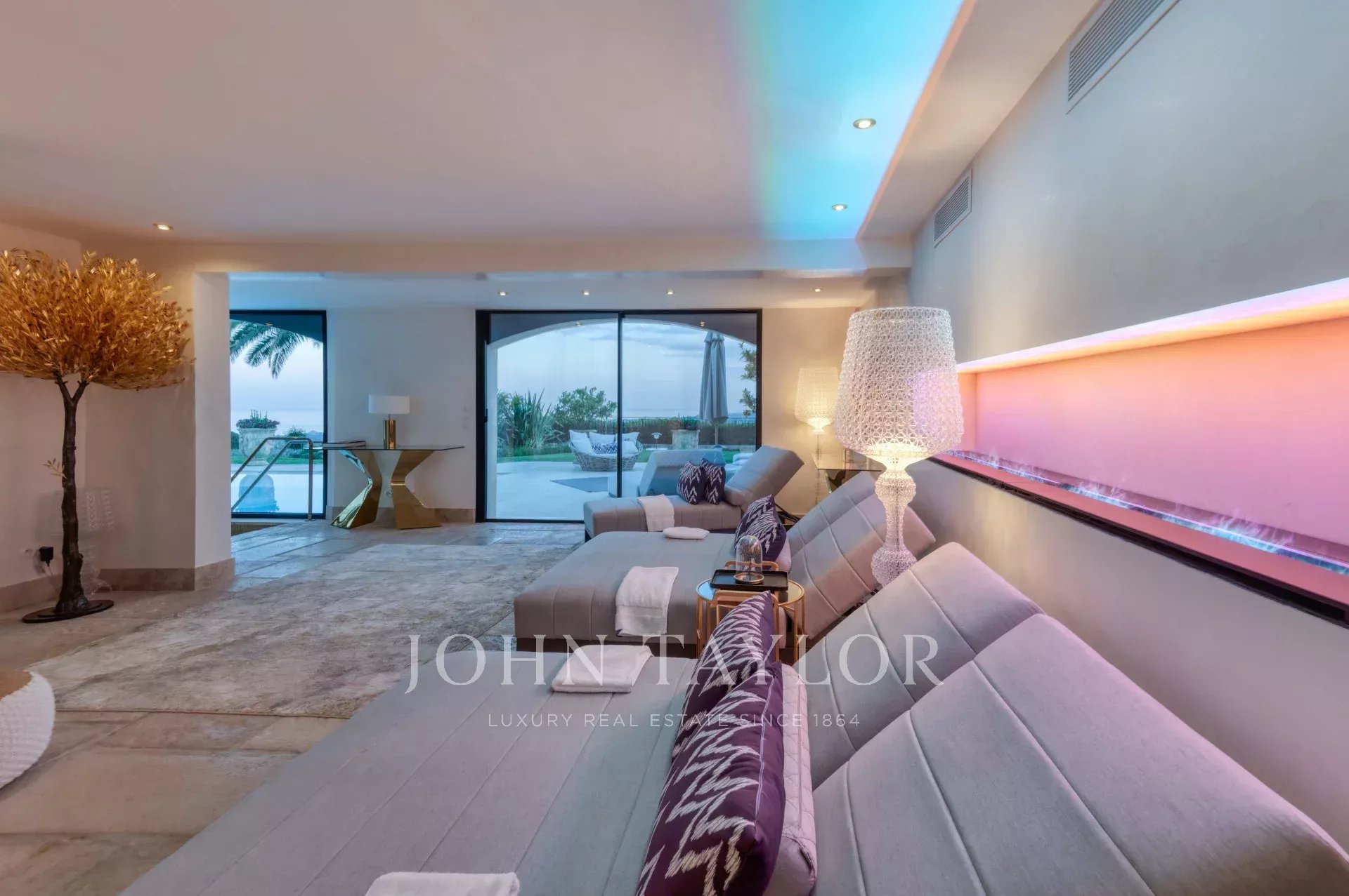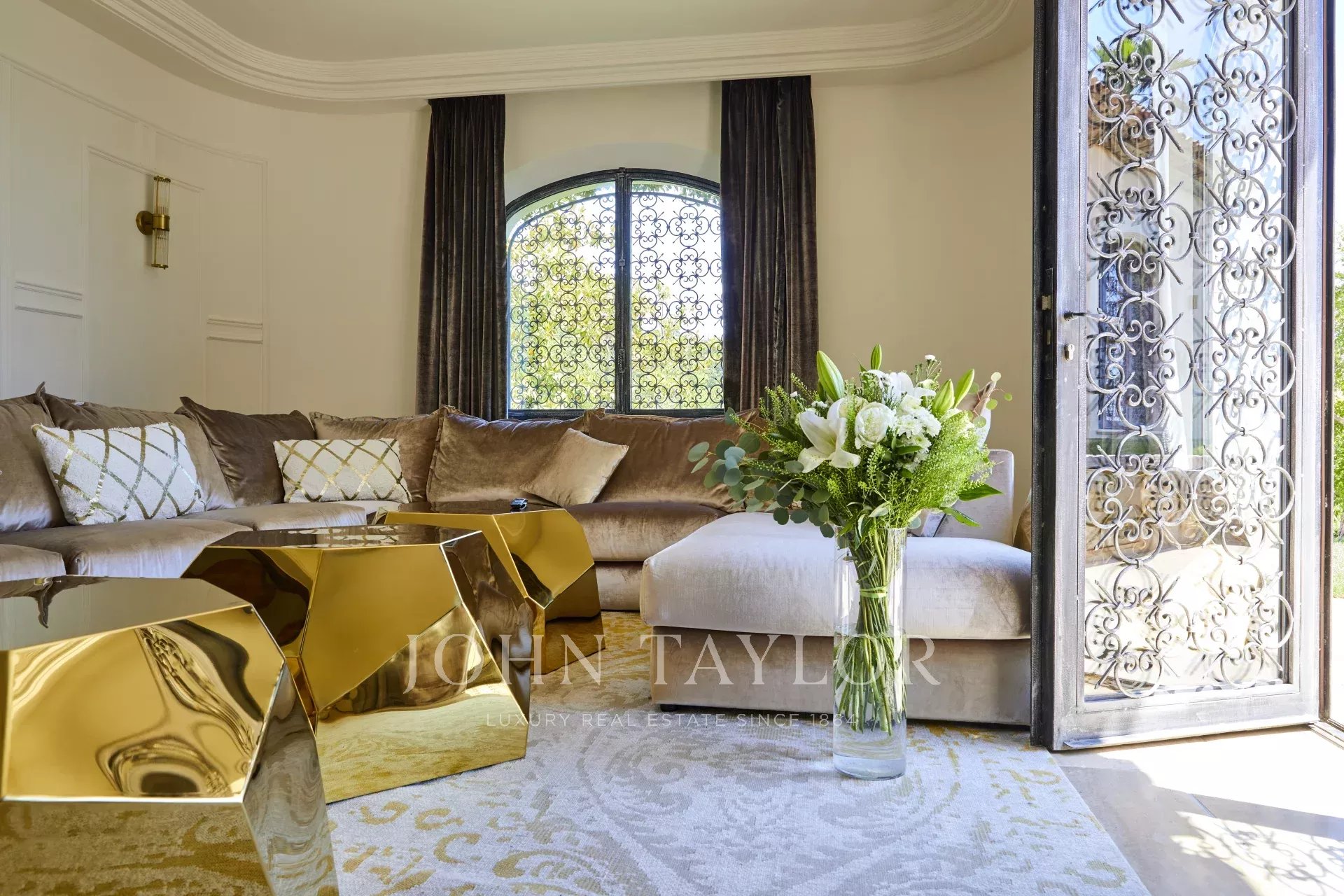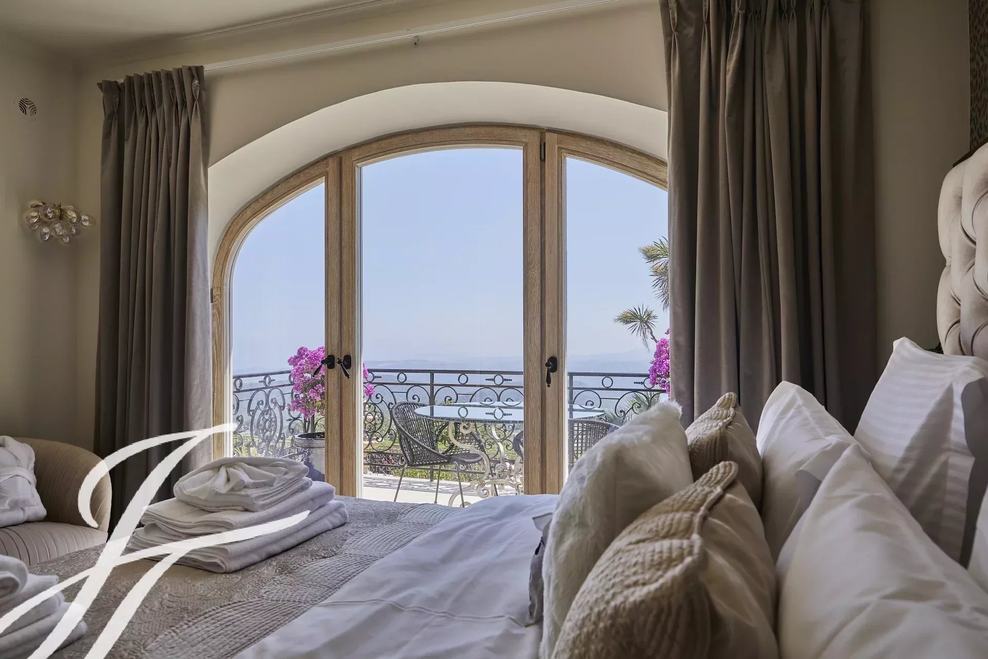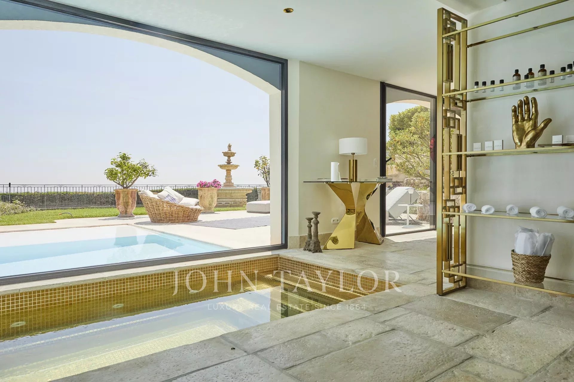 Luxusní pětihvězdičková vila v kopcích nad půvabnou vesnicí Tourrettes-sur-Loup s panoramatickým výhledem na moře a okolní hory.