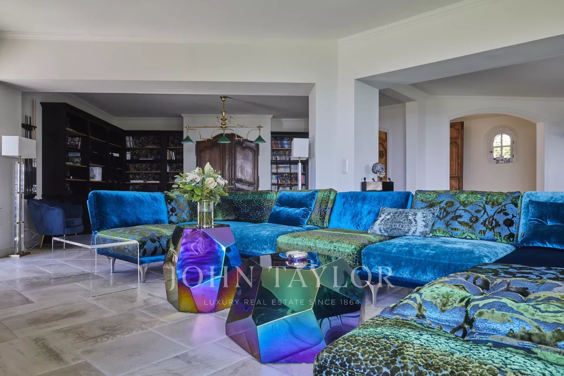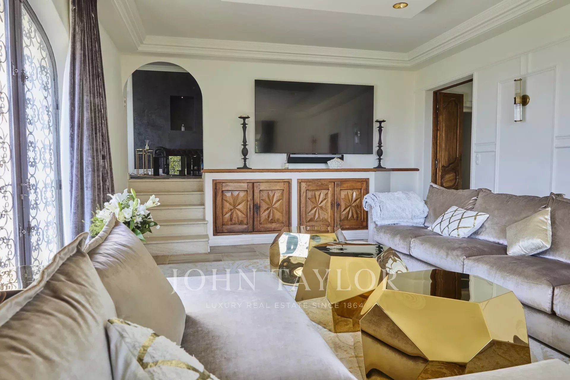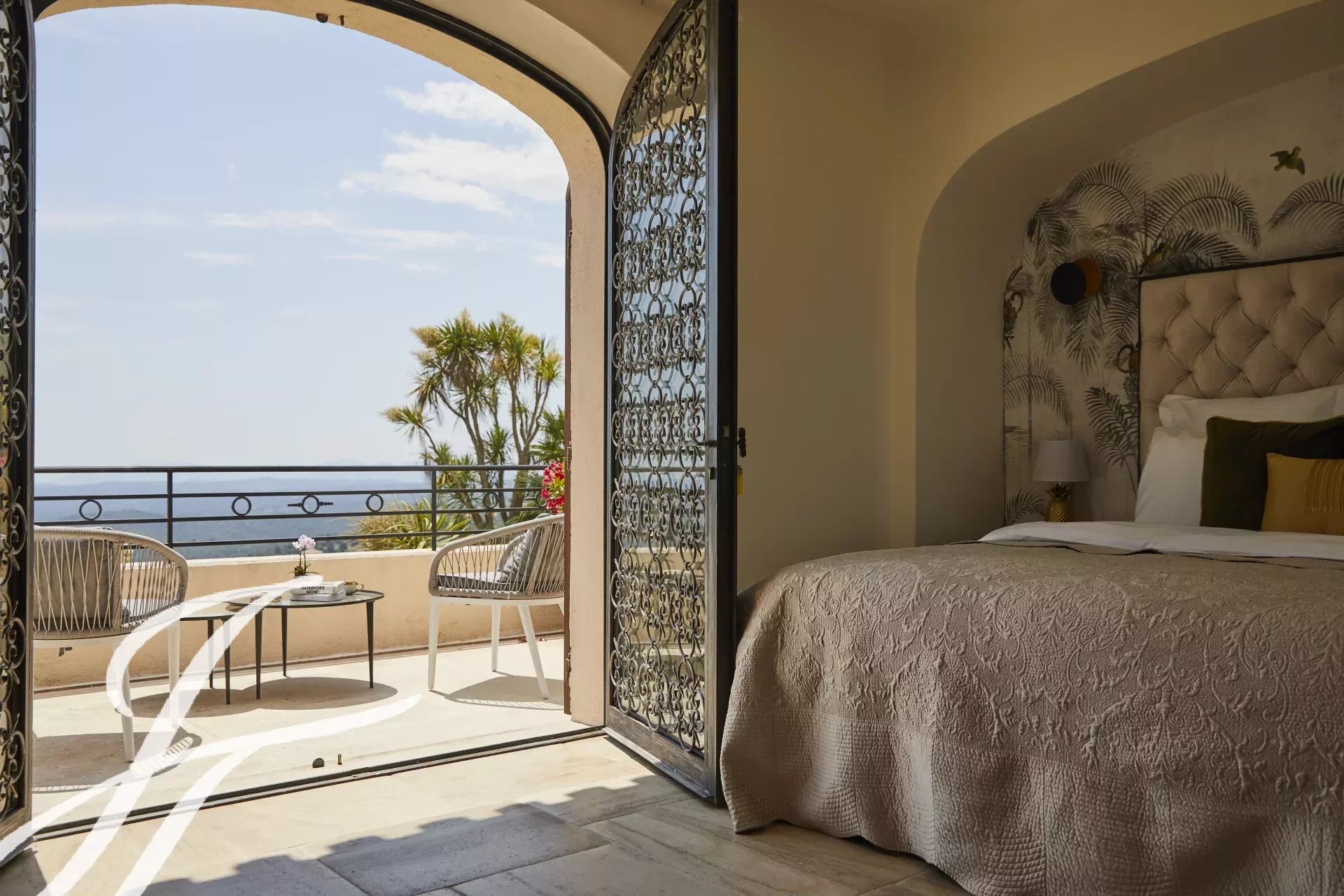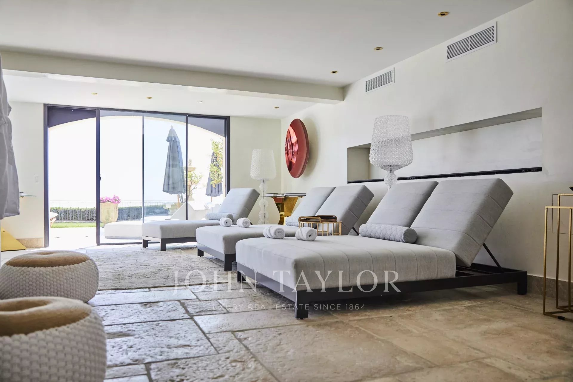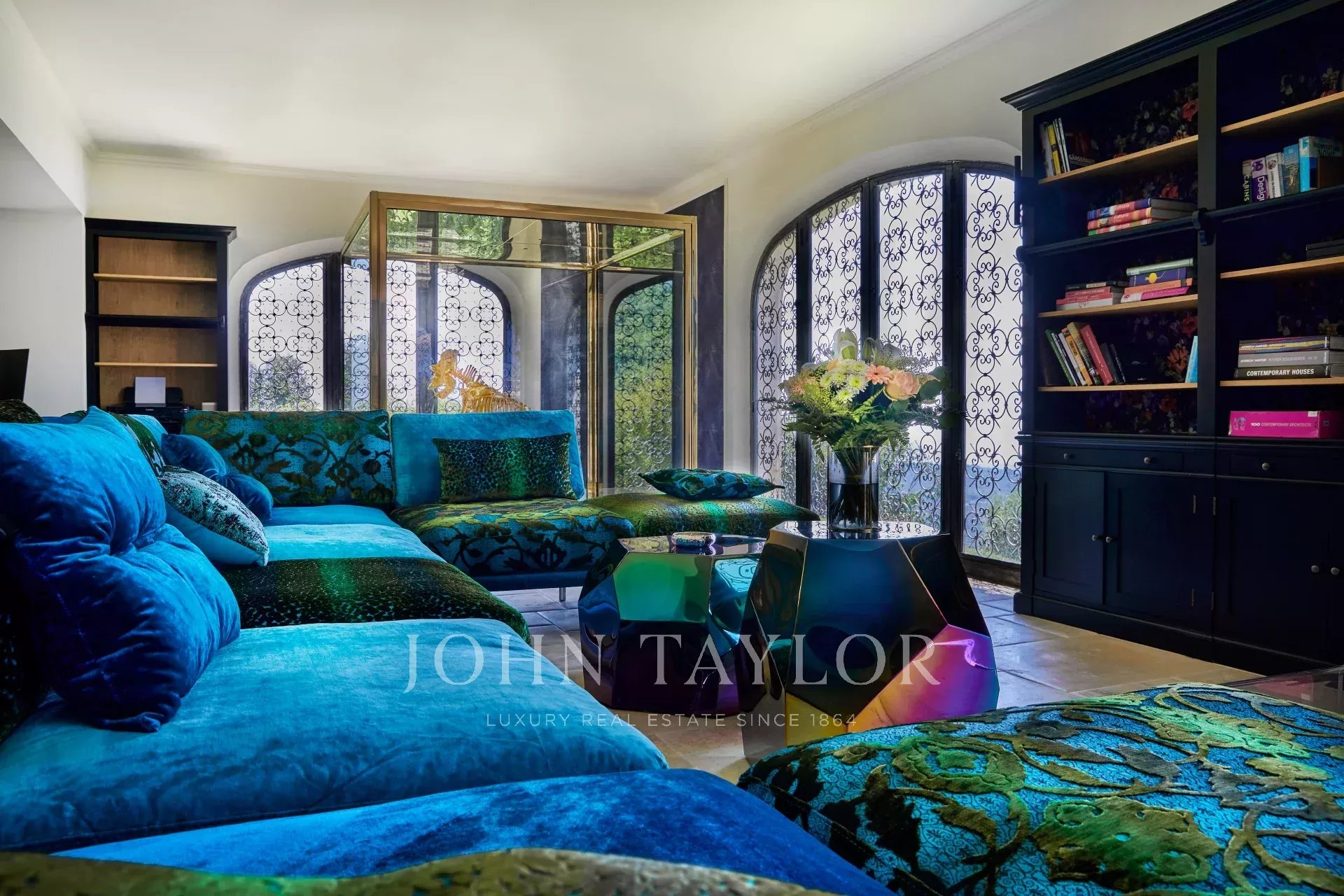Luxusní pětihvězdičková vila v kopcích nad půvabnou vesnicí Tourrettes-sur-Loup s panoramatickým výhledem na moře a okolní hory.