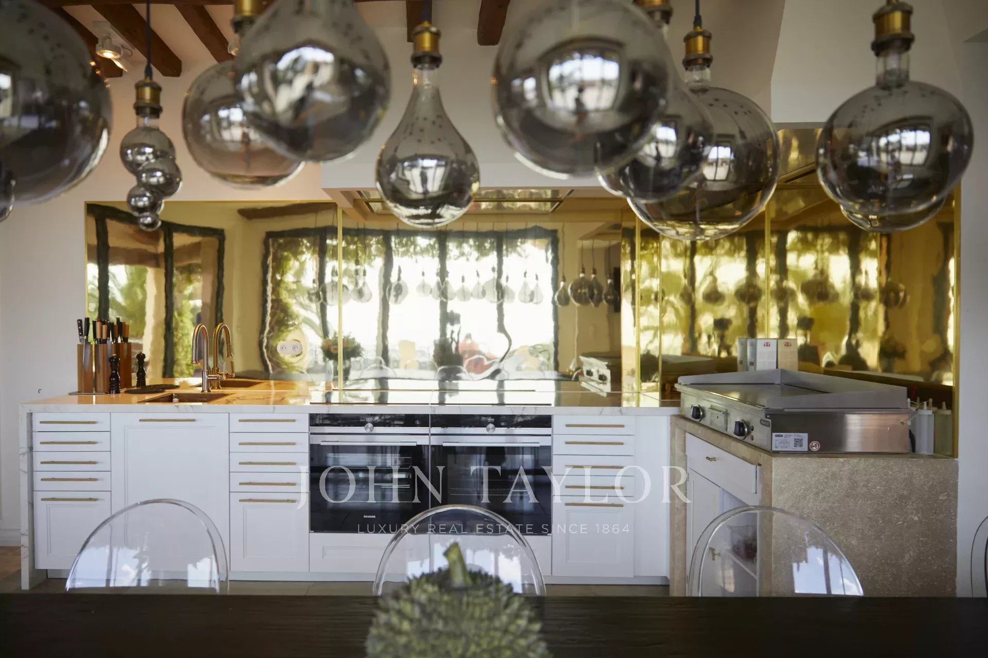 Plně vybavená kuchyně s jídelním koutem a vstupem na terasu s 5 grily (gril, pizza, plynový, japonský gril atd.).