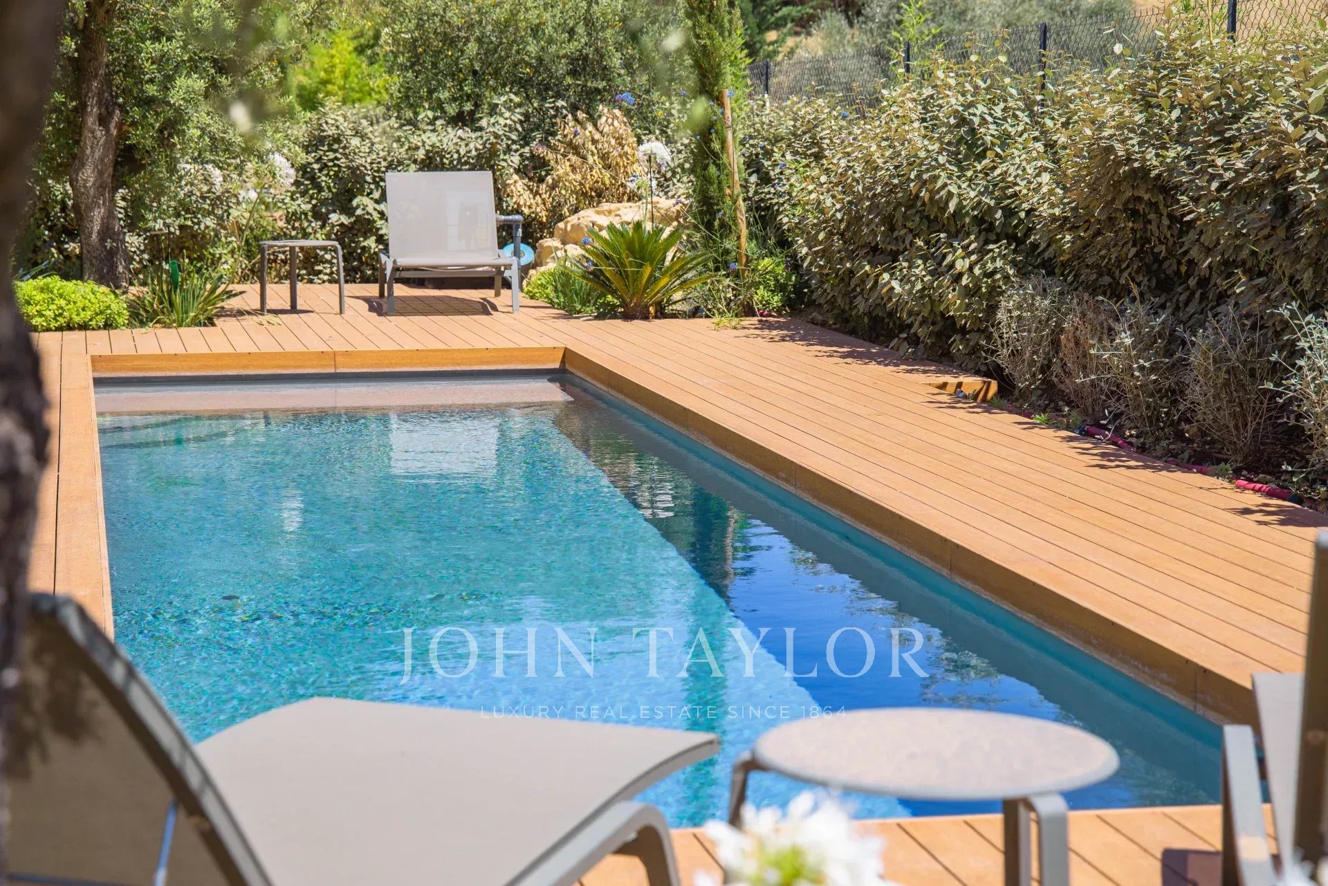 Venku vás upravená zahrada a několik teras s pergolami vybízí k užívání si úchvatných výhledů a bazénu, který lze na požádání vyhřívat a který je ideální pro relaxaci v každém ročním období.