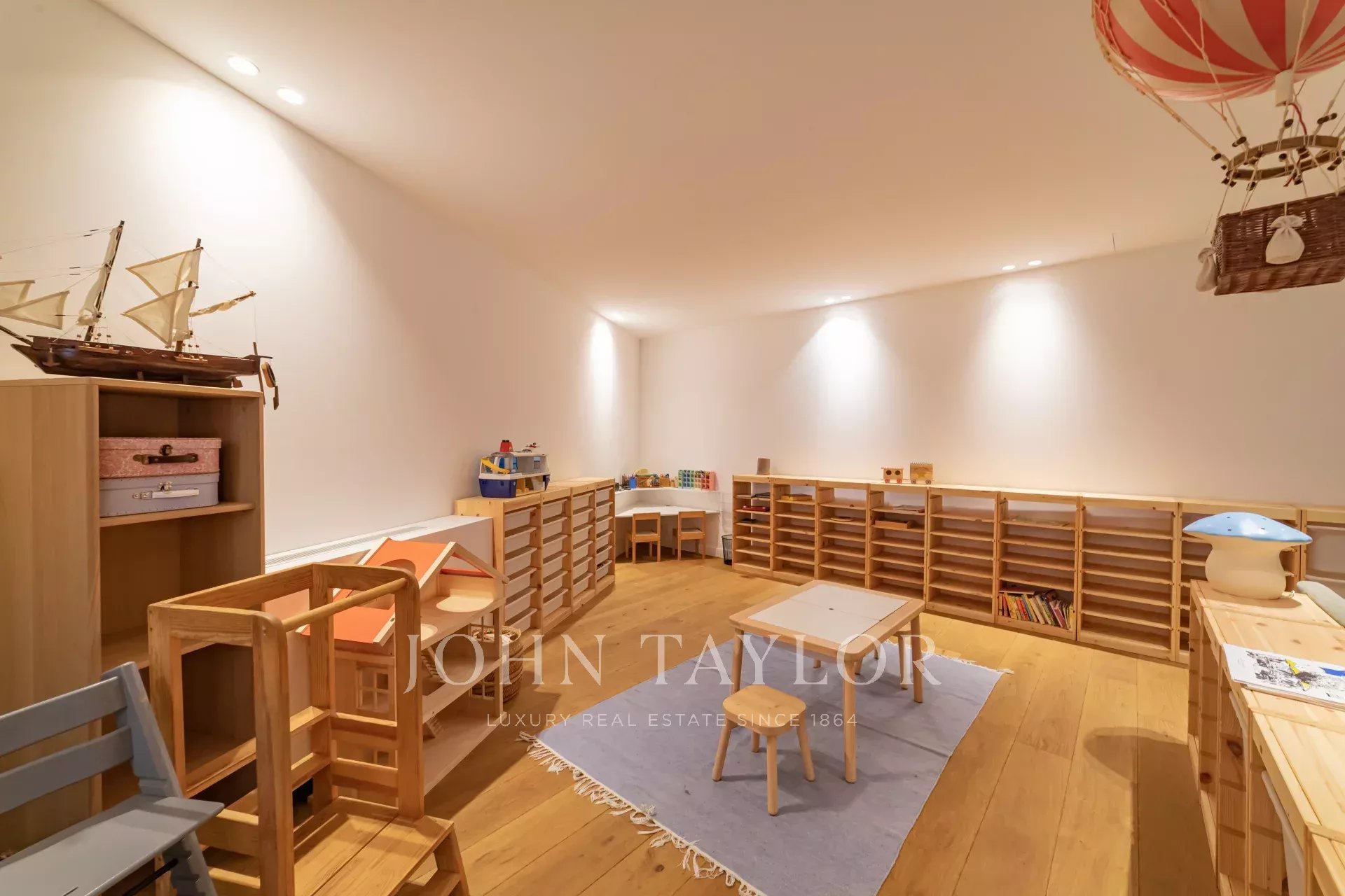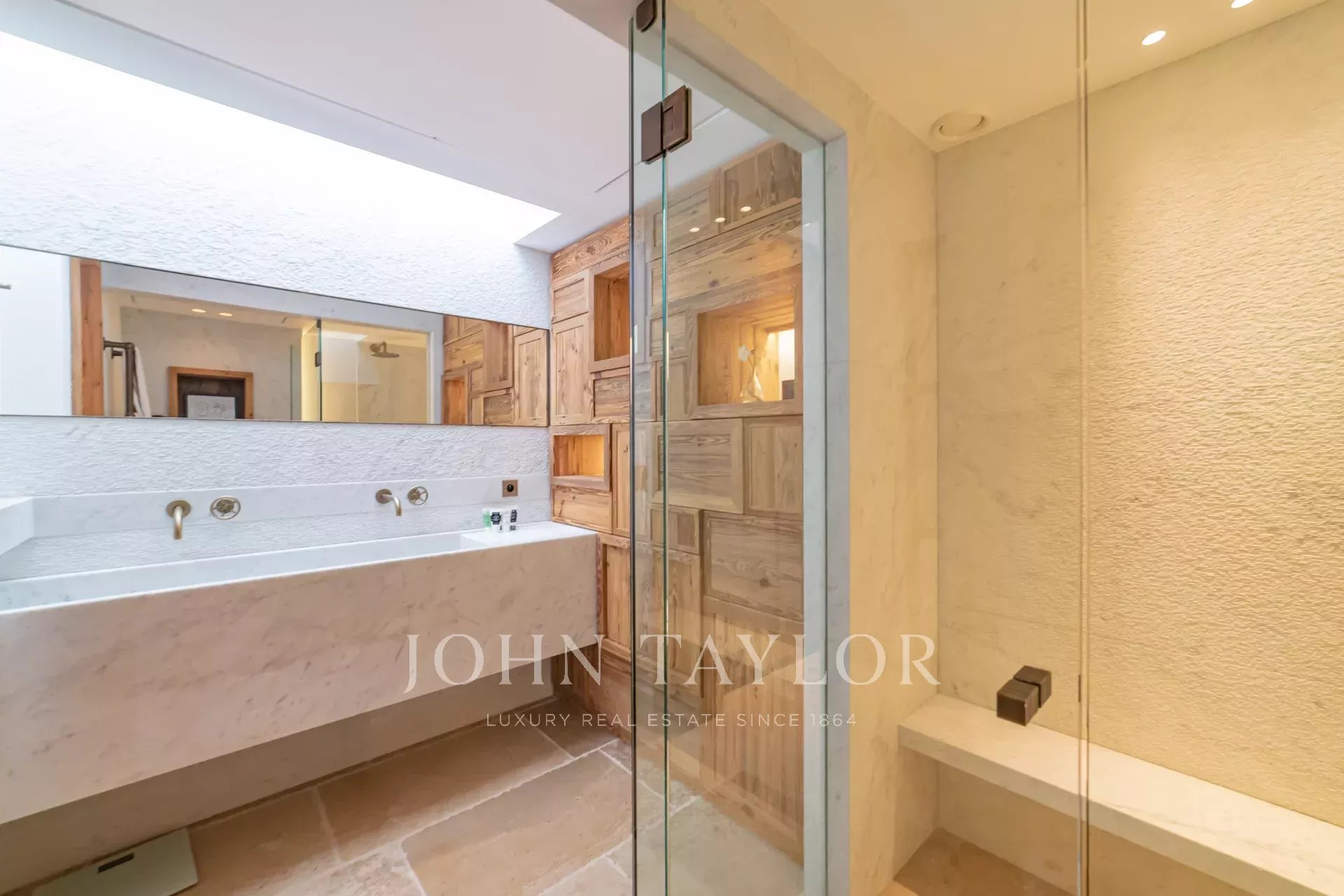 Přízemí: vstupní hala, prostorná hlavní ložnice s manželskou postelí, pracovna, vlastní koupelna, velká šatna a přímý vstup na soukromou terasu.