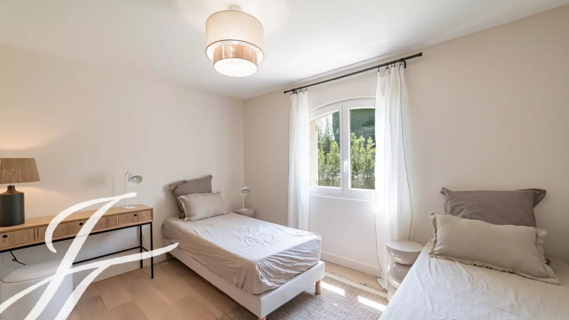 V klidném prostředí, v srdci vyhledávané rezidenční čtvrti, vám tato honosná jednopatrová vila, kompletně zrekonstruovaná s maximální péčí, nabízí nesrovnatelnou kvalitu života. Nachází se jen pár minut chůze od půvabné vesničky Valbonne a harmonicky spojuje autenticitu a modernost.