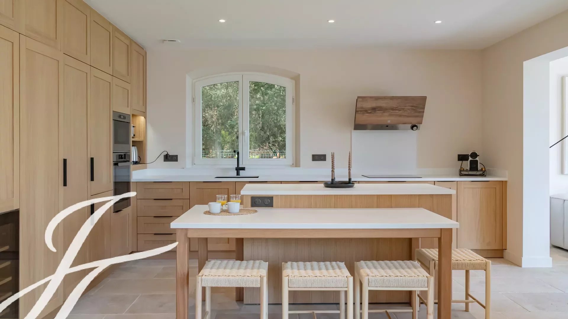 Duše tohoto domu spočívá ve výběru ušlechtilých, nadčasových materiálů: burgundský kámen, masivní parkety a vápnem omítnuté stěny. Každý detail byl promyšlen tak, aby vzniklo harmonické obytné prostředí, kde se pohodlí a estetika snoubí v eleganci.