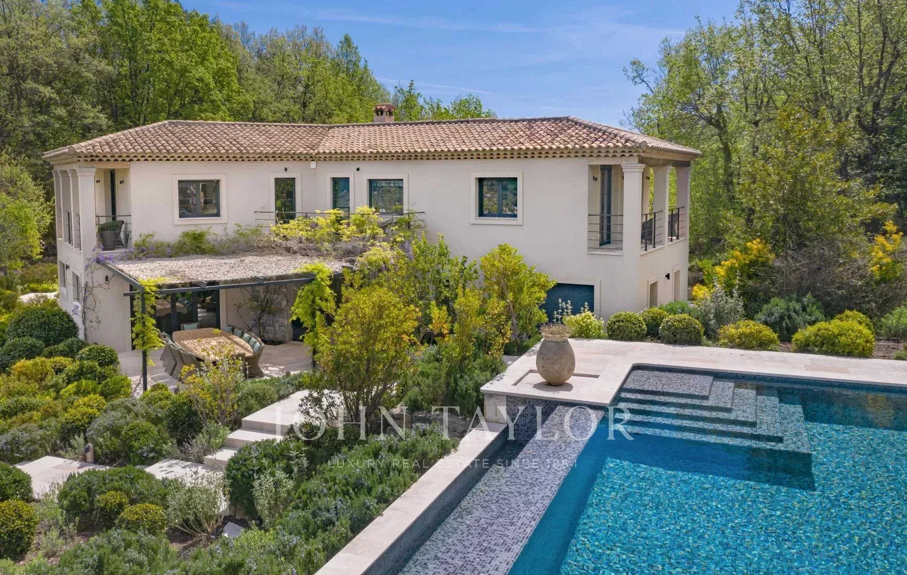 Nádherná vila k pronájmu - panoramatický výhled, 5 ložnic, nekonečný bazén, nedaleko Valbonne