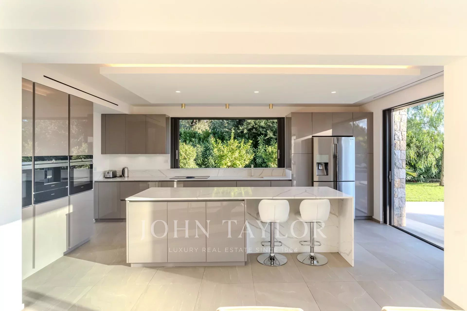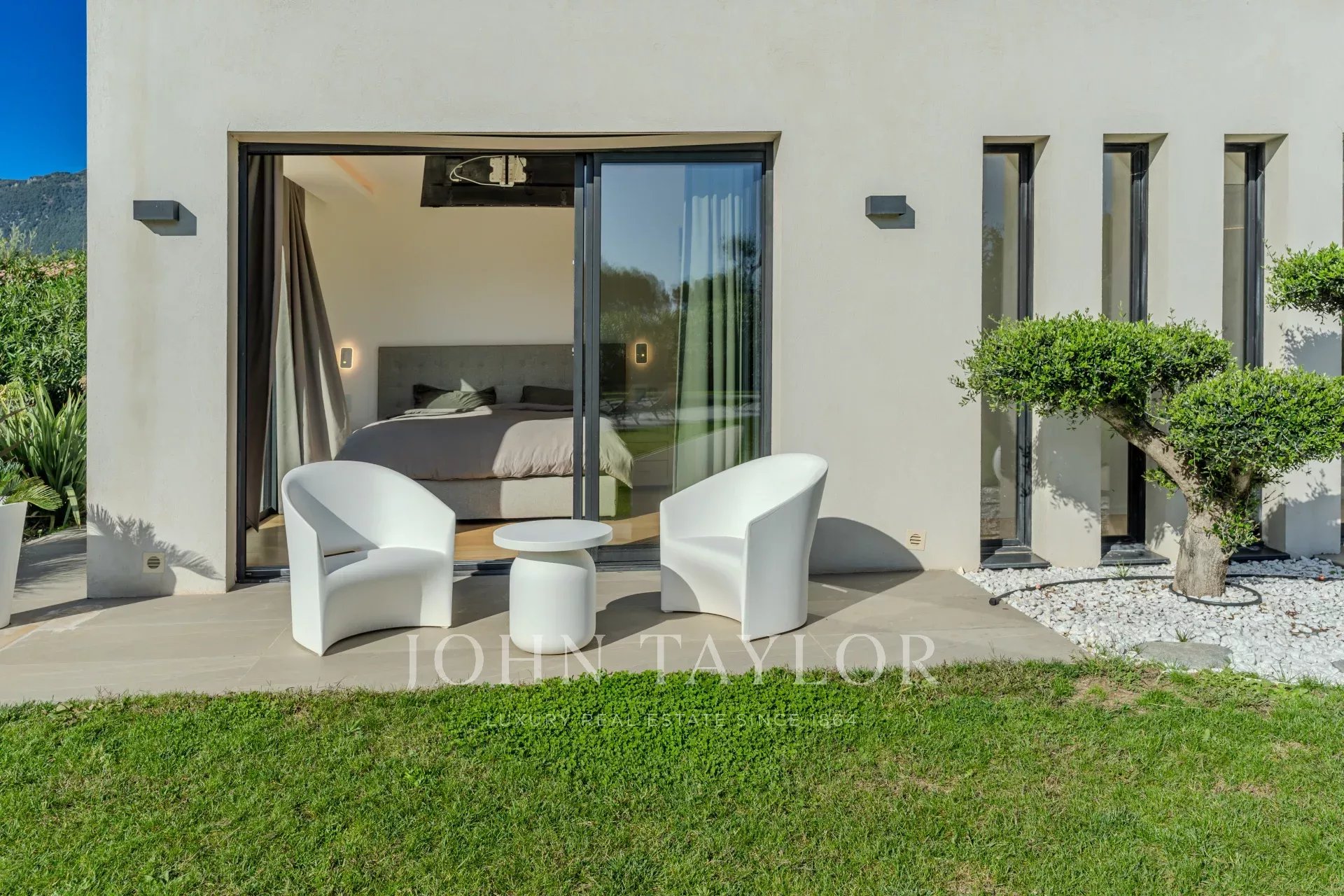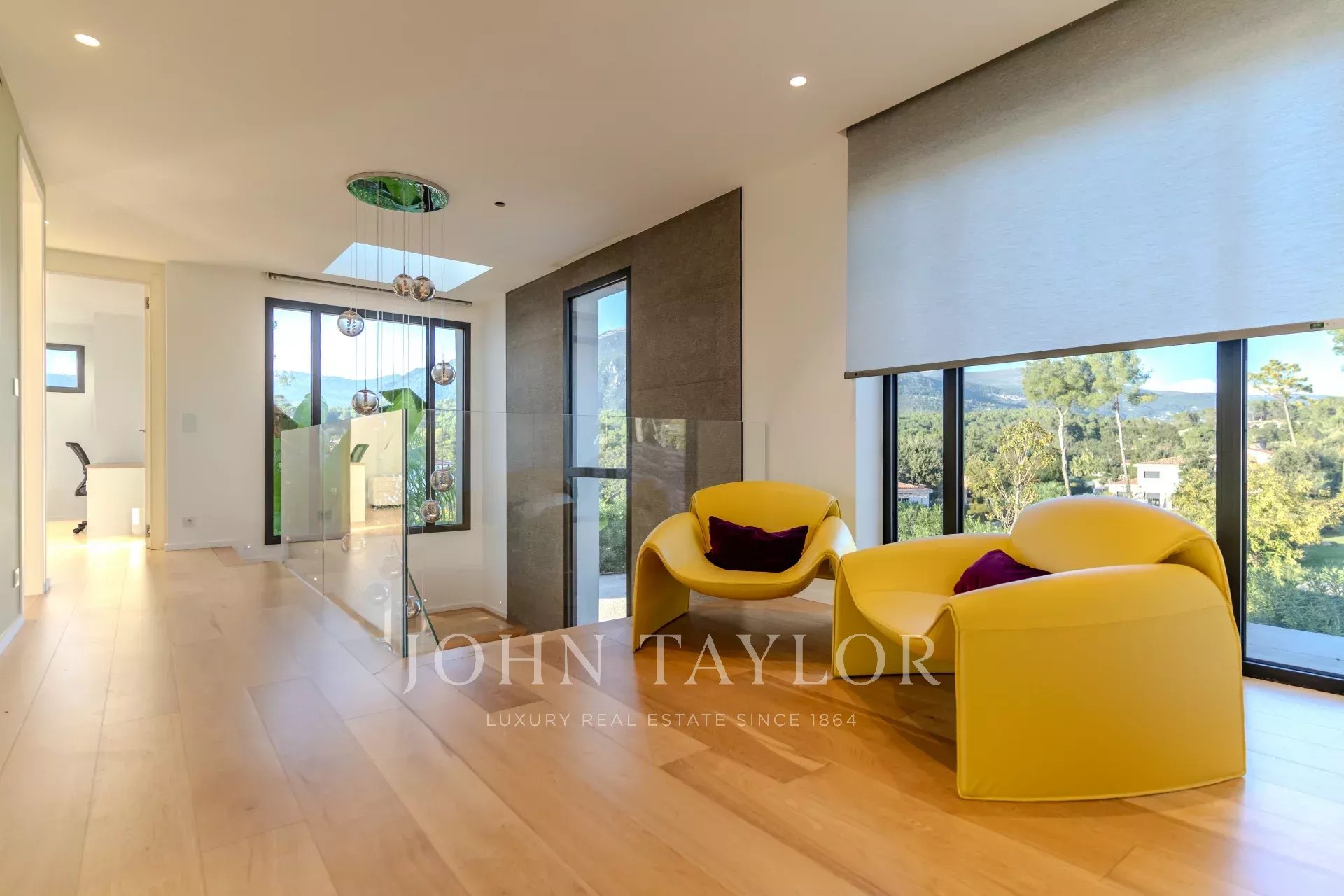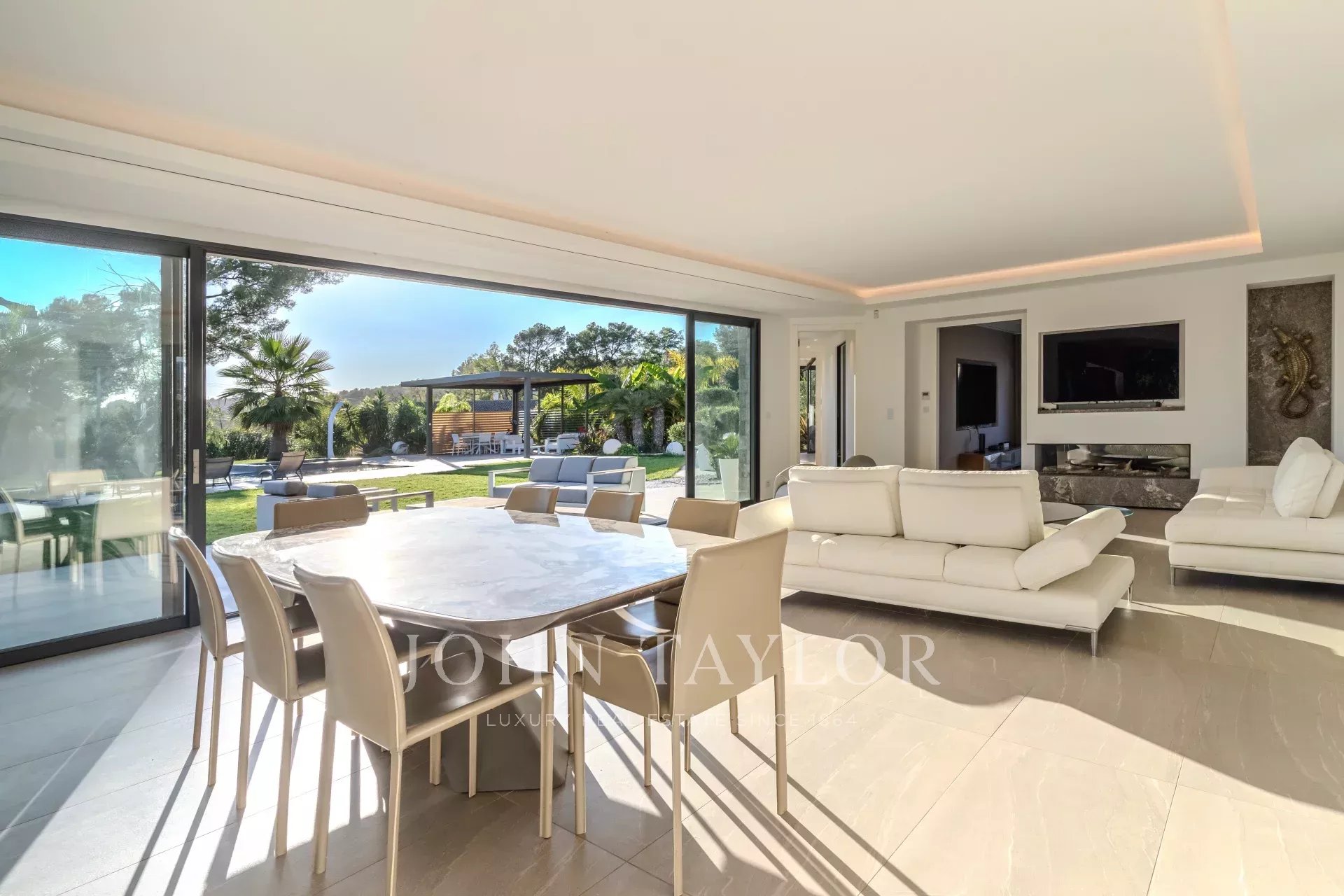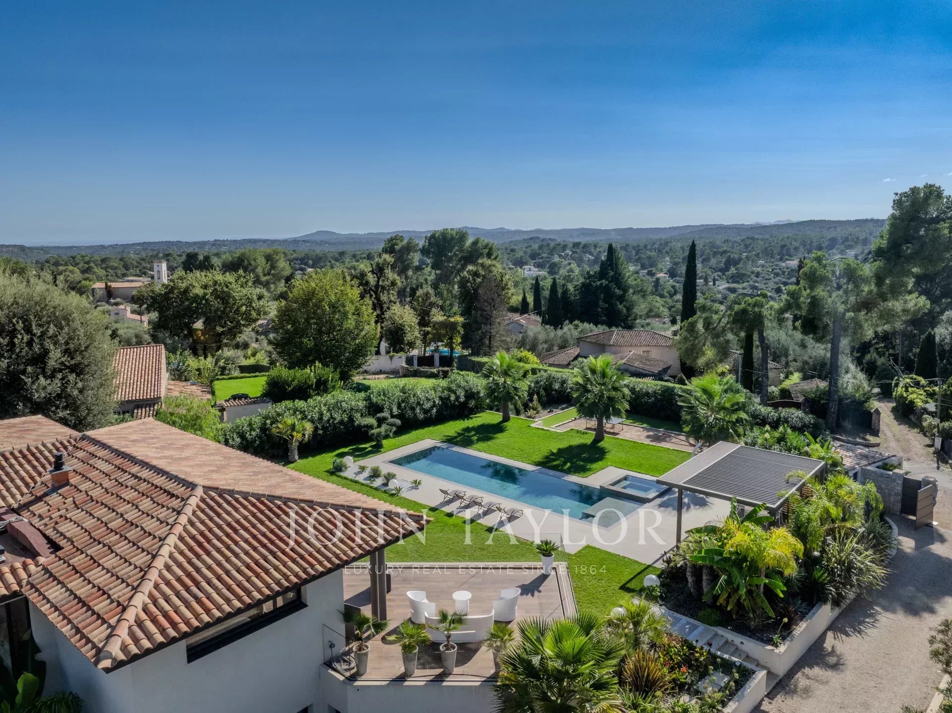 Objevte tuto vynikající rodinnou vilu o rozloze 276 m² v Roquefort-les-Pins, která se nachází v klidném, listnatém prostředí s krásným, nerušeným výhledem.
