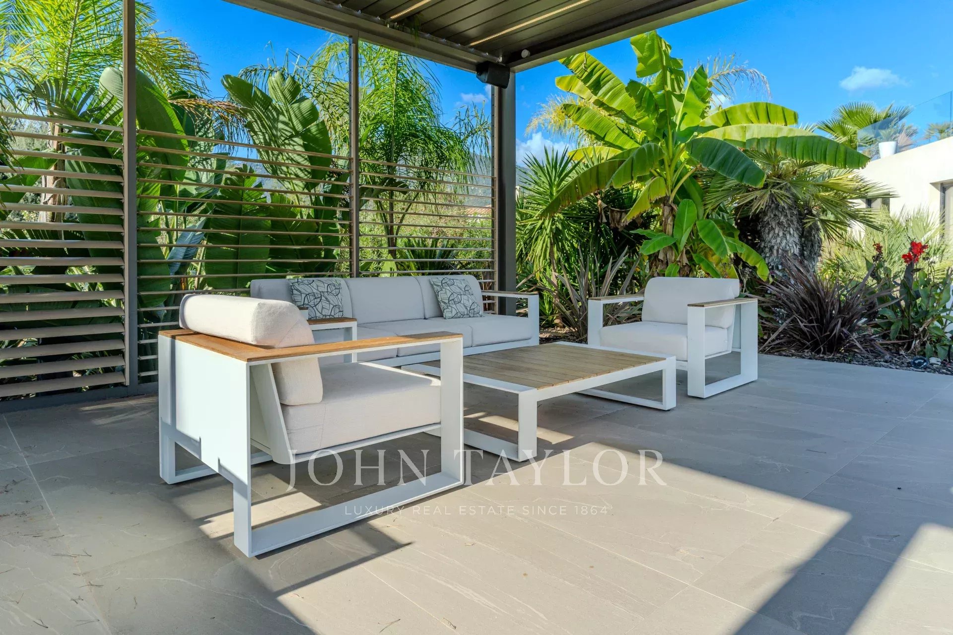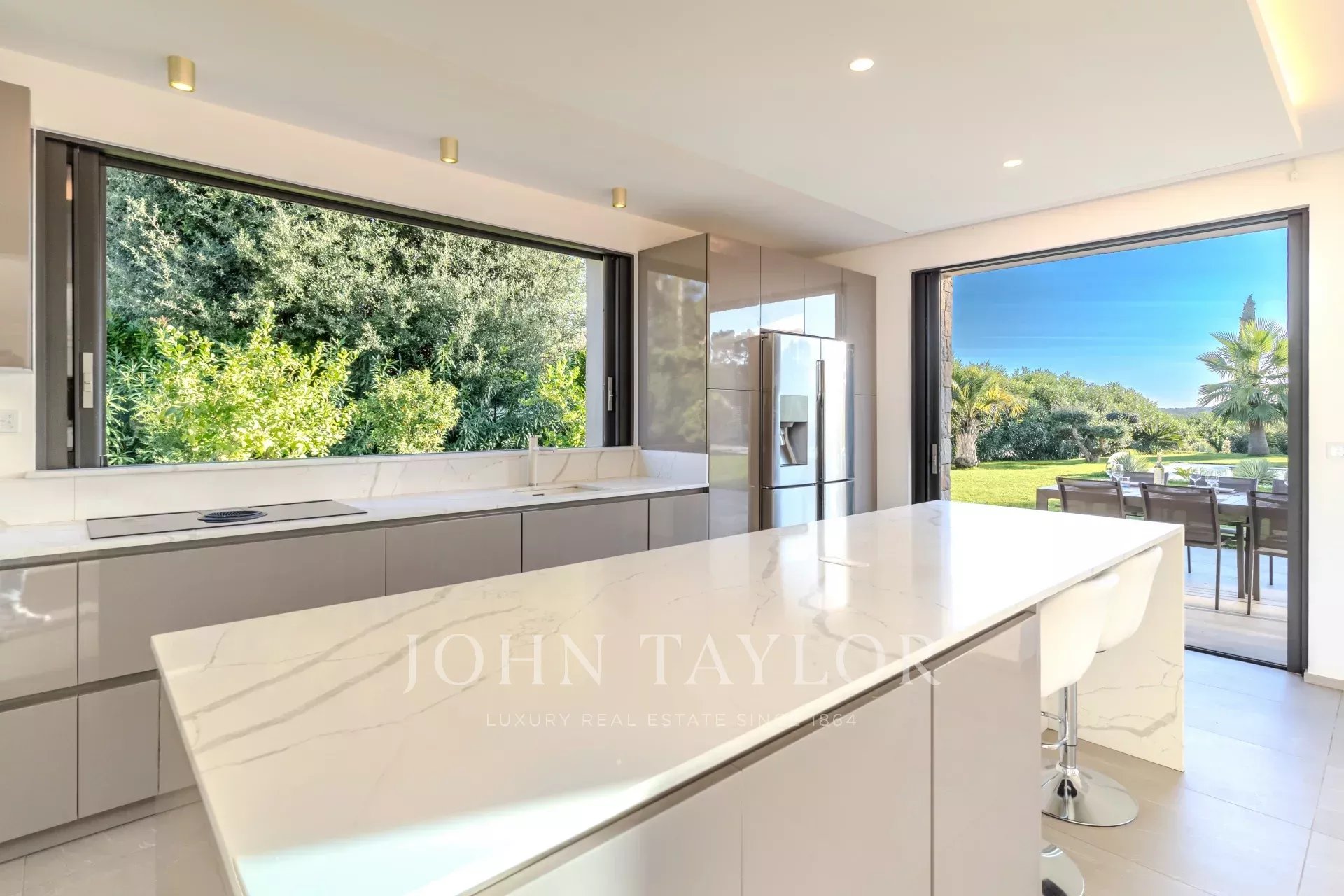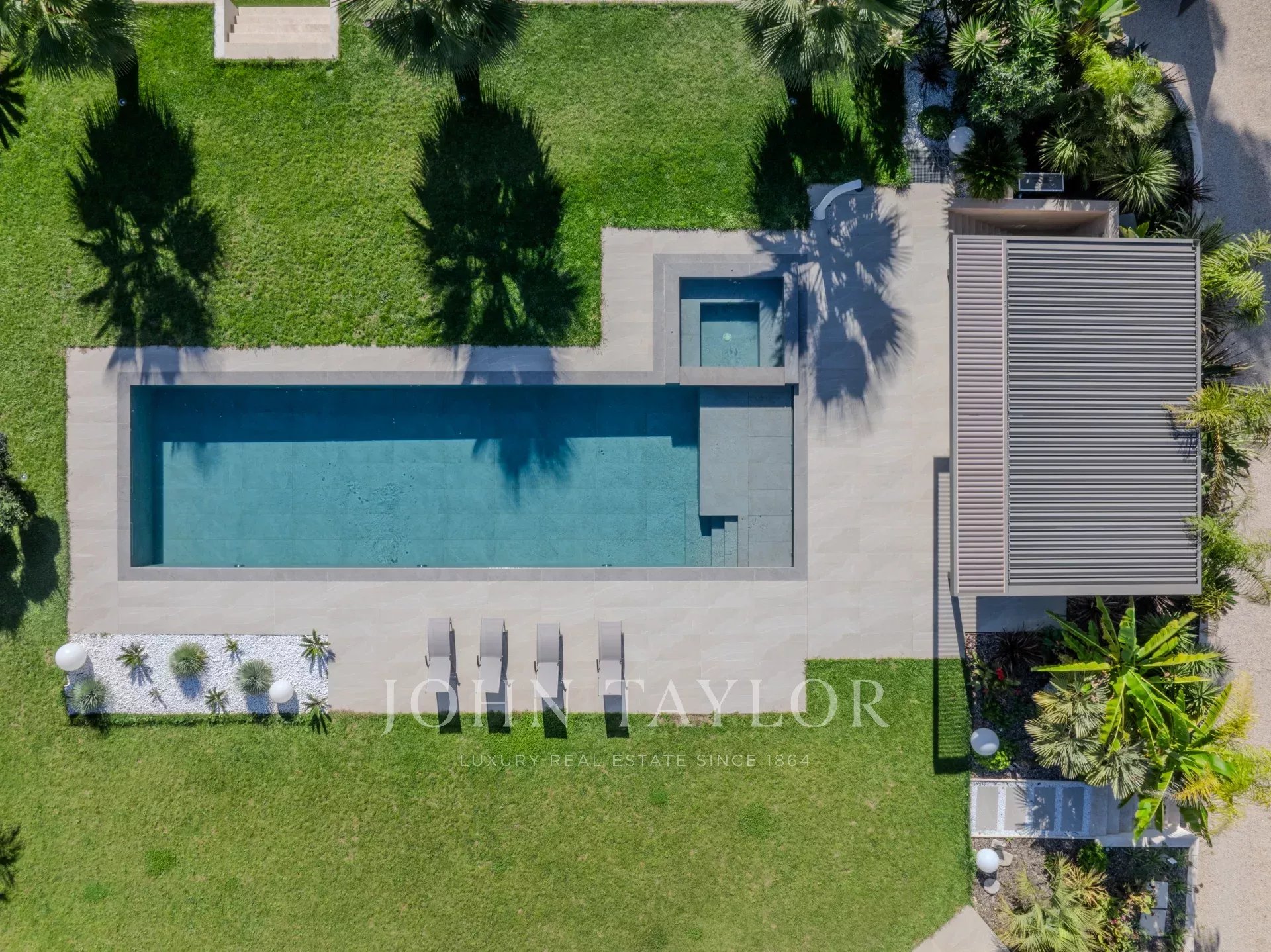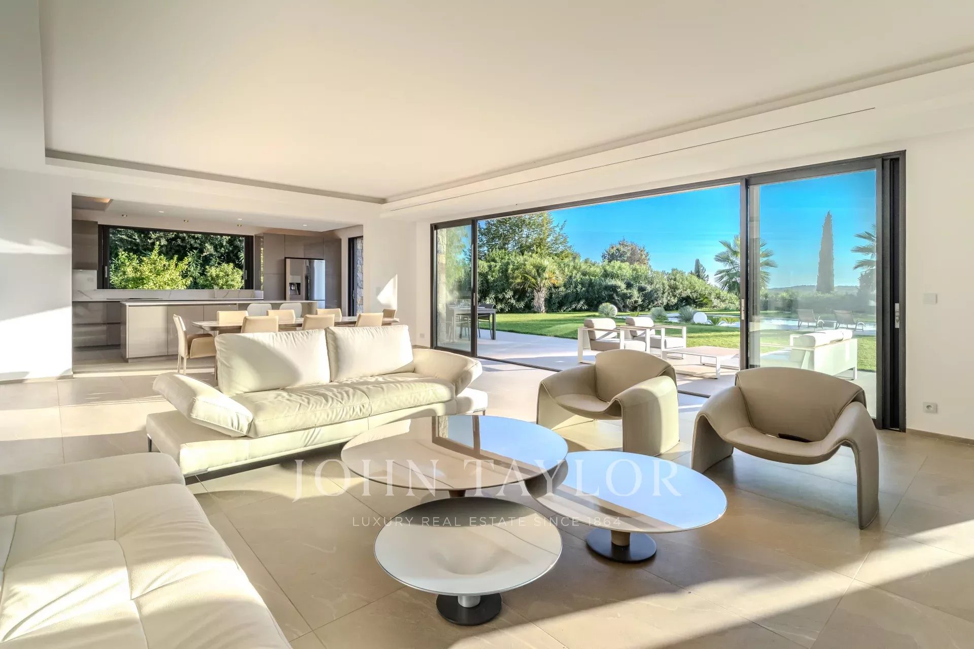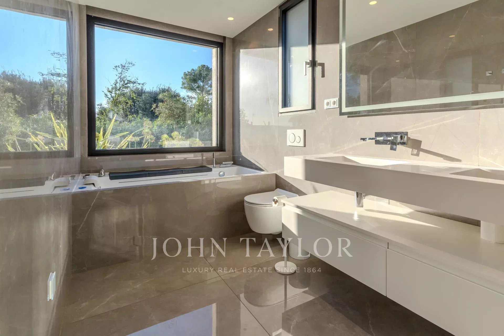Objevte tuto vynikající rodinnou vilu o rozloze 276 m² v Roquefort-les-Pins, která se nachází v klidném, listnatém prostředí s krásným, nerušeným výhledem.