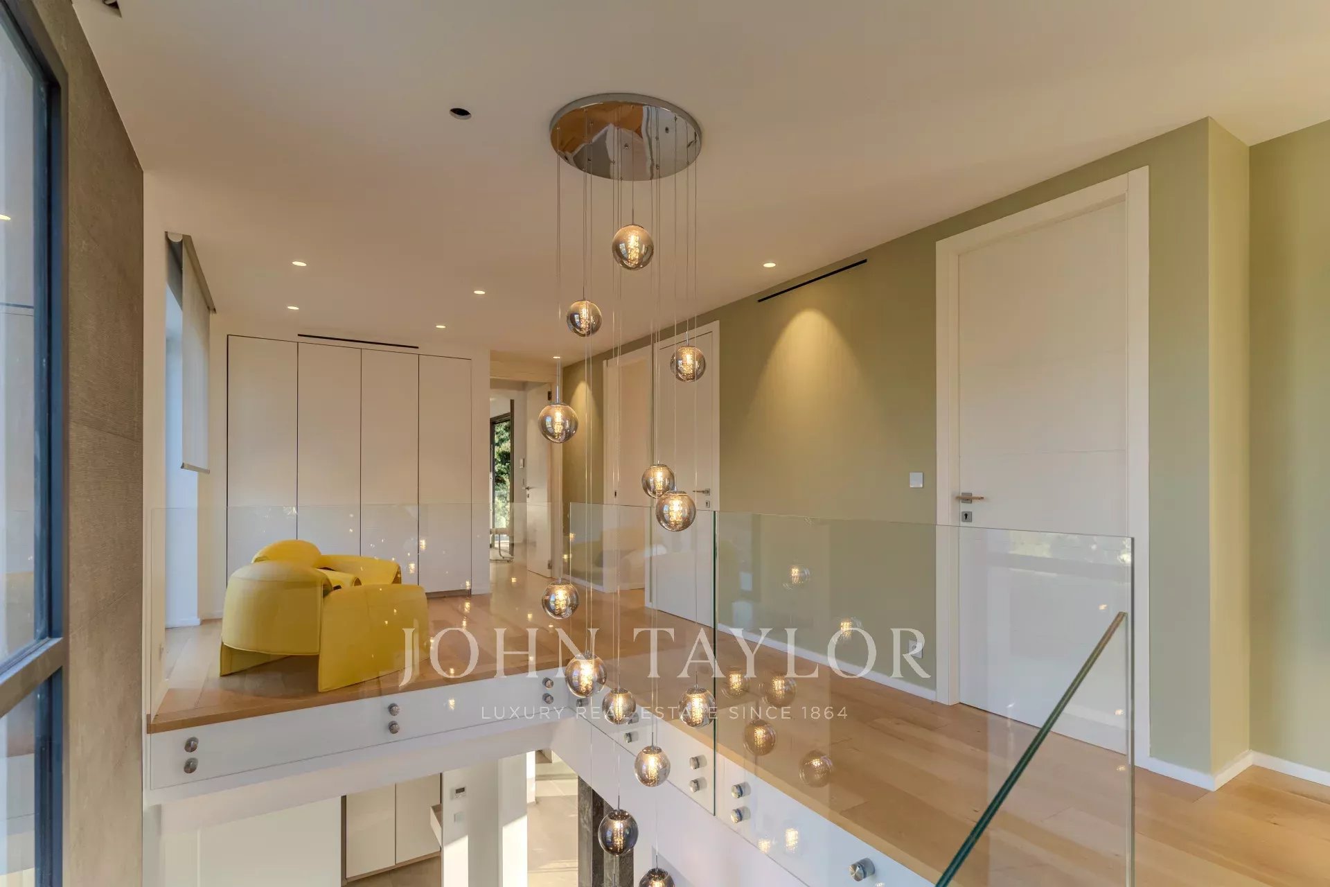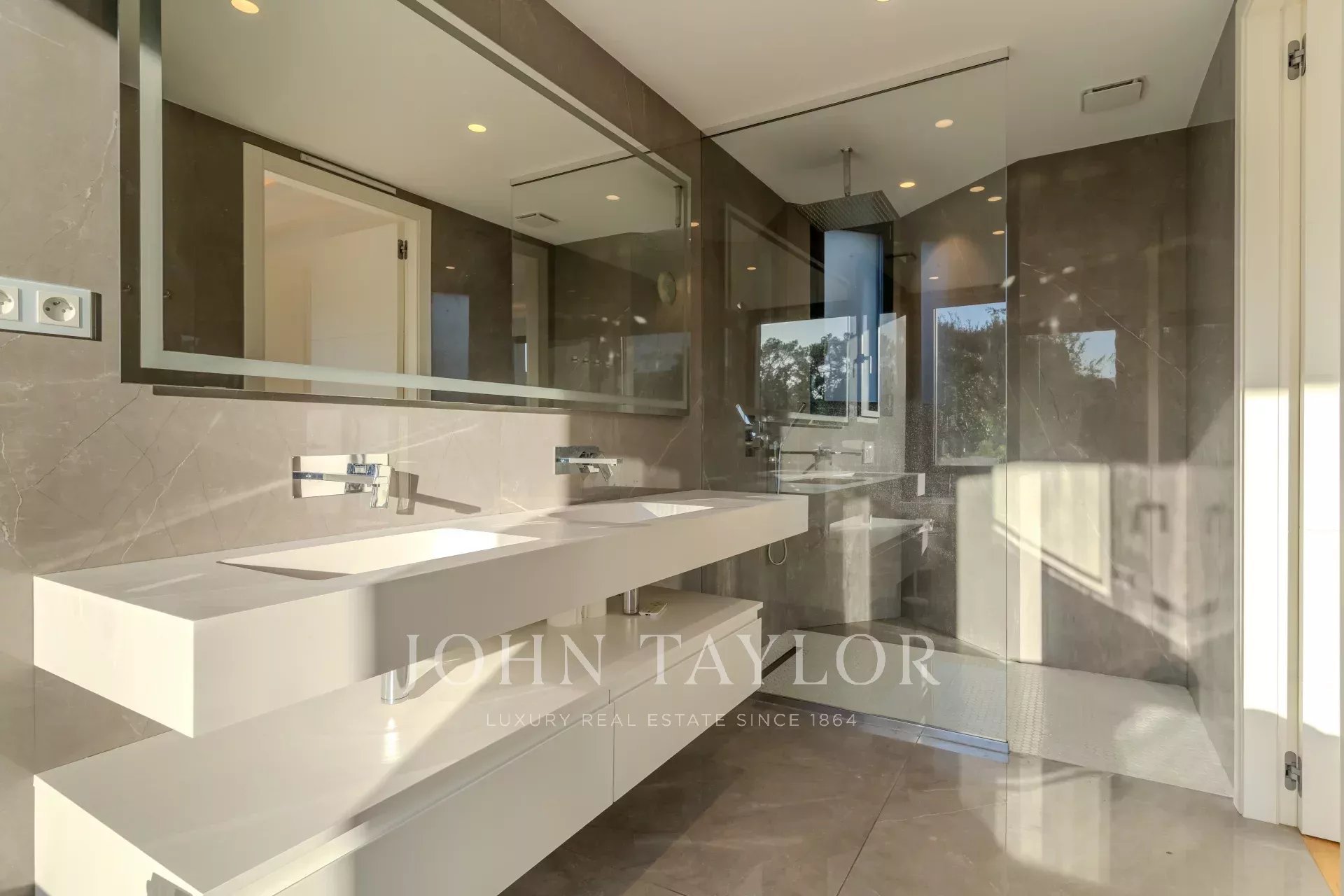 V patře se nacházejí 4 světlé a elegantní ložnice, každá s vlastní koupelnou se sprchou a vstupem na dvě velké terasy s nádherným výhledem.
