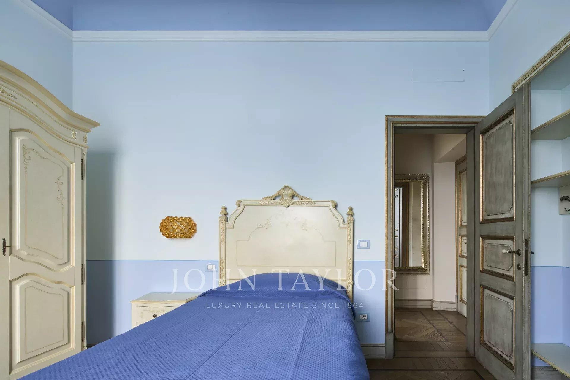 Interiéry se vyznačují jemnými dřevěnými podlahami a freskami na stěnách a stropech, které zdobí dobové detaily, jež umocňují historický ráz rezidence.