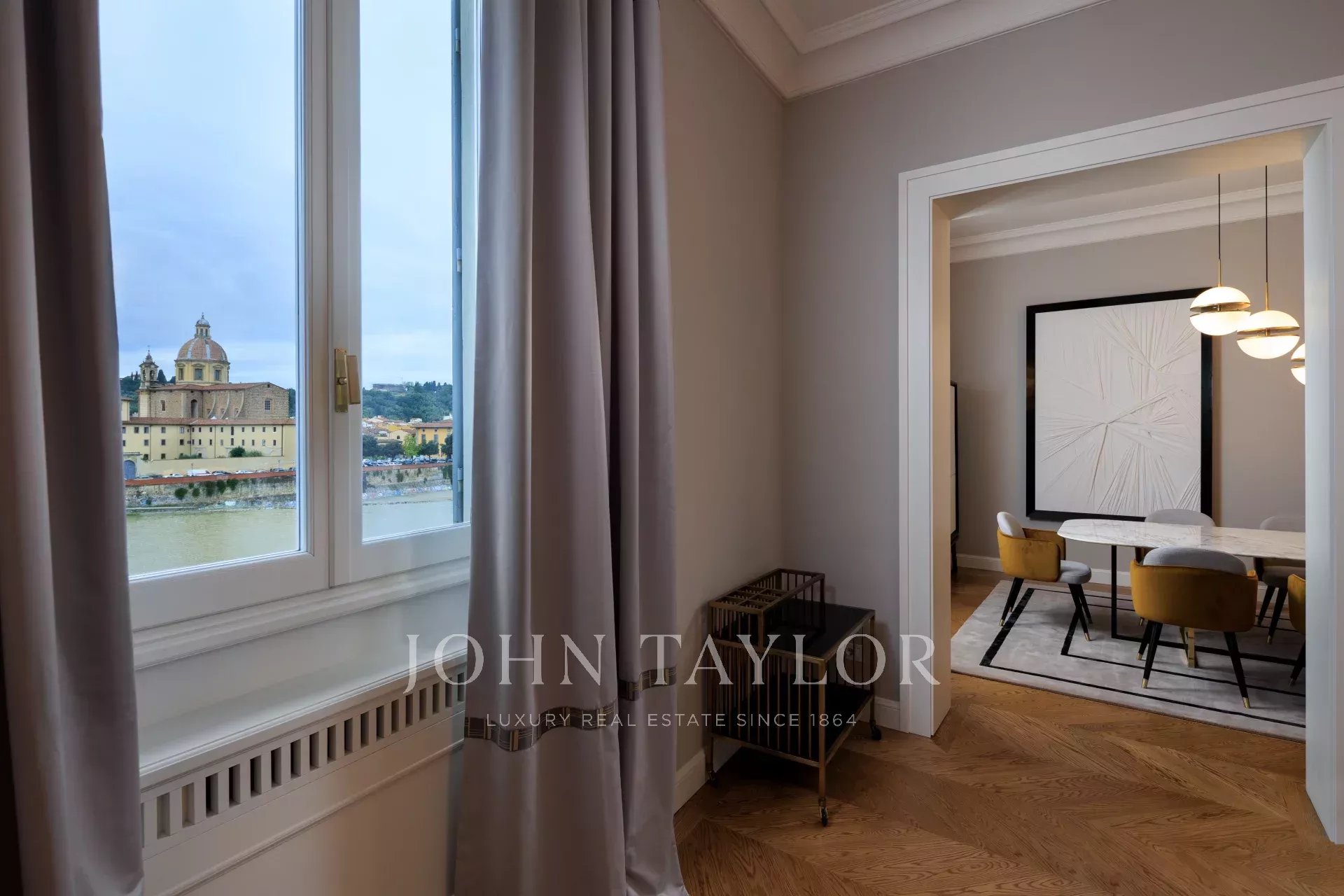 Tento elegantní byt se nachází na břehu řeky Arno ve Florencii a nabízí výjimečný panoramatický výhled na řeku a historické památky.