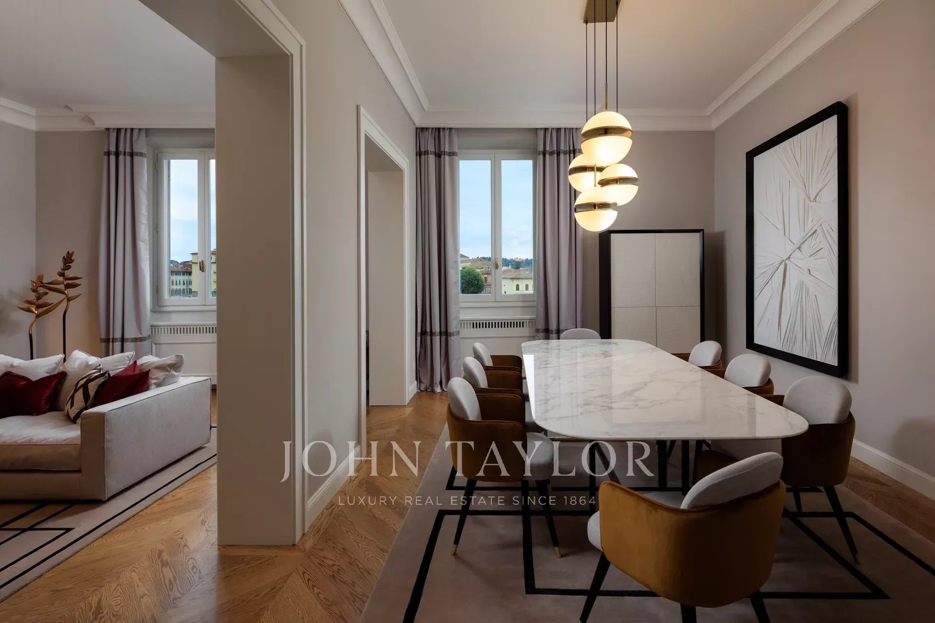 Výhodou bytu je také služba concierge a soukromý výtah, který poskytuje přímý přístup pro pohodlí a soukromí. Každý detail byl pečlivě promyšlen, ušlechtilé materiály a výjimečné povrchové úpravy nabízejí skutečně exkluzivní bydlení v srdci Florencie.