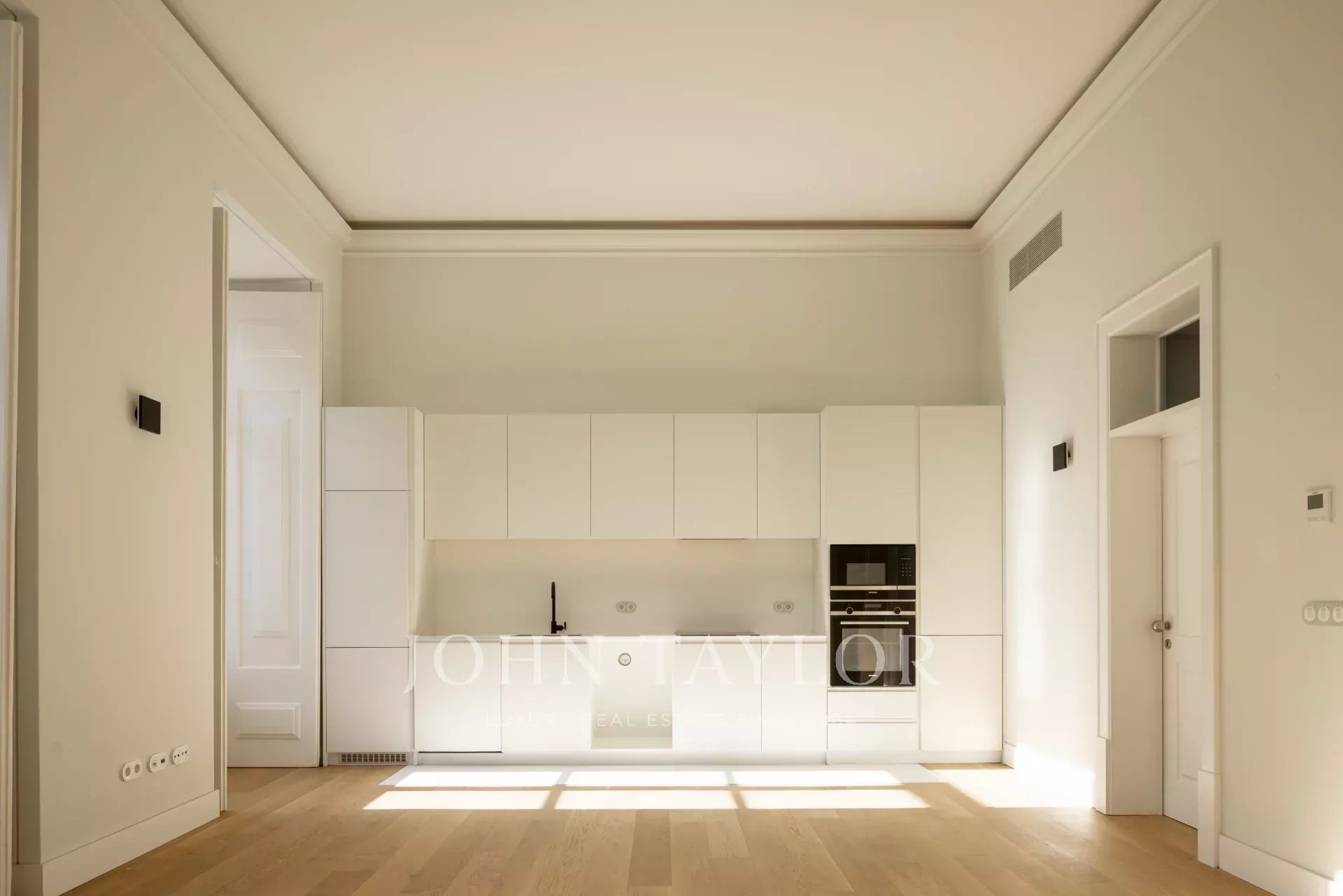 V bytě se snoubí špičkové povrchové úpravy s nejkvalitnějšími materiály a luxusním vybavením, což vytváří sofistikované a zároveň pohodlné životní prostředí. Velká okna poskytují vynikající přirozené světlo a okouzlující výhled na historické ulice Lisabonu.