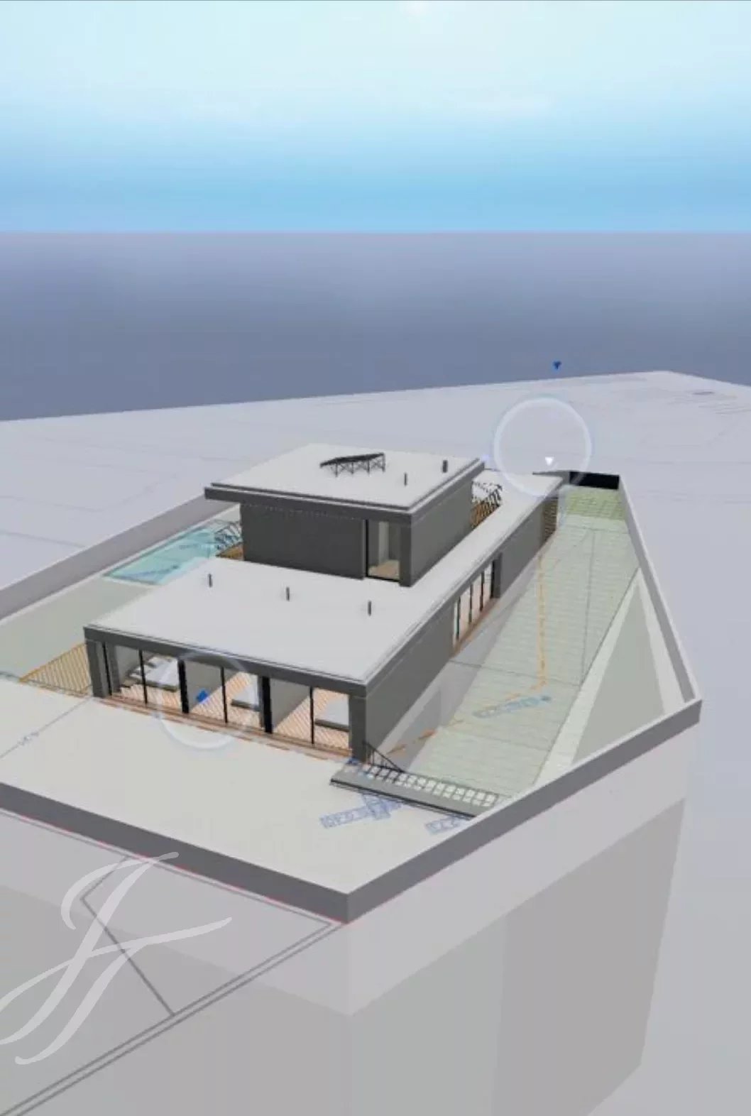 Tato vila o hrubé zastavěné ploše 530 m2 stojí na pozemku o rozloze 930 m2 a rozkládá se na 3 podlažích, která mají vynikající sluneční záření, což zajišťuje světlou a útulnou atmosféru po celý den.