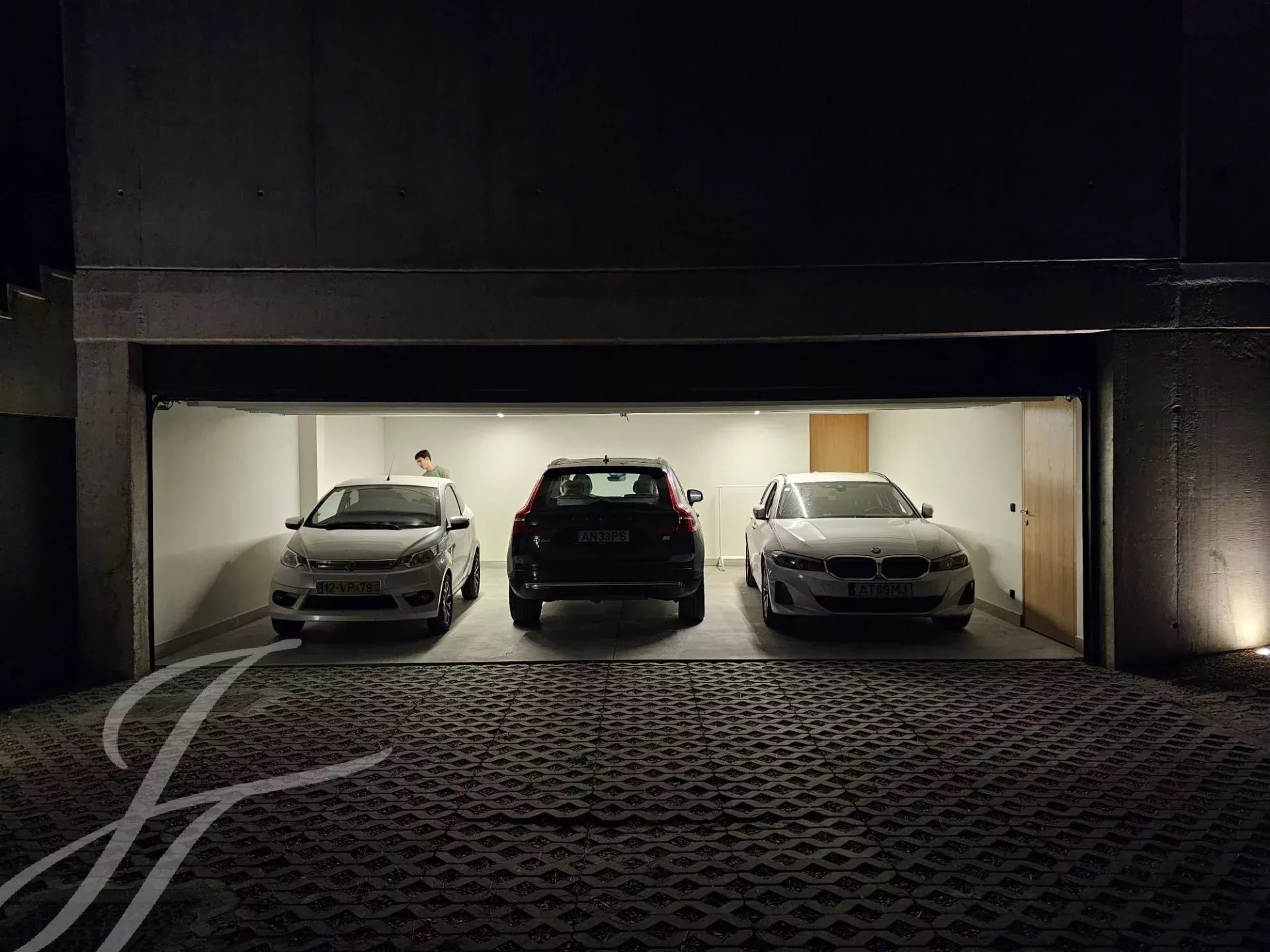 V patře s garáží se nachází další místnost, kterou lze využít jako kancelář nebo ložnici pro hosty, WC, prádelna, technický prostor, sklad a garáž pro 2 auta.