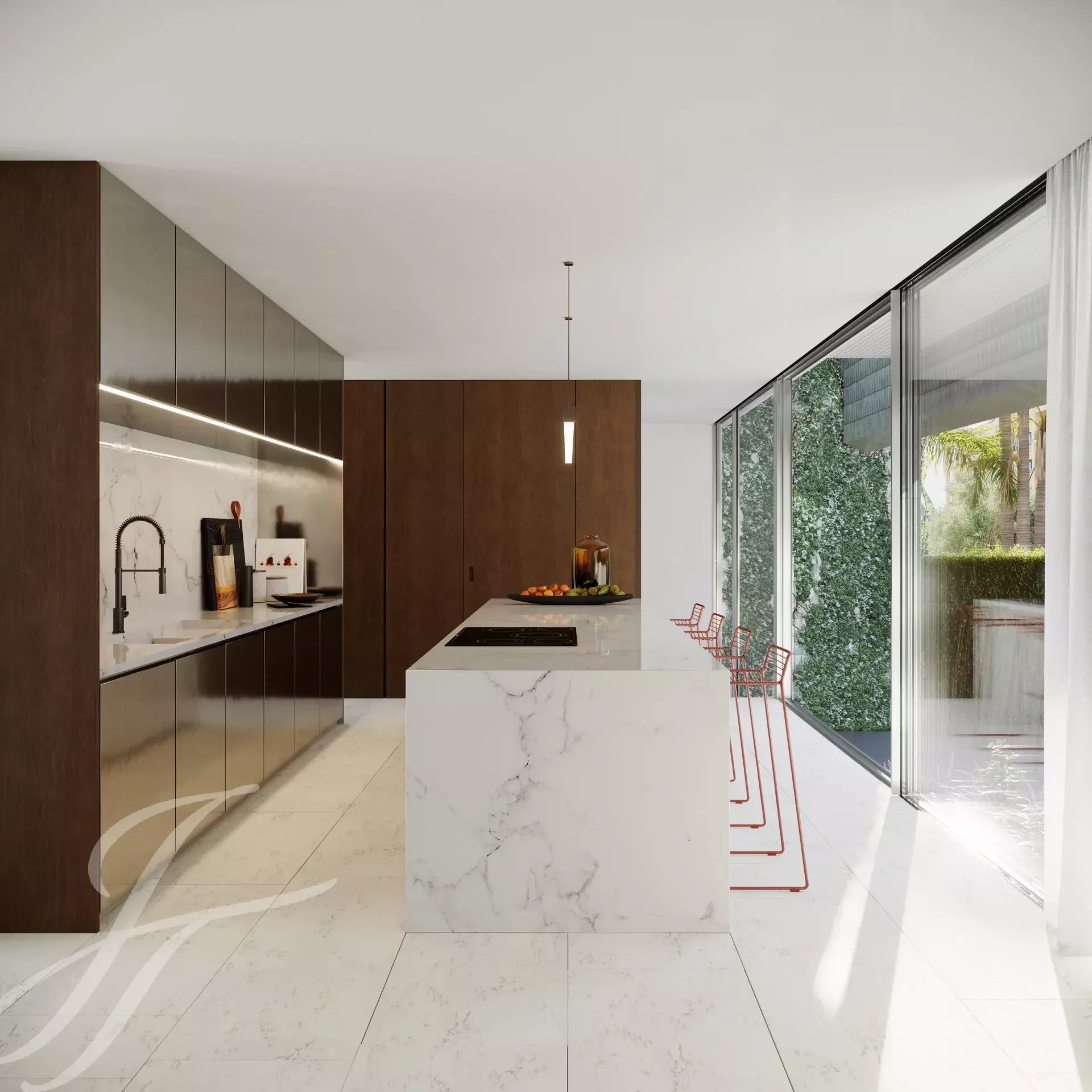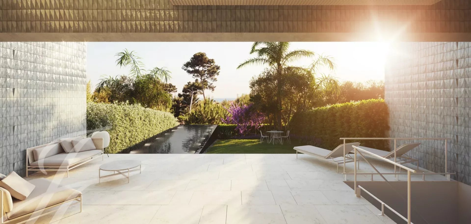 Tento exkluzivní projekt pouhých sedmi vil s minimalistickým designem, otevřenými prostory a vynikajícím slunečním zářením se nachází vedle zahrady Pinhal de Santa Maria na Avenida do Lidador a nabízí nádherný výhled do zahrady a na moře.