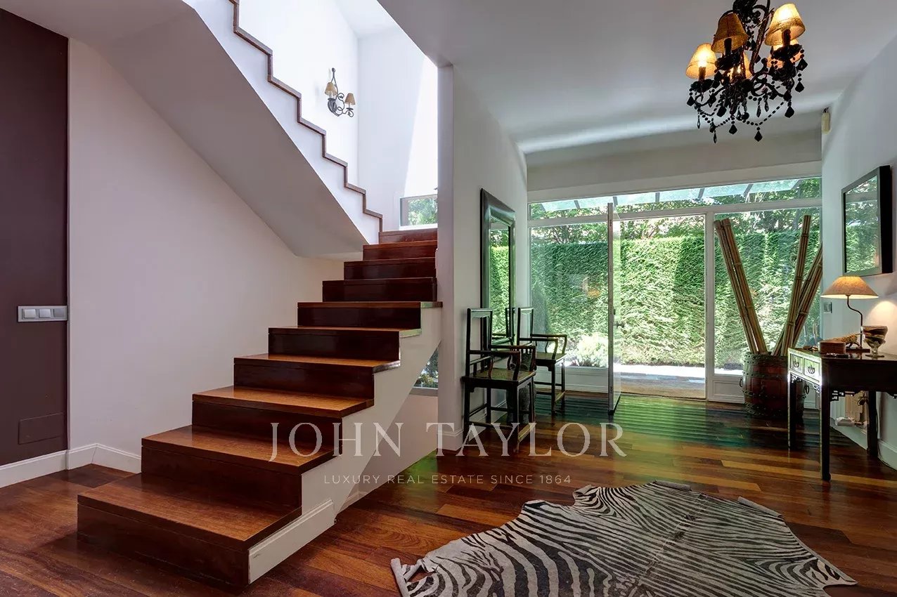 Rozdělena do tří pohodlných podlaží, hlavní patro se skládá z velkého a světlého obývacího pokoje s krbem a velkými okny s přístupem do zahrady a nádherný krytý a prosklený bazén, vyhřívaný, s odvlhčovací systém, který, v létě může být částečně exteriér, aby bylo možné otevřít všechny prosklené ohrady.