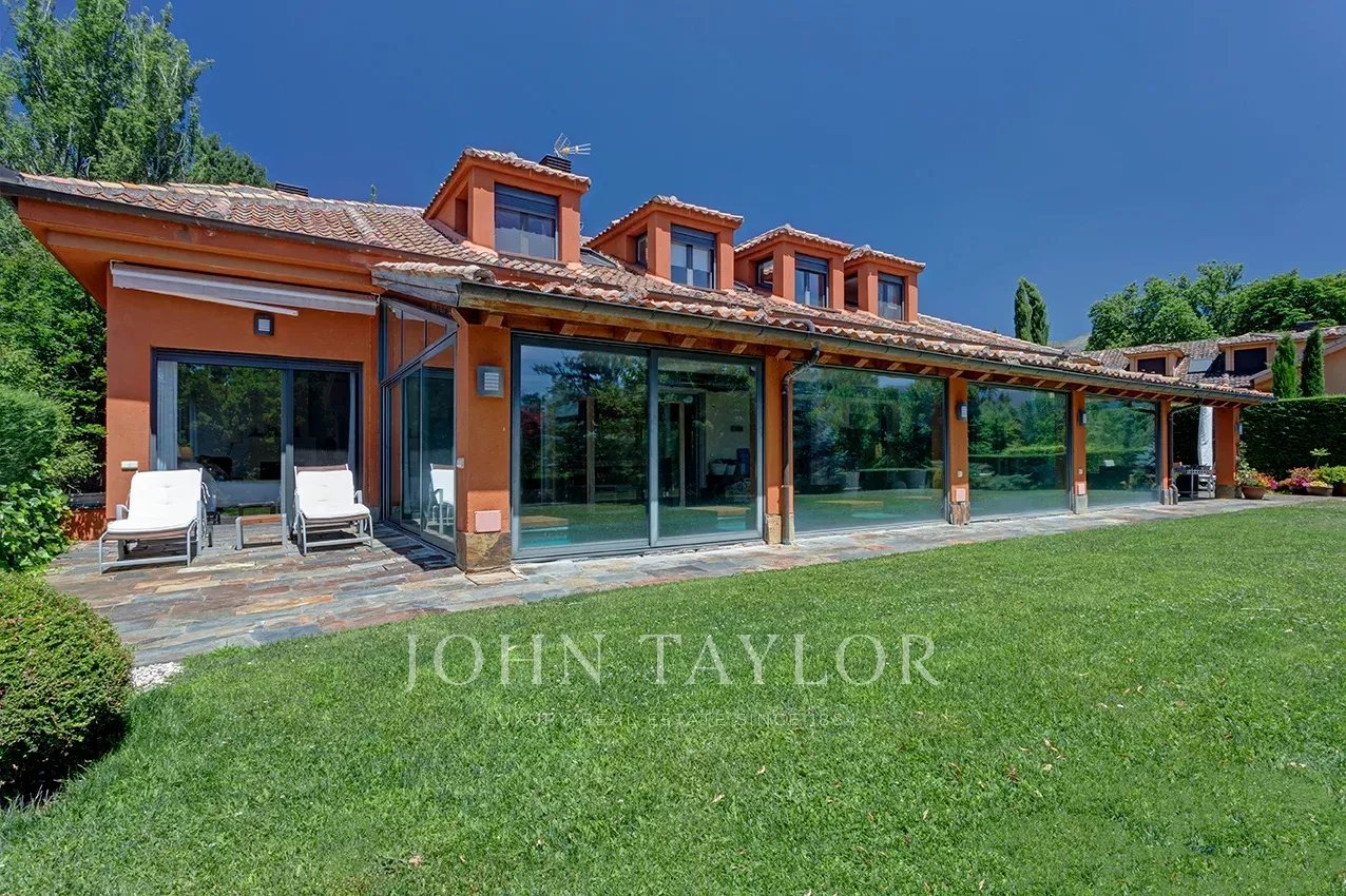 Krásná a dobře udržovaná zahrada s verandou a terasou je obklopena krásnou horskou krajinou s výhledem na centrální systém a její umístění v uzavřeném areálu s velkým pozemkem pro společné užívání činí z této nemovitosti skutečný skvost jako první nebo druhý domov, který se nachází v obci, jako je La Granja de San Ildefonso, s krásným královským palácem a zahradami, hezkou vesničkou s dobovou zástavbou, vedle působivého lesa Valsain se staletými borovicemi, kde můžete sportovat na jeho stezkách, lyžovat v nedalekém lyžařském středisku Valdesqui nebo Navacerrada nebo hrát golf na jeho úžasném golfovém hřišti na úpatí hor.