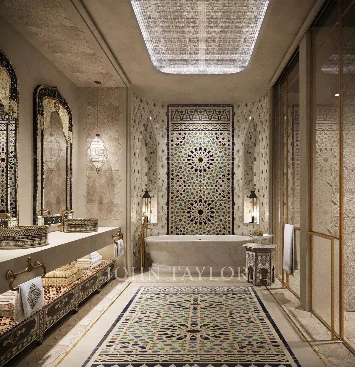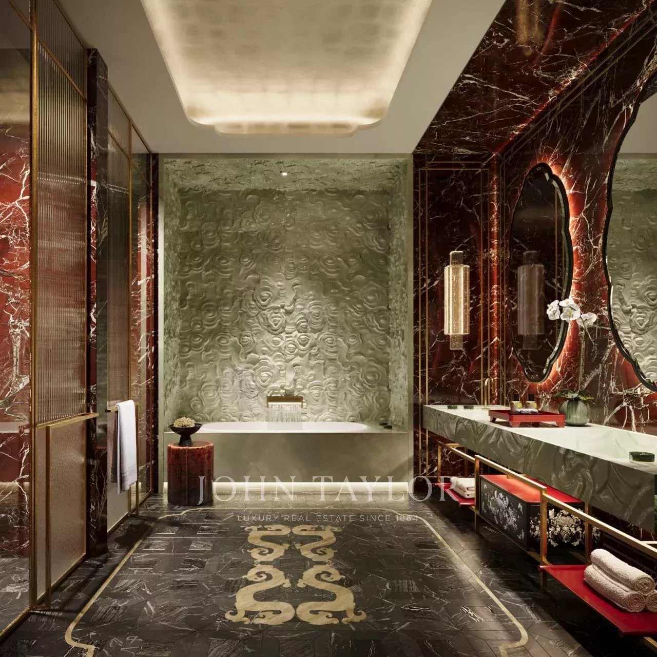 Prémiové povrchové úpravy: Vysoce kvalitní mramorové podlahy, designové vybavení a okna od podlahy až ke stropu, která zaplavují prostor přirozeným světlem.