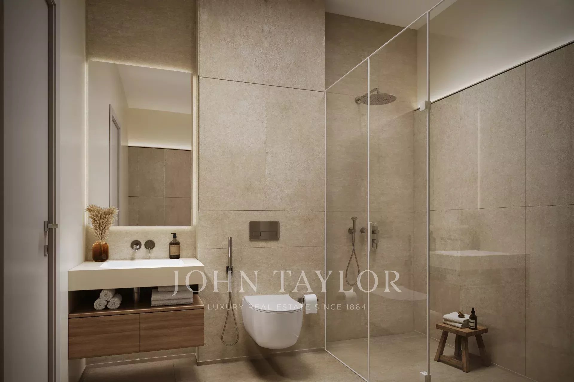 2 ložnice | 3 koupelny: Dvě velkorysé ložnice, každá s vlastní koupelnou, a další koupelna pro hosty pro maximální pohodlí. Všechny koupelny jsou vybaveny špičkovým příslušenstvím a elegantním designem.