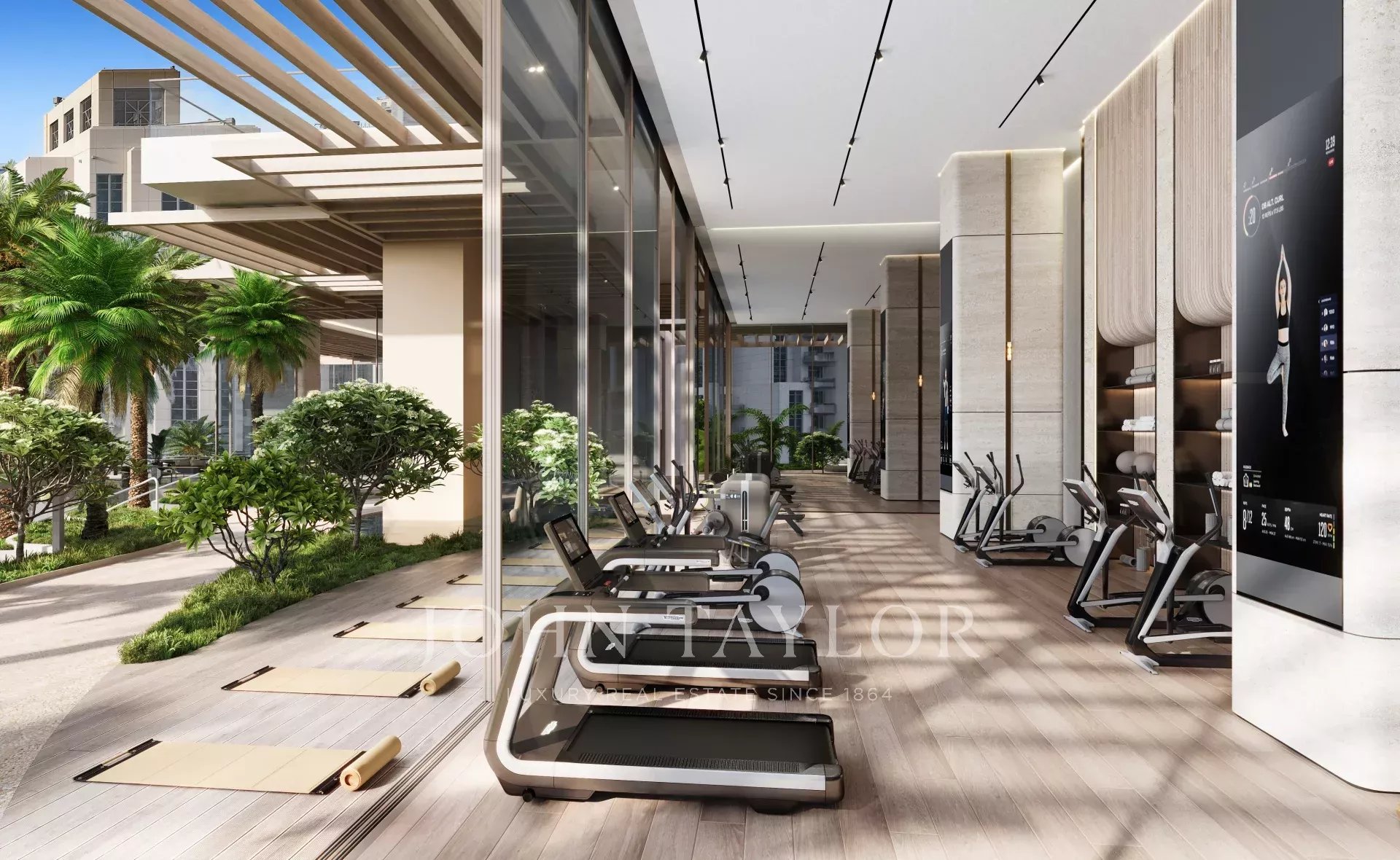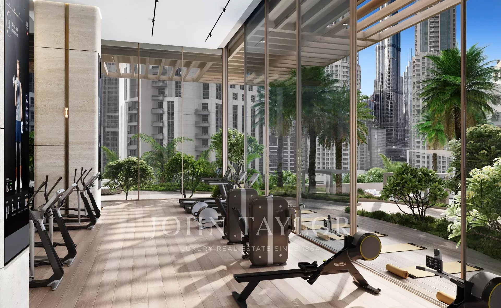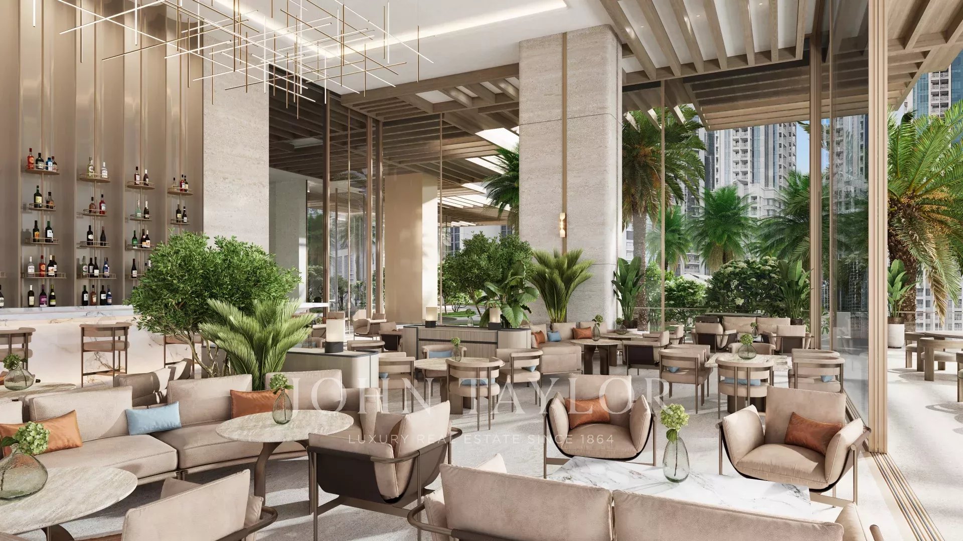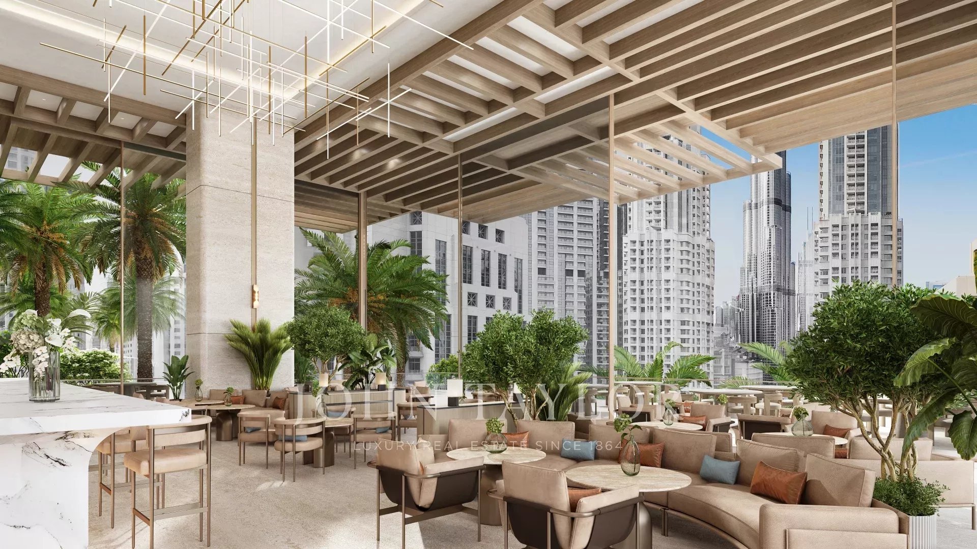 Přístup k prvotřídnímu vybavení, včetně střešního nekonečného bazénu, lázní, posilovny, upravených zahrad, kinosálu a jedinečných prvků, jako je golfový simulátor a prostor pro jógu.