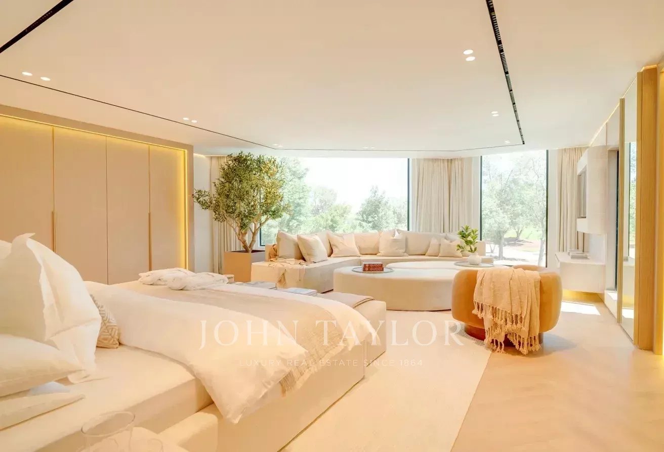 Od okamžiku, kdy vstoupíte dovnitř, se vznášející se stropy v trojnásobné výšce a panoramatický výhled na golfové hřiště navozují atmosféru luxusu a klidu. Tento samostatně stojící dům je skutečným řešením na klíč, připraveným k okamžitému nastěhování.
