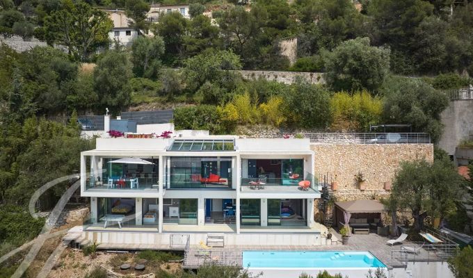 Tato nádherná vila na výšinách Cannes, s panoramatickým výhledem na moře a celý ...