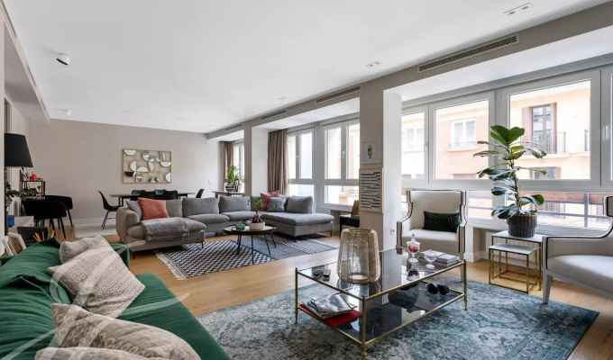 Tato exkluzivní nemovitost v srdci čtvrti Barrio Salamanca má velká okna, která ...