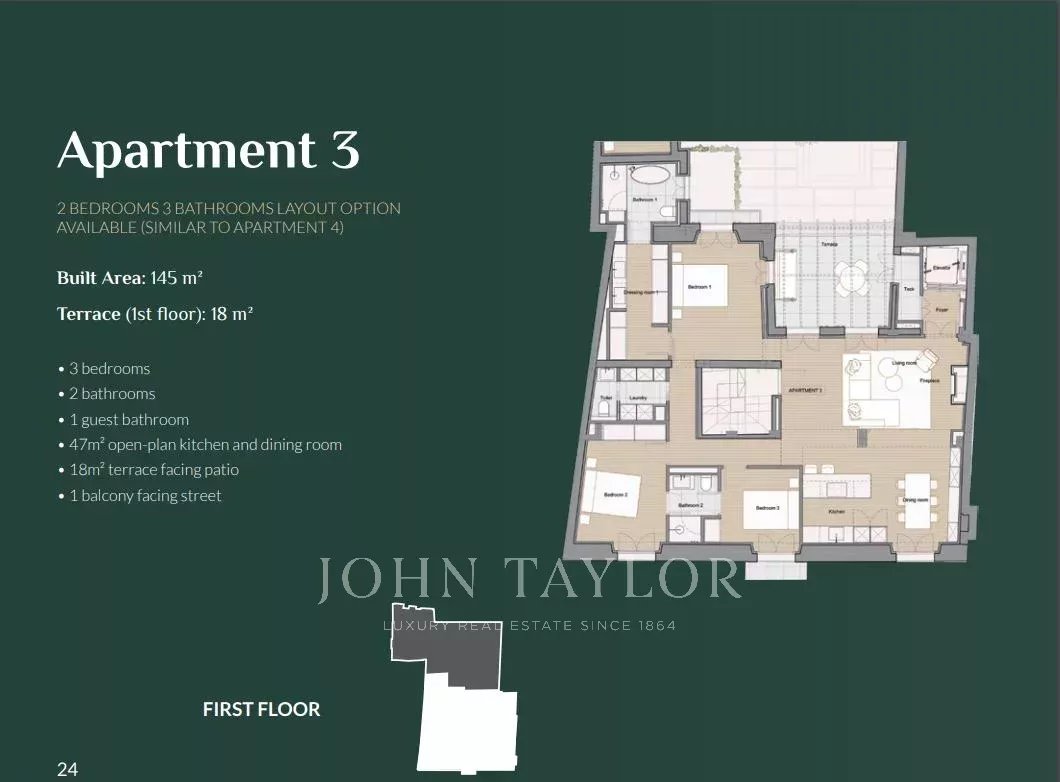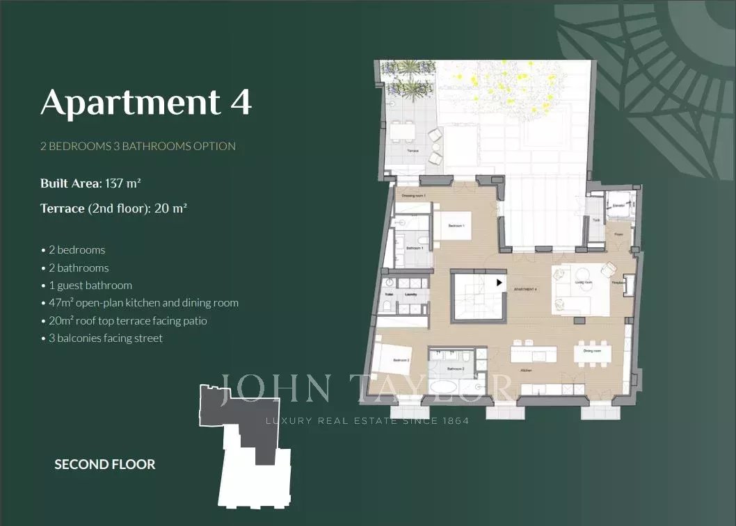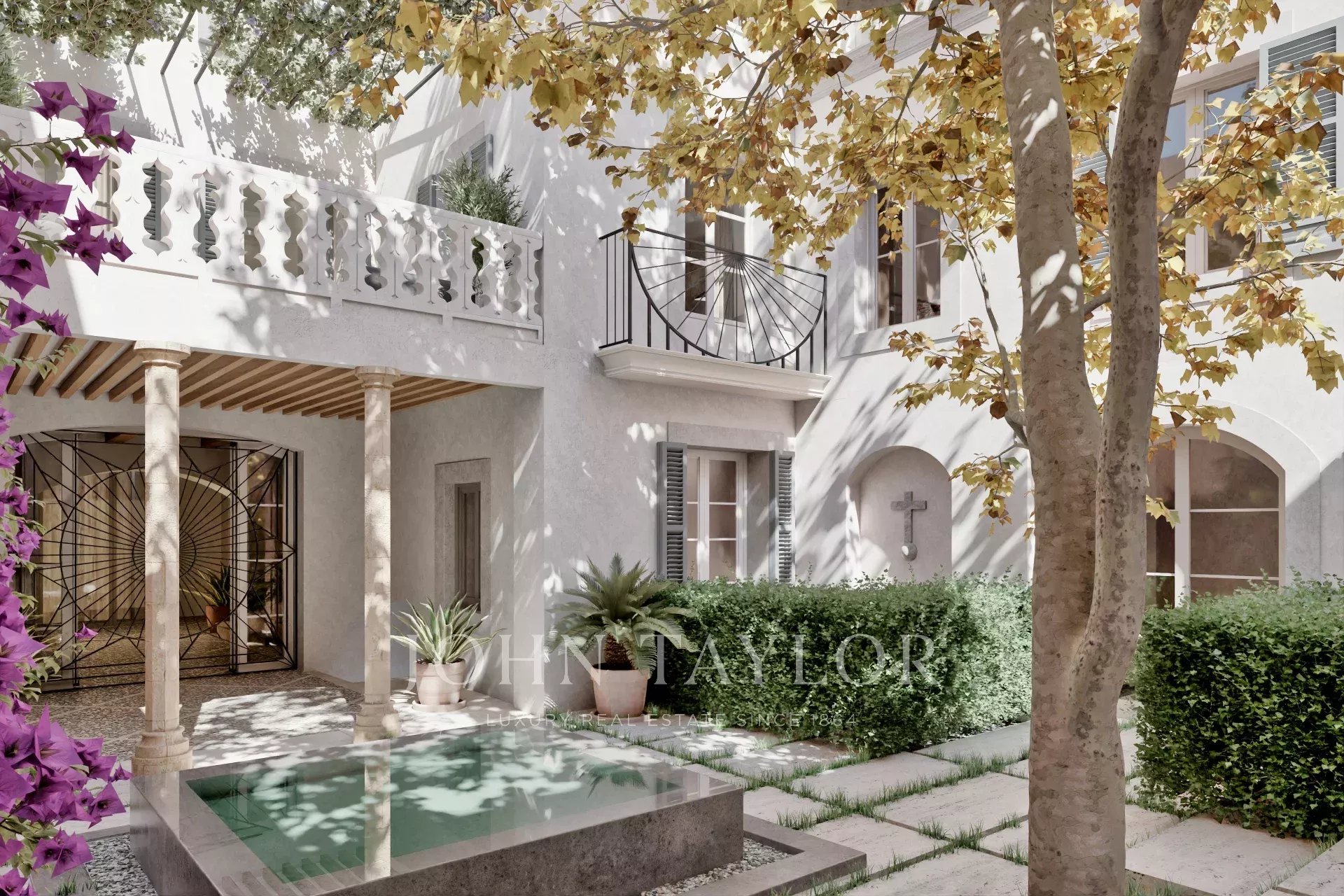 Tento báječný nový projekt, který je v současné době ve výstavbě, se promění v úžasnou rezidenci s 5 byty, postavenou kolem soukromé zahrady. Tento elegantní komplex je nedílnou součástí Starého Města a nabízí skutečnou svěží oázu klidu, letního stínu a pohody (v zimě velké staré listnaté stromy shazují listí a propouštějí sluneční paprsky). Jednotky se pohybují od zahradních apartmánů, mezonetů a triplexů o rozloze od 81 m2 do 190 m2 a mají 1, 2 a 3 ložnice. Jednotky v přízemí i v nejvyšším patře jsou vybaveny venkovními prostory, které jsou ideální pro rekreaci nebo čistý odpočinek. Projekt se zaměřuje na obnovu původní slávy budovy se všemi výhodami moderního bydlení, jako jsou trámové stropy, okna od podlahy ke stropu, podlahové vytápění, plně vybavené kuchyně se spotřebiči Siemens, centrální klimatizace a systém domácí automatizace, a s použitím ušlechtilých materiálů, jako je přírodní kámen Binissalem a dubové podlahy.