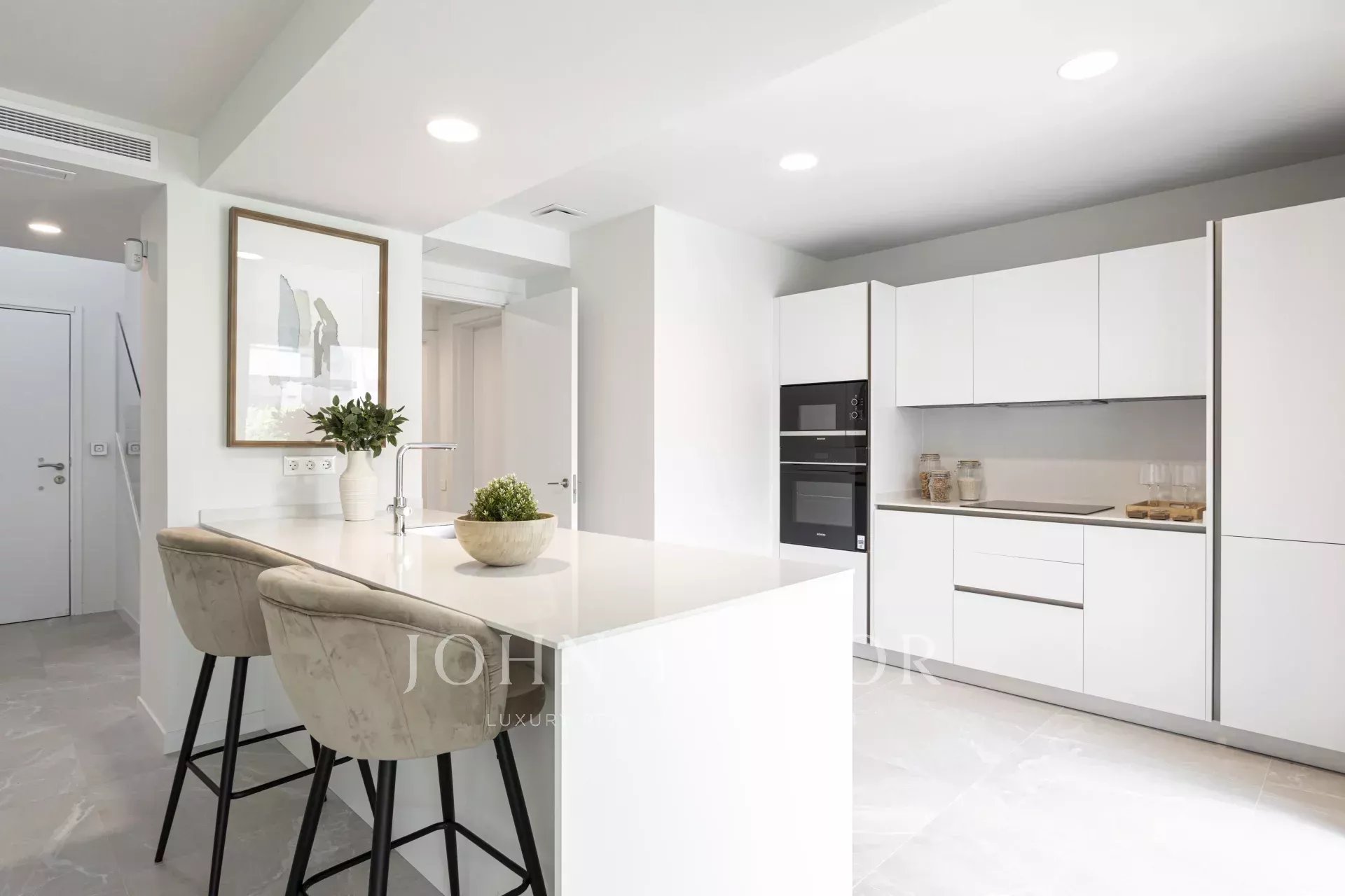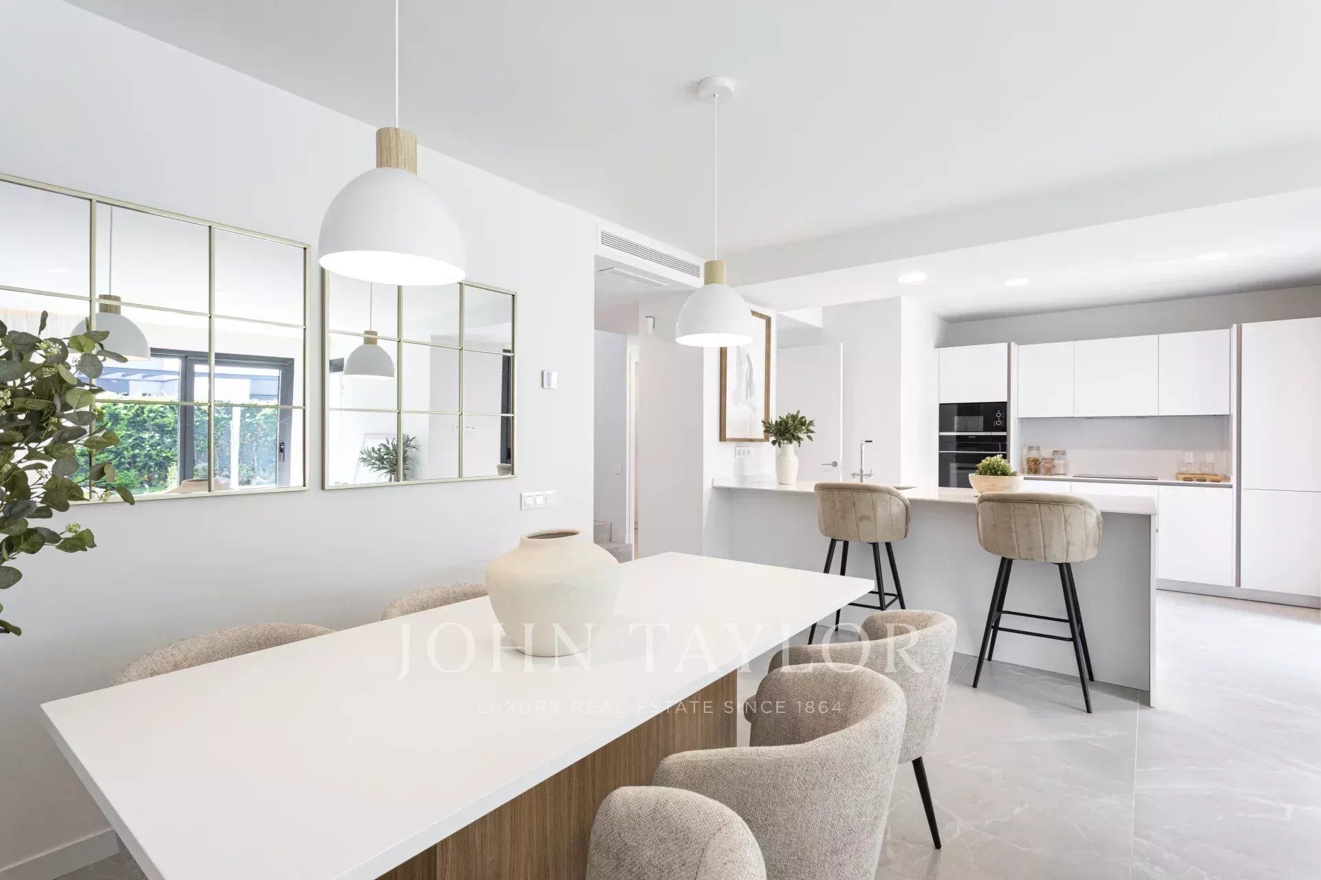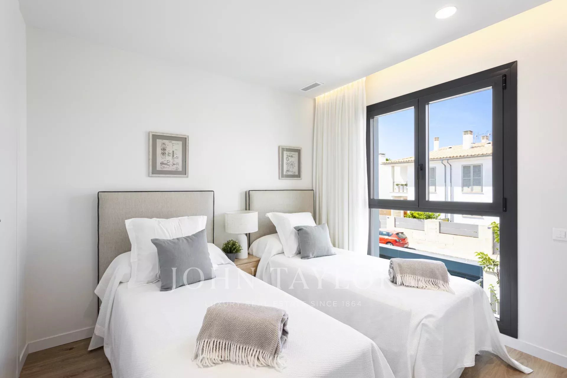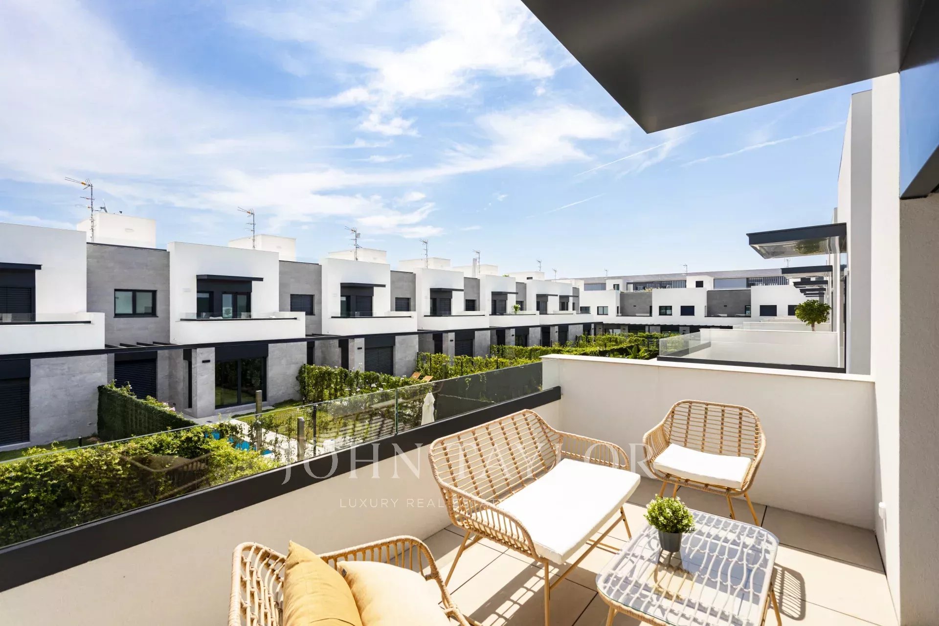 Každý dům má vlastní zahradu a bazén, střešní solárium a dvě venkovní parkovací místa. Uvnitř je dispozičně řešen prostorný obývací a jídelní prostor o rozloze až 40 m², plně vybavená kuchyň, čtyři ložnice (včetně hlavní ložnice s šatnou) a tři kompletní koupelny, z nichž jedna má vlastní koupelnu. Tyto energeticky úsporné domy vám pomohou ušetřit měsíční účty díky oknům s dvojitými skly, která udržují stabilní teplotu a snižují hluk, a nabízejí tak pohodlí po celý rok.