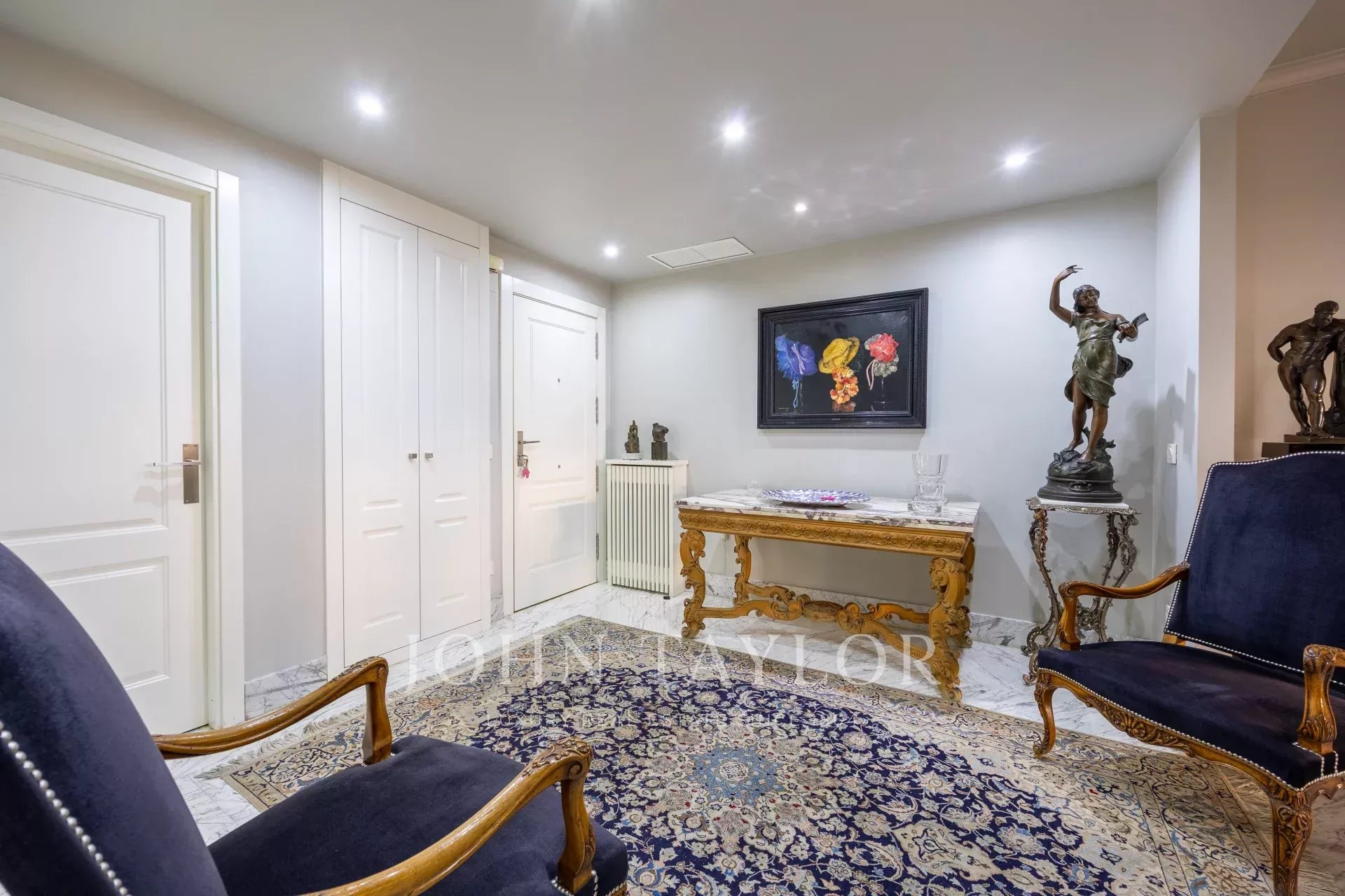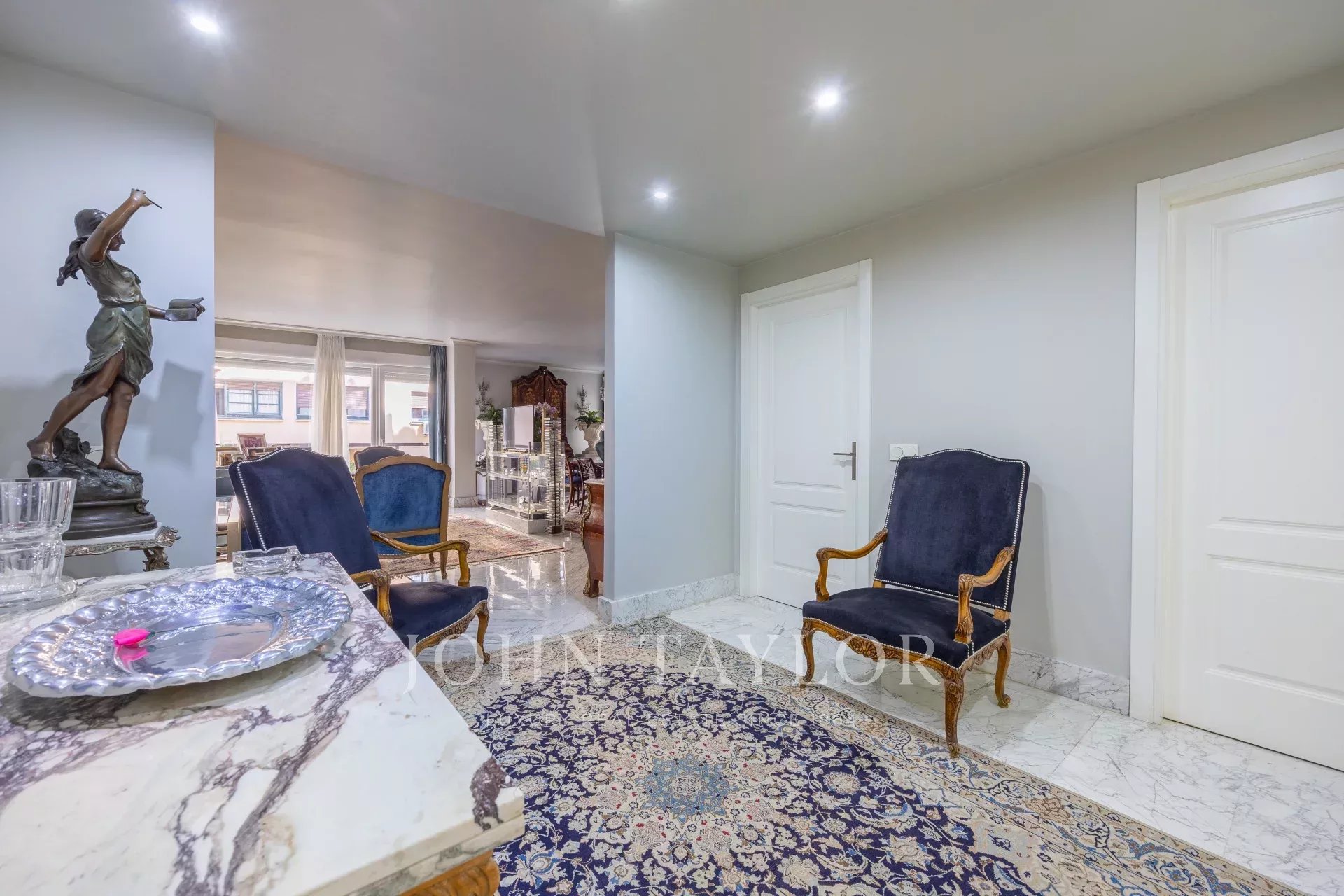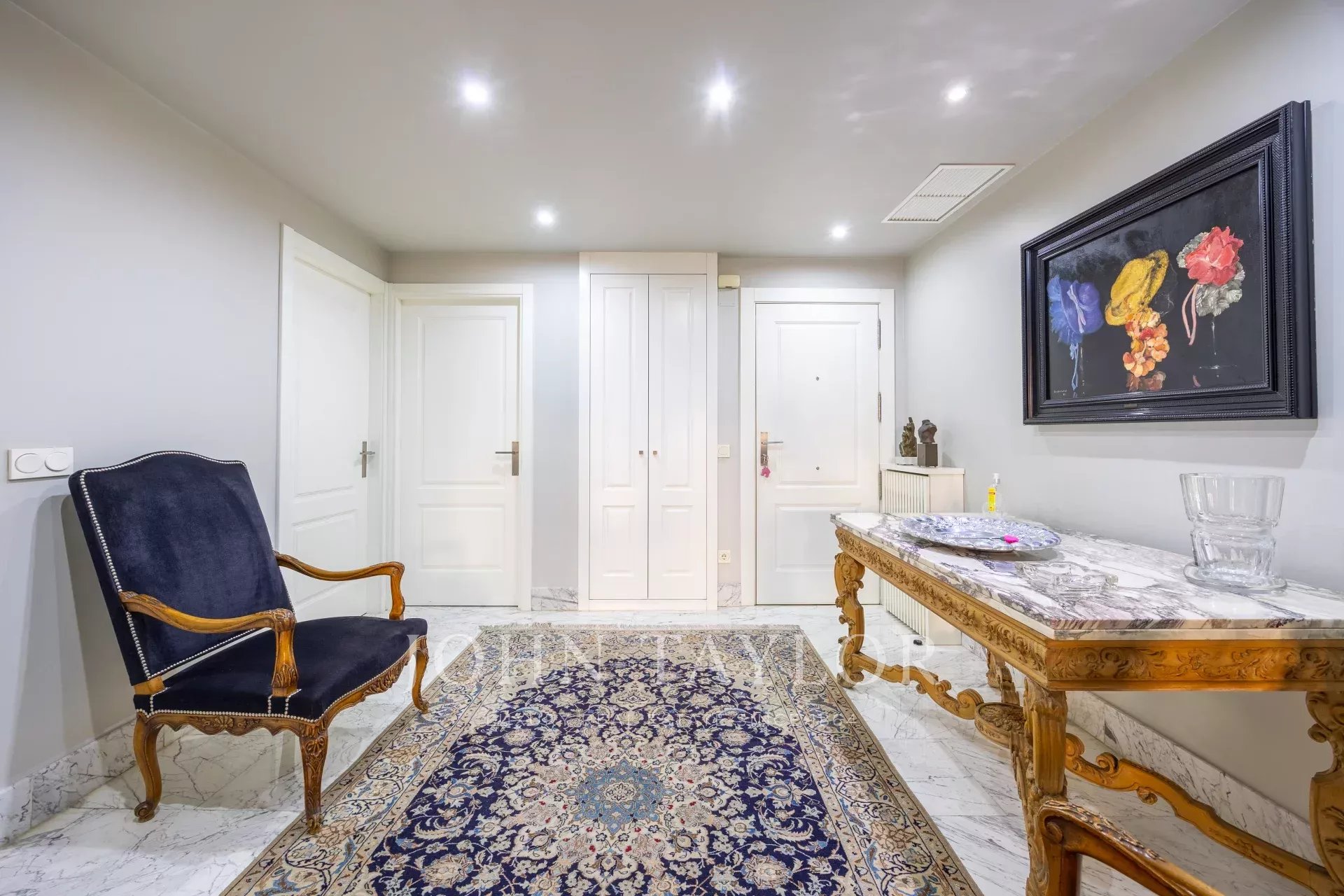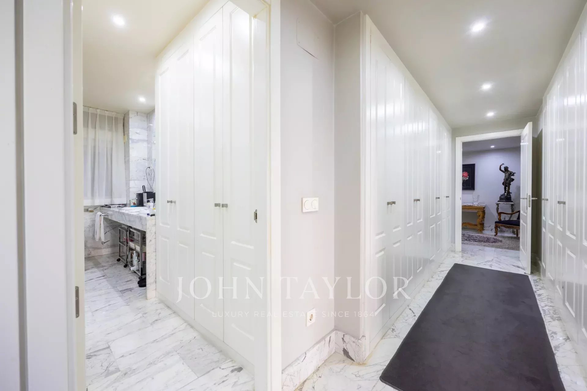 Nemovitost má vstupní halu se šatnou, která vede do obývacího pokoje/jídelny se vstupem na balkon. Jsou zde tři velké ložnice s vlastním sociálním zařízením, jedna z nich má přístup na západně orientovanou terasu s výhledem do velkého dvora. Hlavní ložnice má vlastní balkon a velkou šatnu s více než 15 dveřmi a balkonem do přední části.