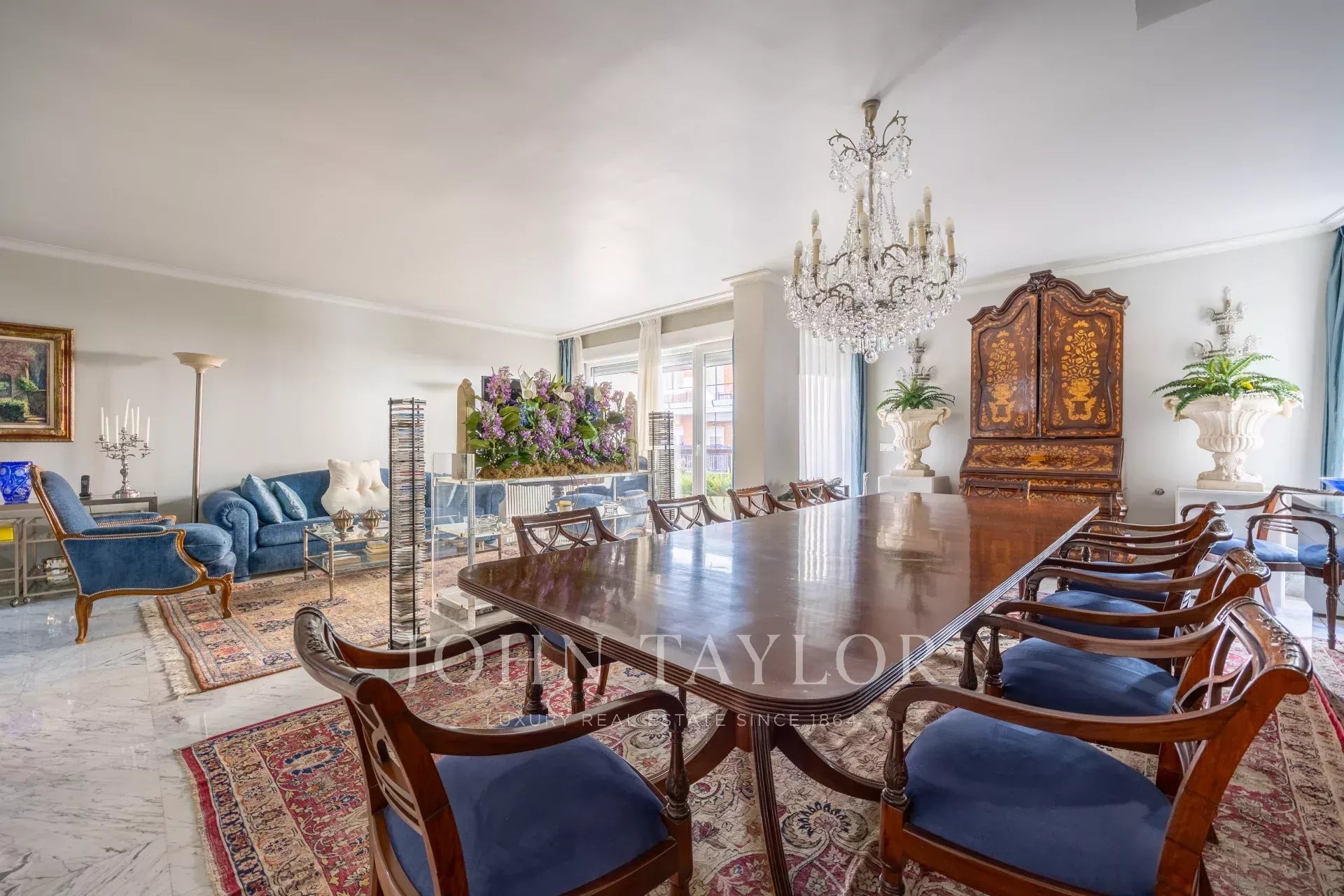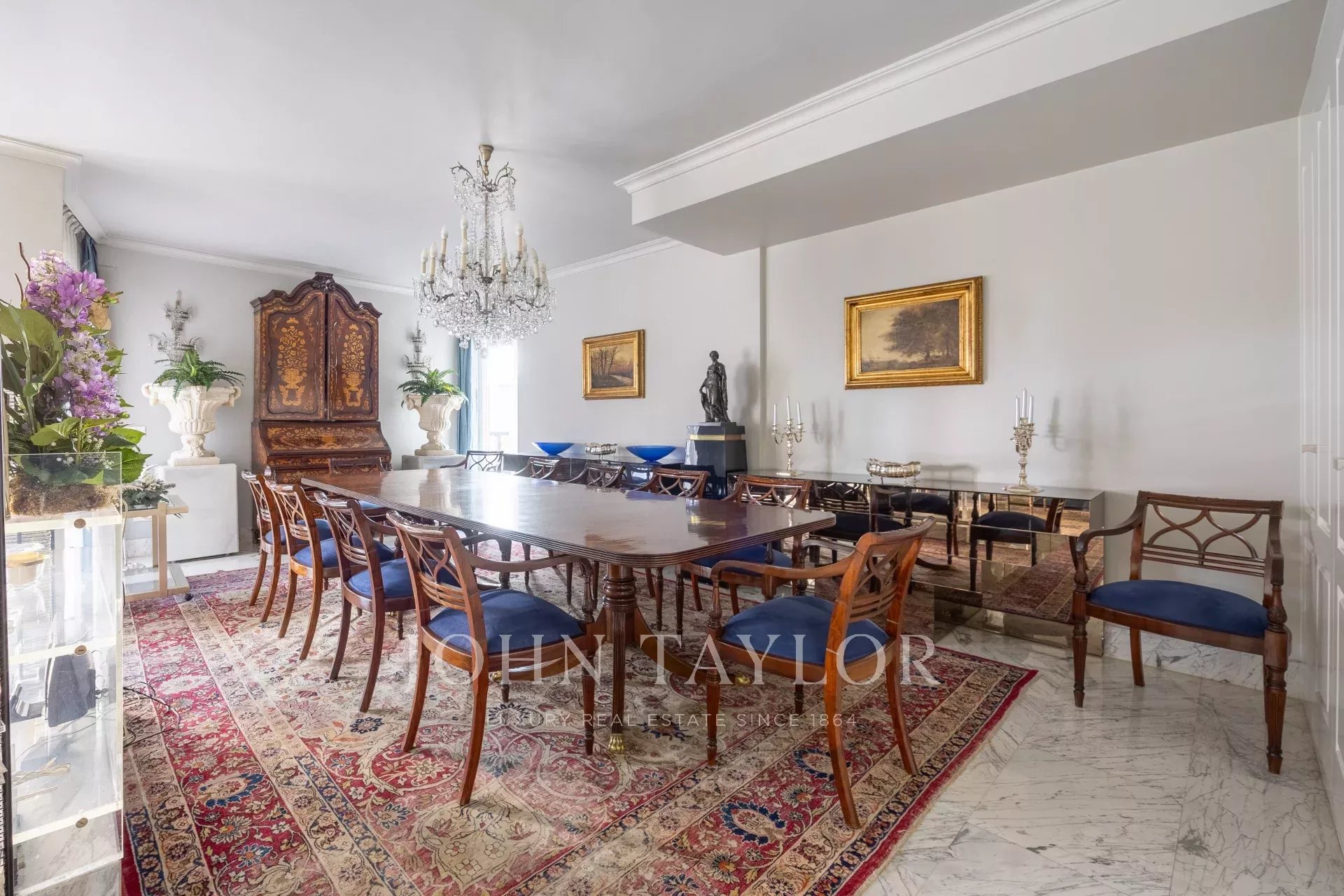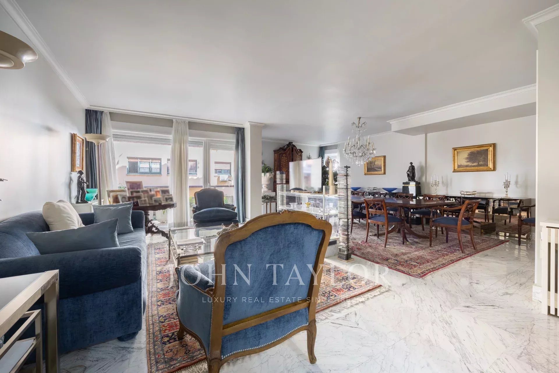 Nemovitost má vstupní halu se šatnou, která vede do obývacího pokoje/jídelny se vstupem na balkon. Jsou zde tři velké ložnice s vlastním sociálním zařízením, jedna z nich má přístup na západně orientovanou terasu s výhledem do velkého dvora. Hlavní ložnice má vlastní balkon a velkou šatnu s více než 15 dveřmi a balkonem do přední části.