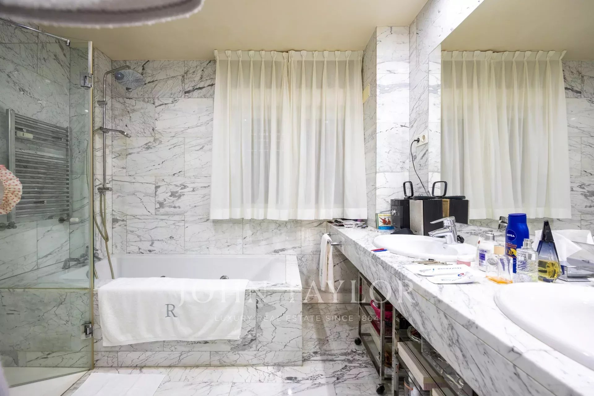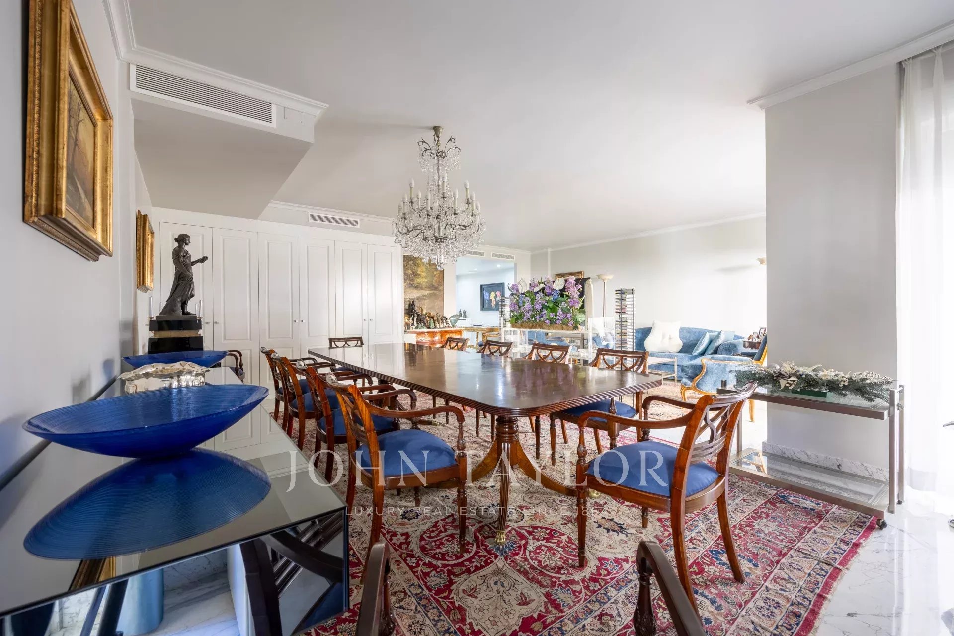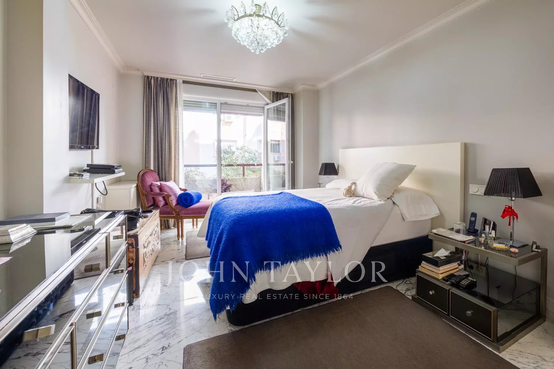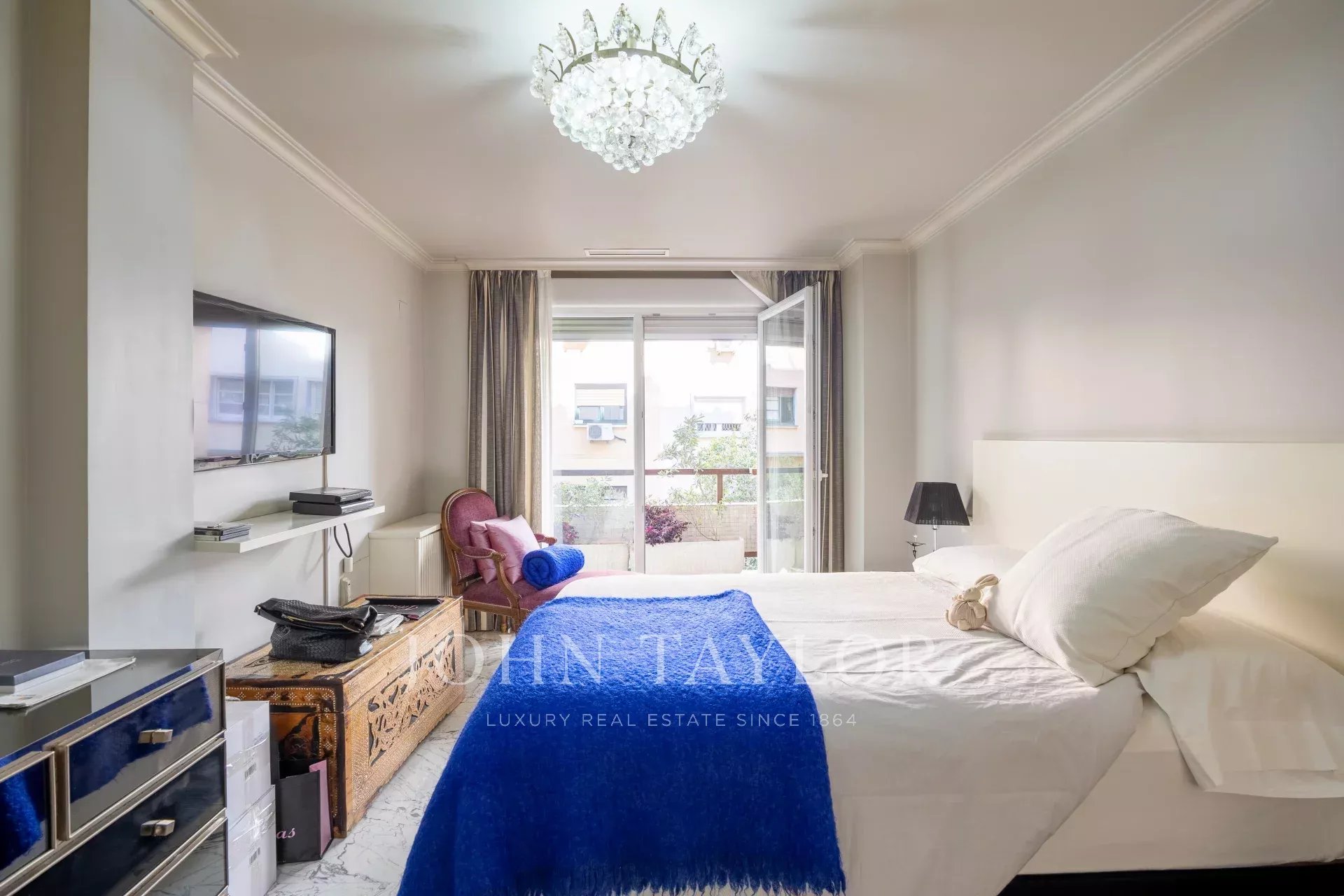 Nemovitost má vstupní halu se šatnou, která vede do obývacího pokoje/jídelny se vstupem na balkon. Jsou zde tři velké ložnice s vlastním sociálním zařízením, jedna z nich má přístup na západně orientovanou terasu s výhledem do velkého dvora. Hlavní ložnice má vlastní balkon a velkou šatnu s více než 15 dveřmi a balkonem do přední části.