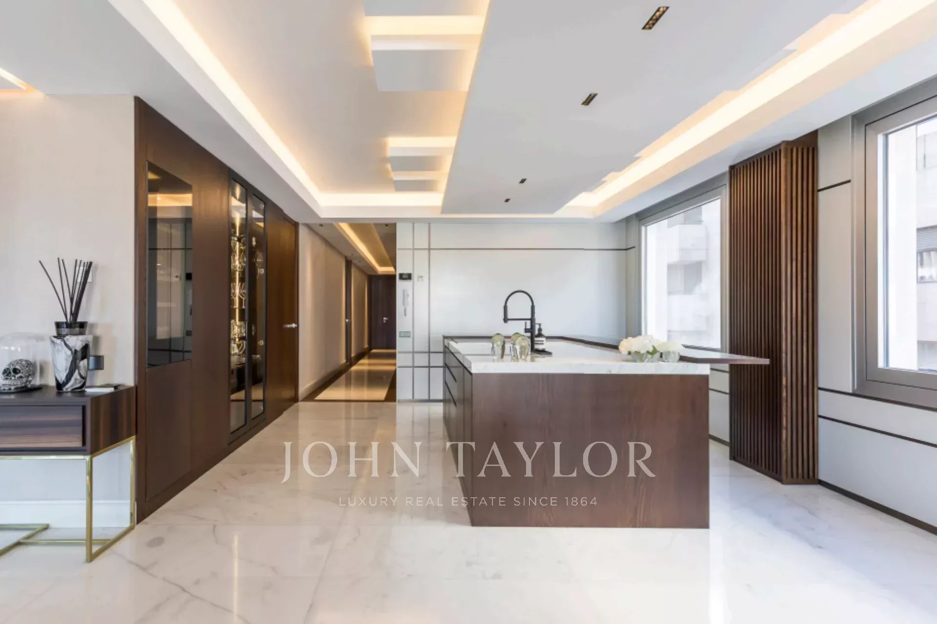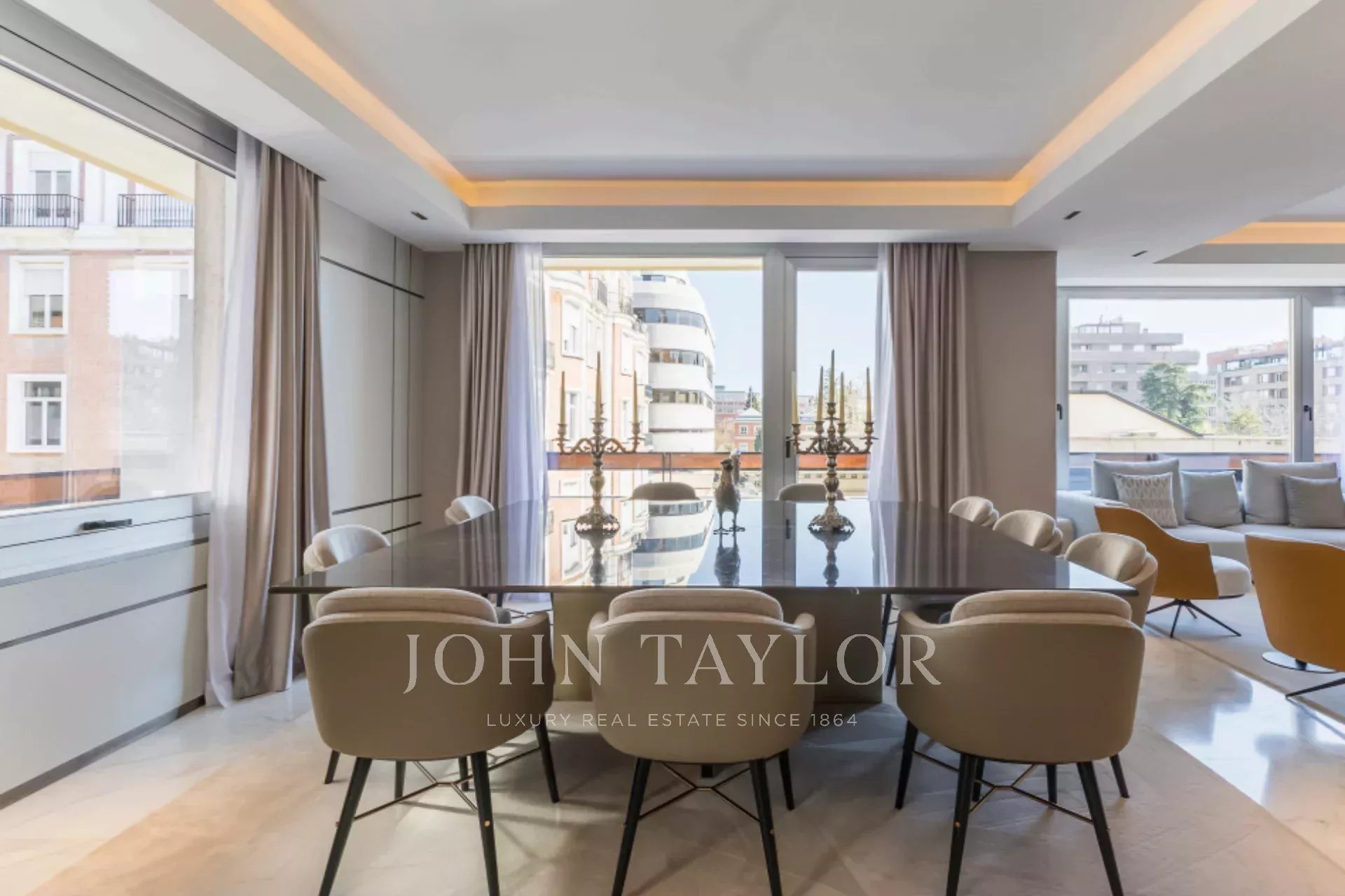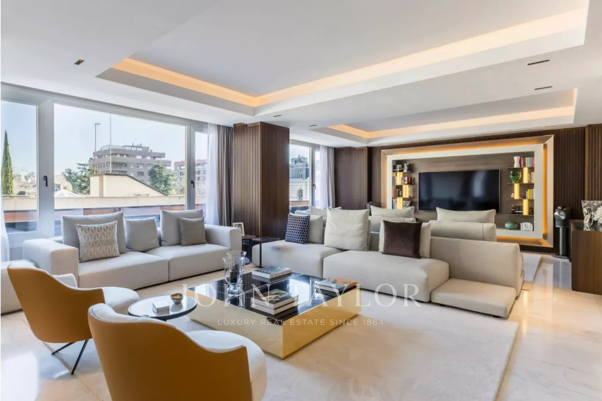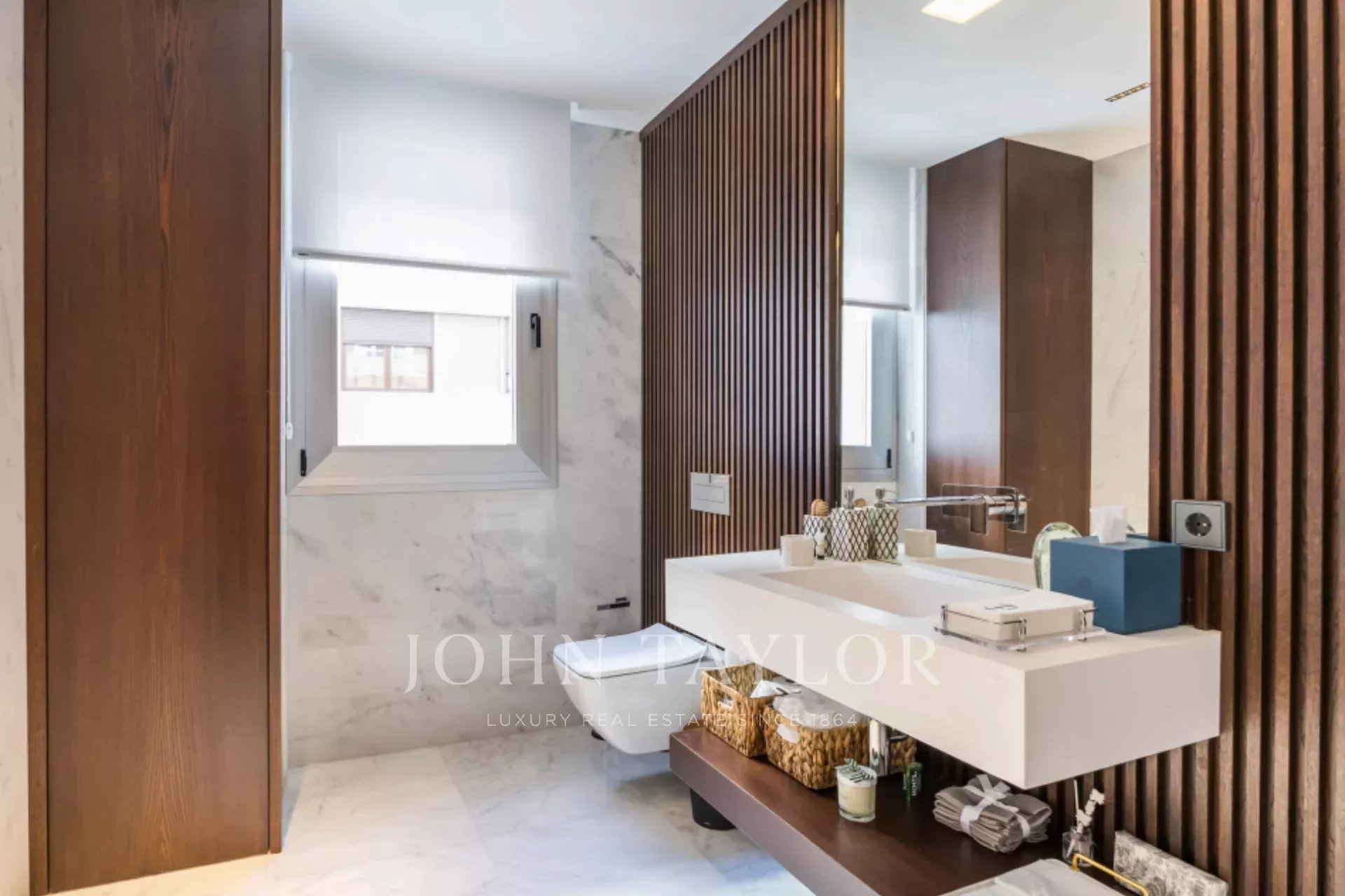 Tato výjimečná nemovitost se nachází v jedné z nejlepších částí Madridu a kombinuje mezinárodní moderní design se špičkovými povrchovými úpravami. Vytvořilo ji renomované studio interiérového designu a využívá ušlechtilé materiály, jako je dolomitový mramor a přírodní dubové dřevo, které dodávají domu jedinečný charakter.