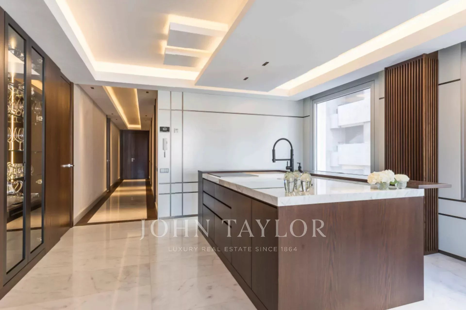 Dispozice zdůrazňuje prostornou recepci s integrovanou jídelnou, která pojme až dvanáct osob, a velký obývací pokoj, který se otevírá na terasu s nerušeným výhledem. Plně vybavená kuchyň se špičkovými spotřebiči a vinným sklípkem plynule navazuje na obývací pokoj, zatímco druhá nezávislá kuchyň nabízí další funkce včetně prádelny, servisního lůžka a koupelny, čímž se tento prostor mění v samostatný byt.