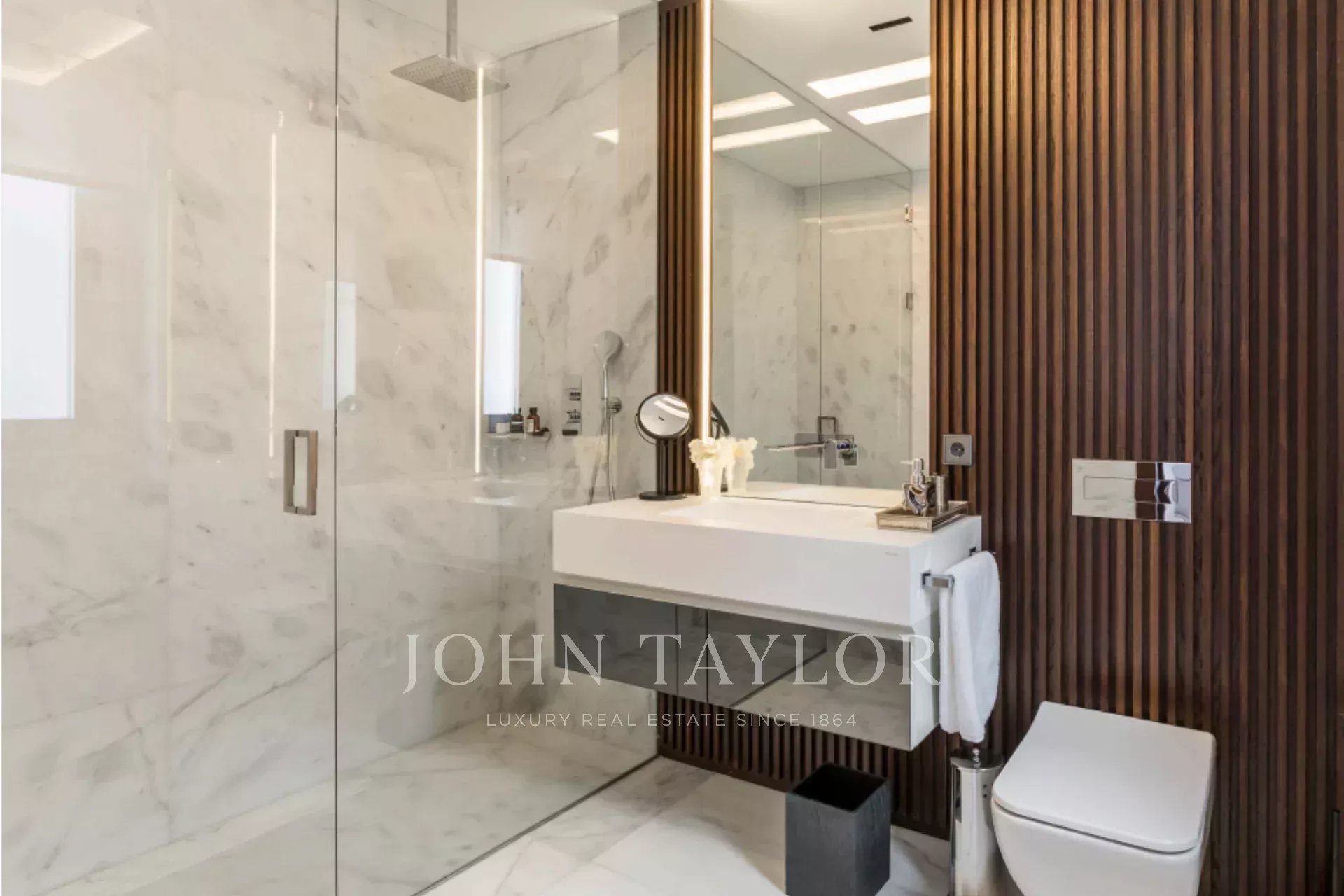 Spací část tvoří tři ložnice s vlastními koupelnami, prostornými šatnami a moderními koupelnami s povrchovou úpravou z mramoru a dřeva. Systém Casambi také umožňuje přizpůsobit osvětlení potřebám každého okamžiku a vytvořit tak uvolněné a pohodlné prostředí. Podlahové vytápění a chlazení, poháněné aerotermální energií, poskytují výjimečný komfort při snížené spotřebě energie.