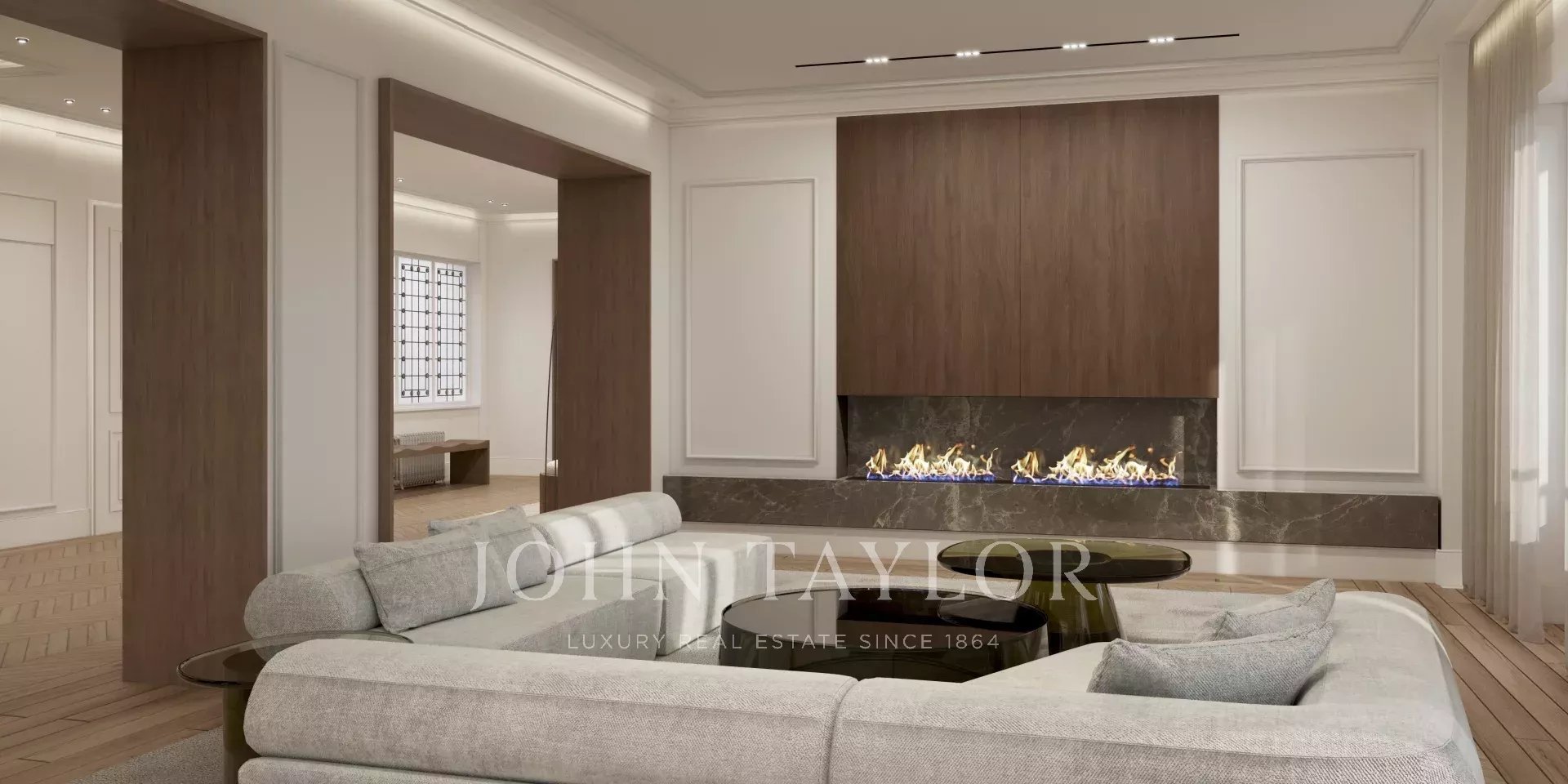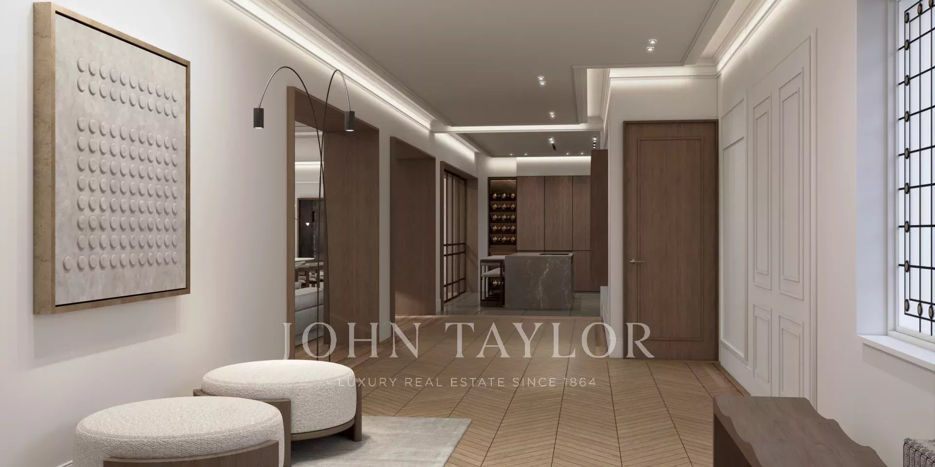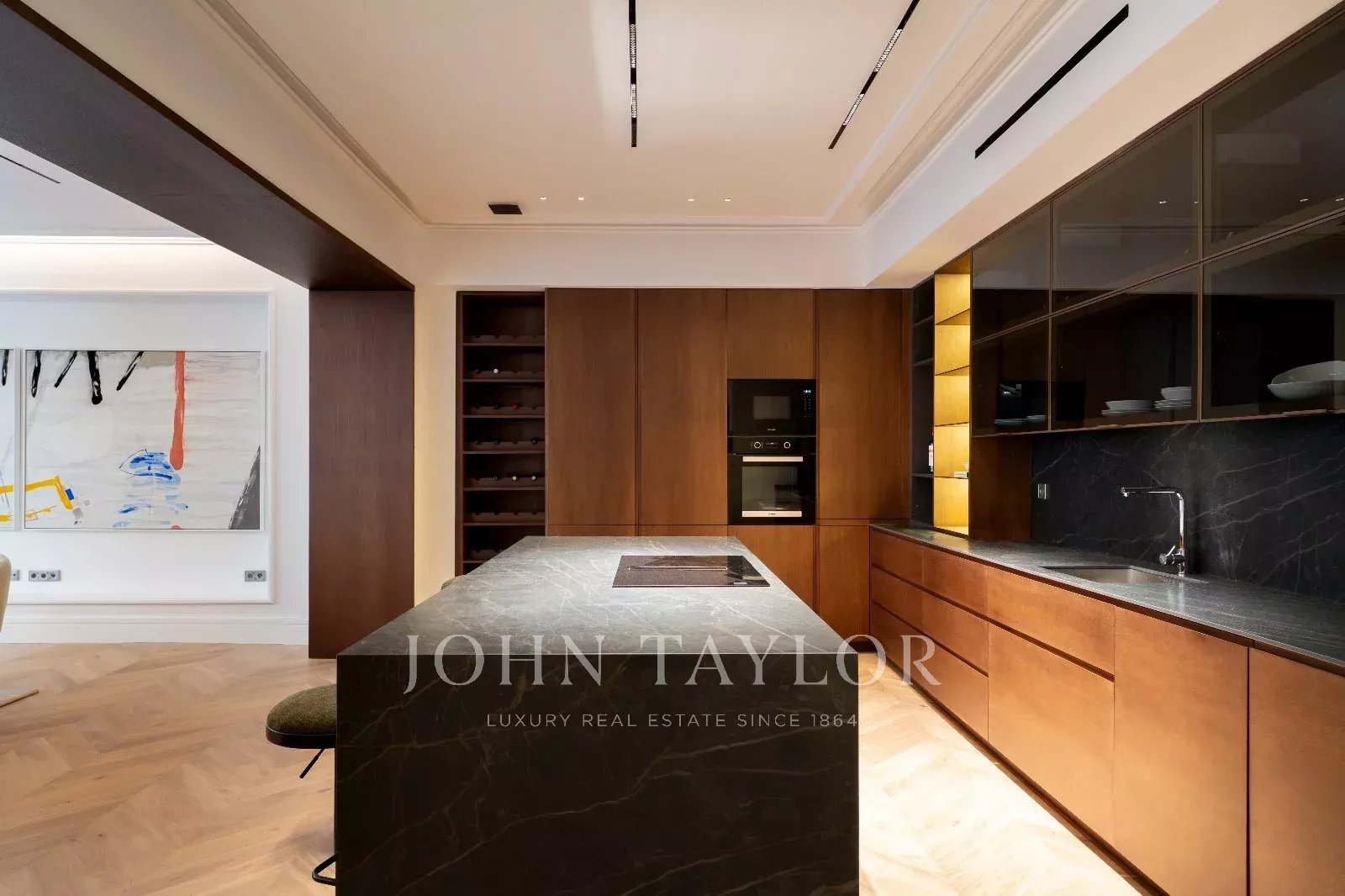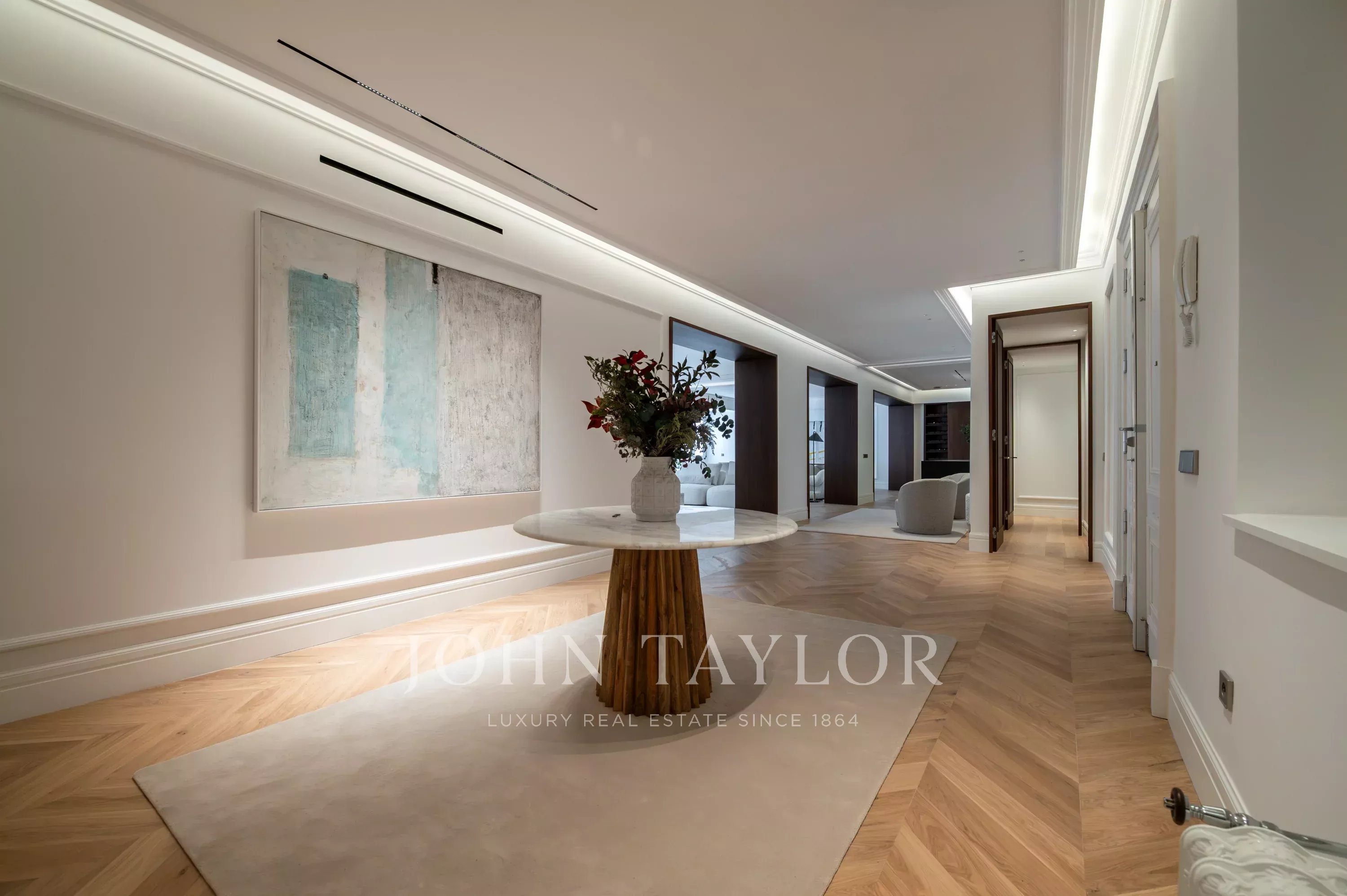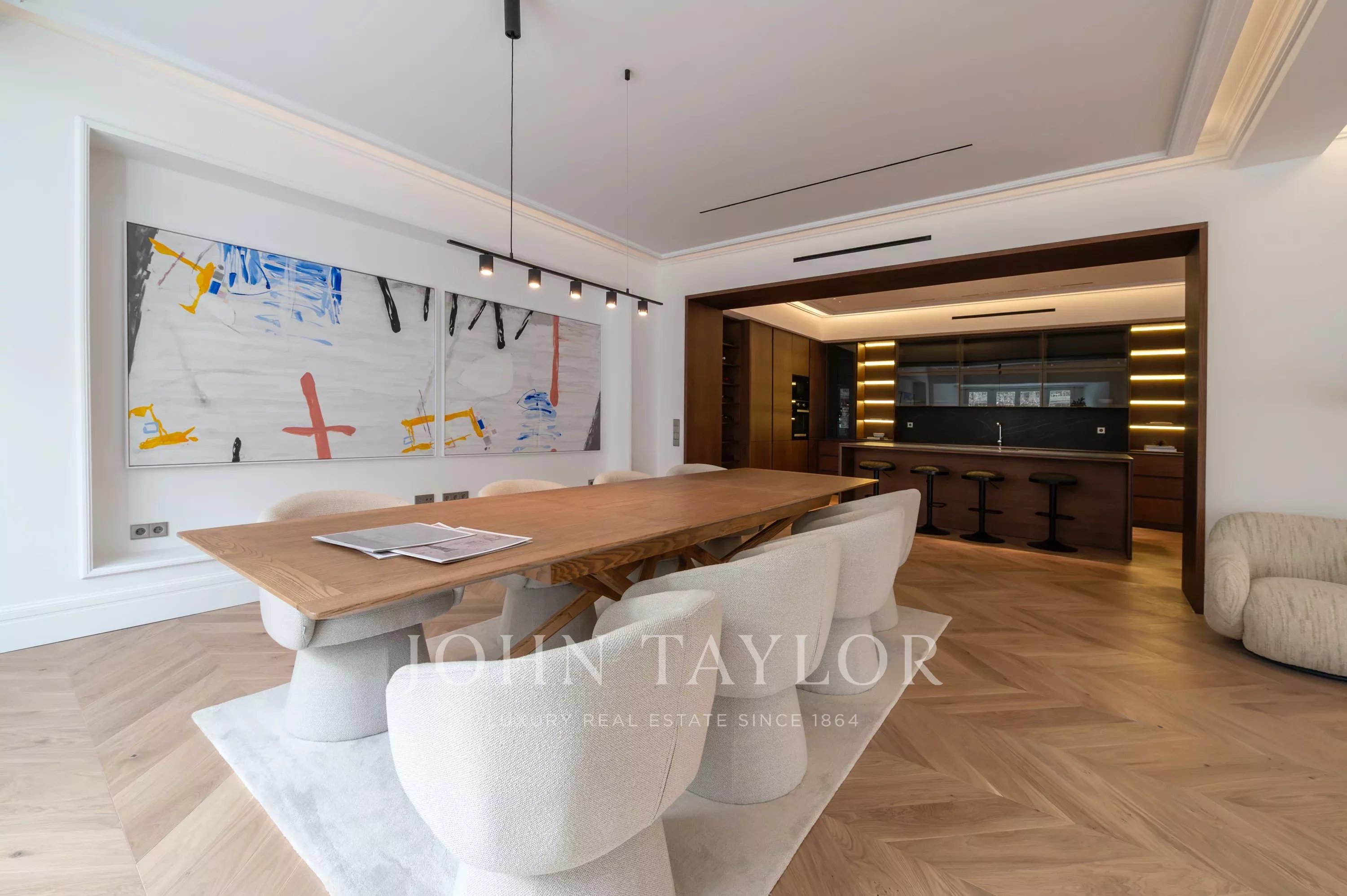 Tato výjimečná rezidence vyniká svou velikostí, třímetrovými stropy a tím, že zabírá celé první patro budovy. Má také zcela samostatný byt, který nabízí soukromí pro návštěvy a další členy rodiny.