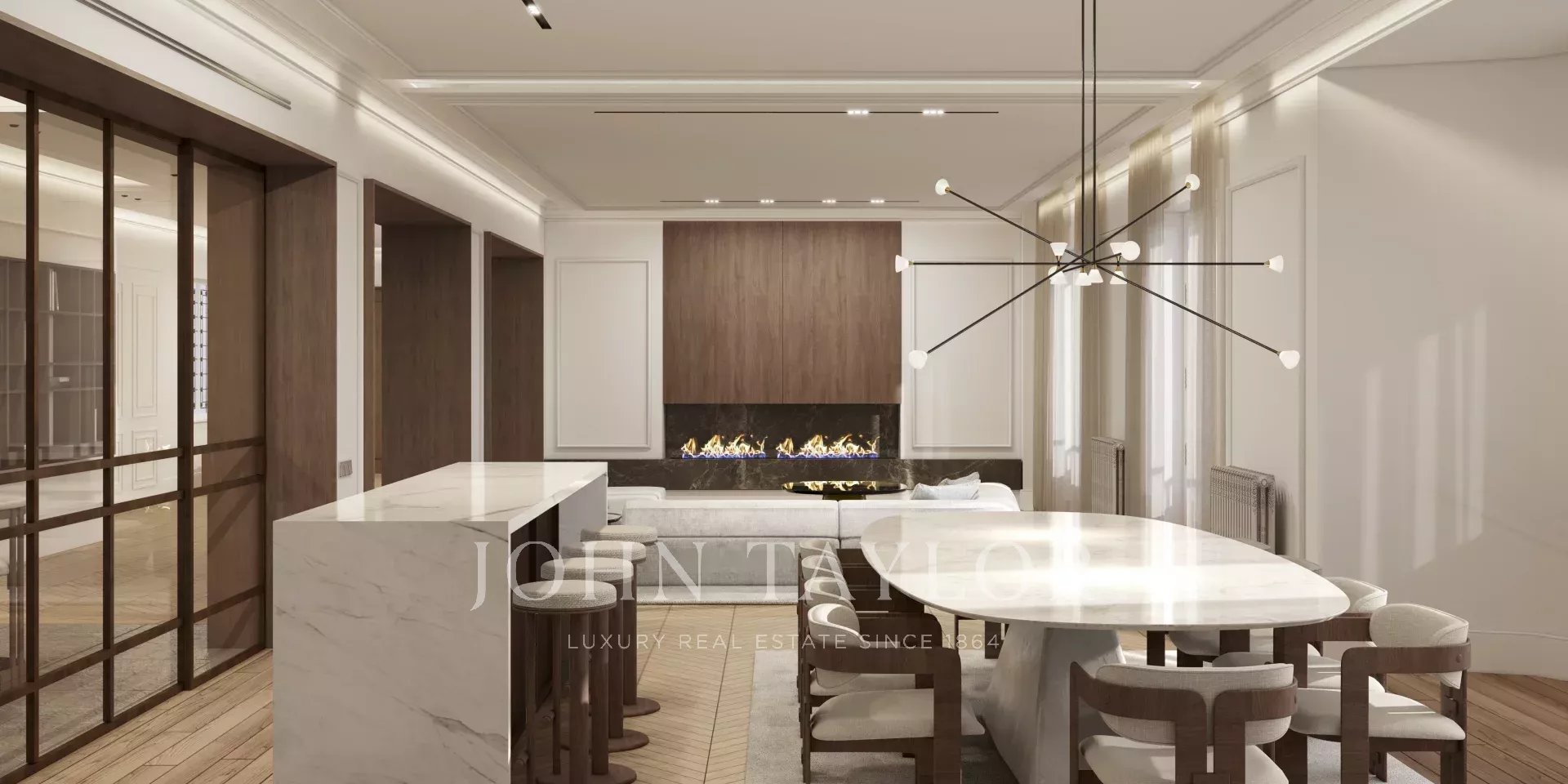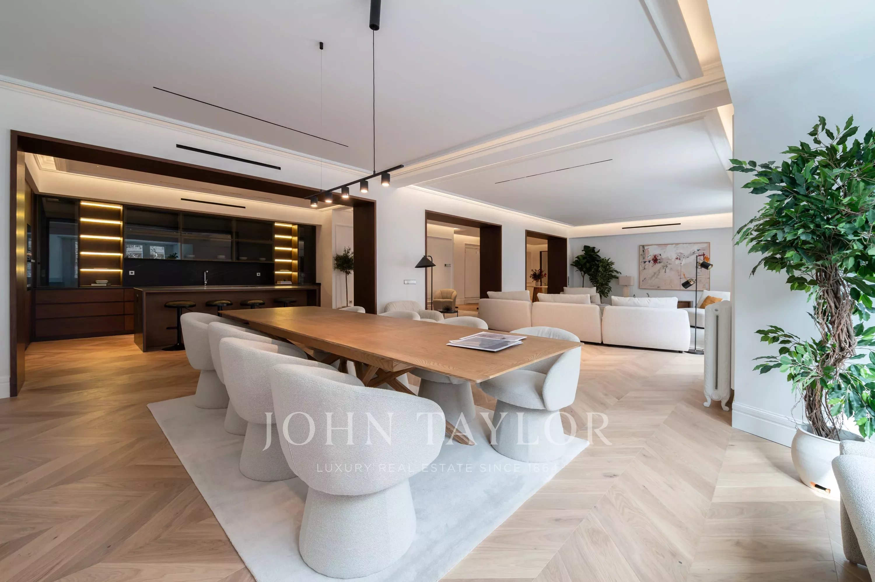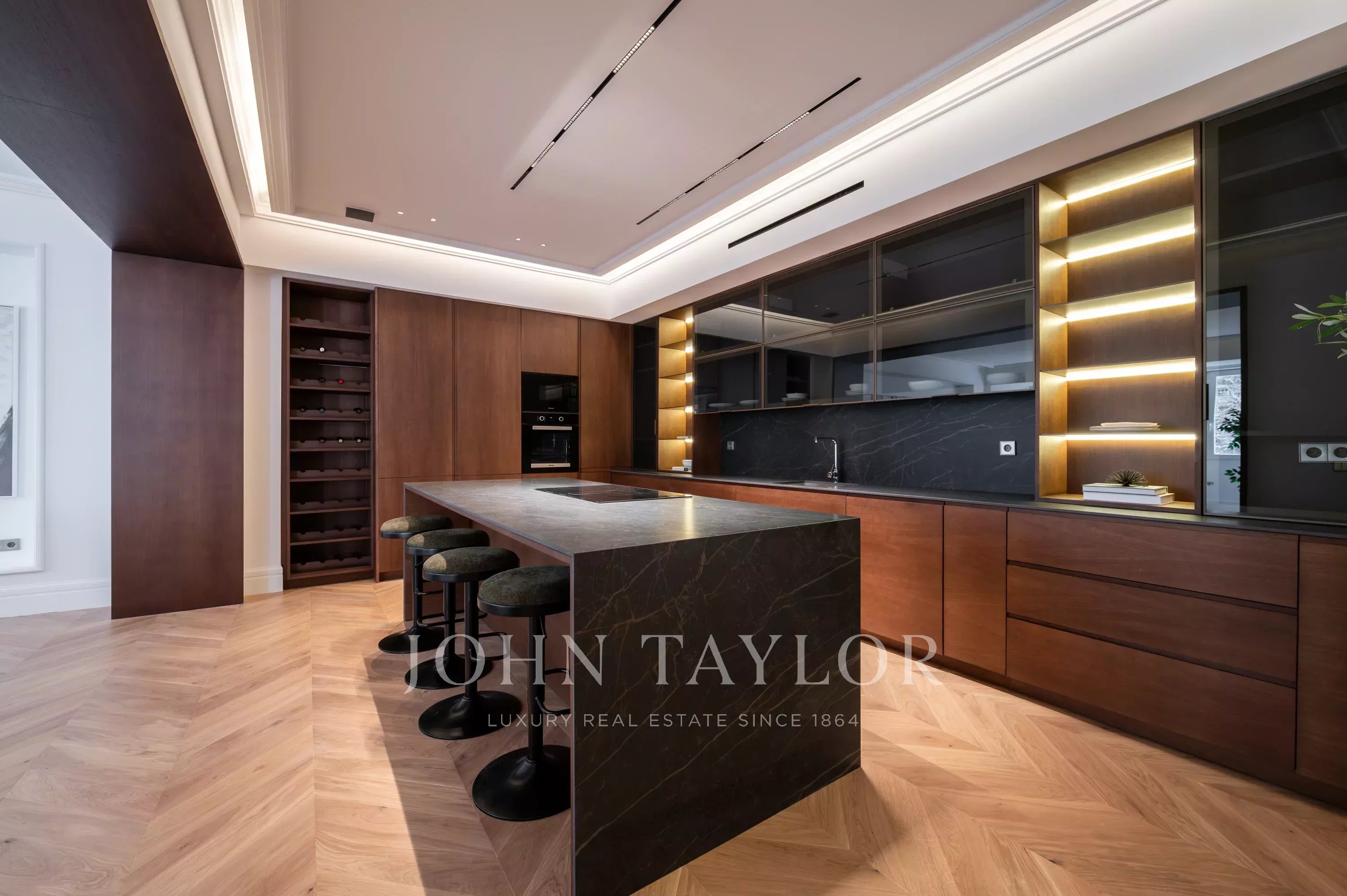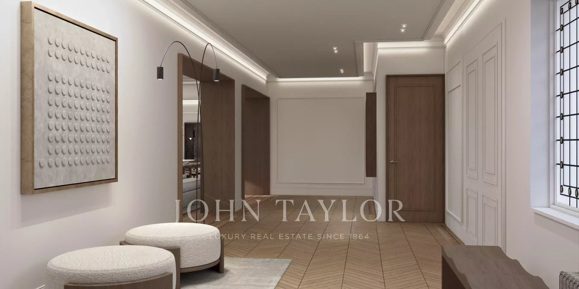 Tato výjimečná rezidence vyniká svou velikostí, třímetrovými stropy a tím, že zabírá celé první patro budovy. Má také zcela samostatný byt, který nabízí soukromí pro návštěvy a další členy rodiny.