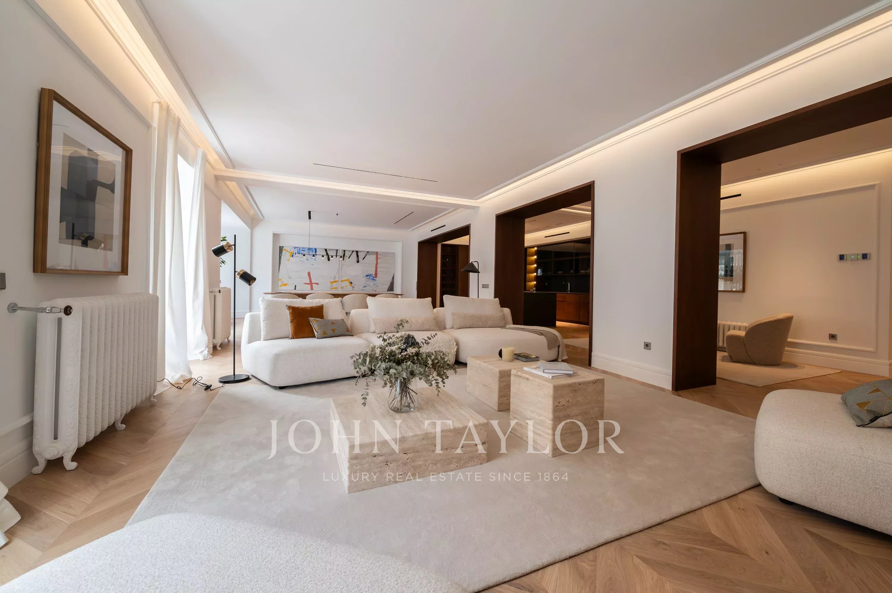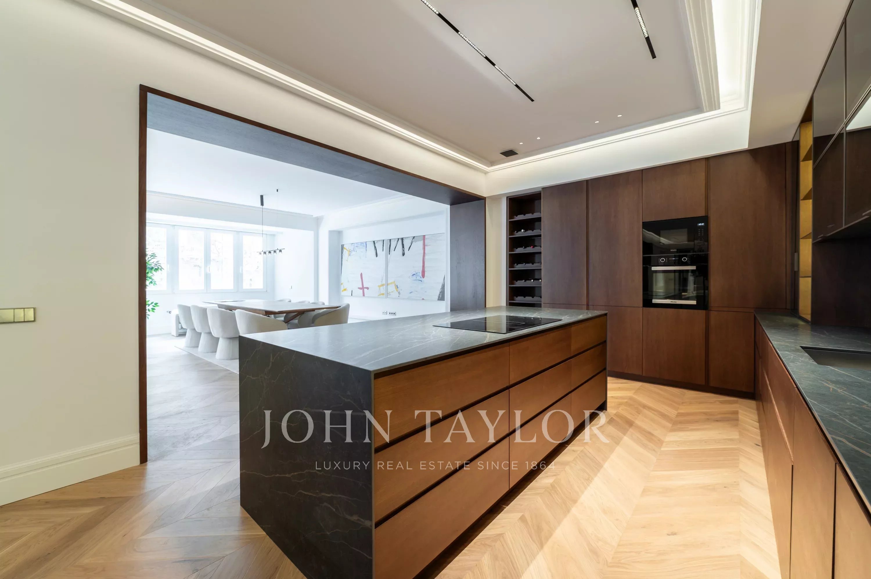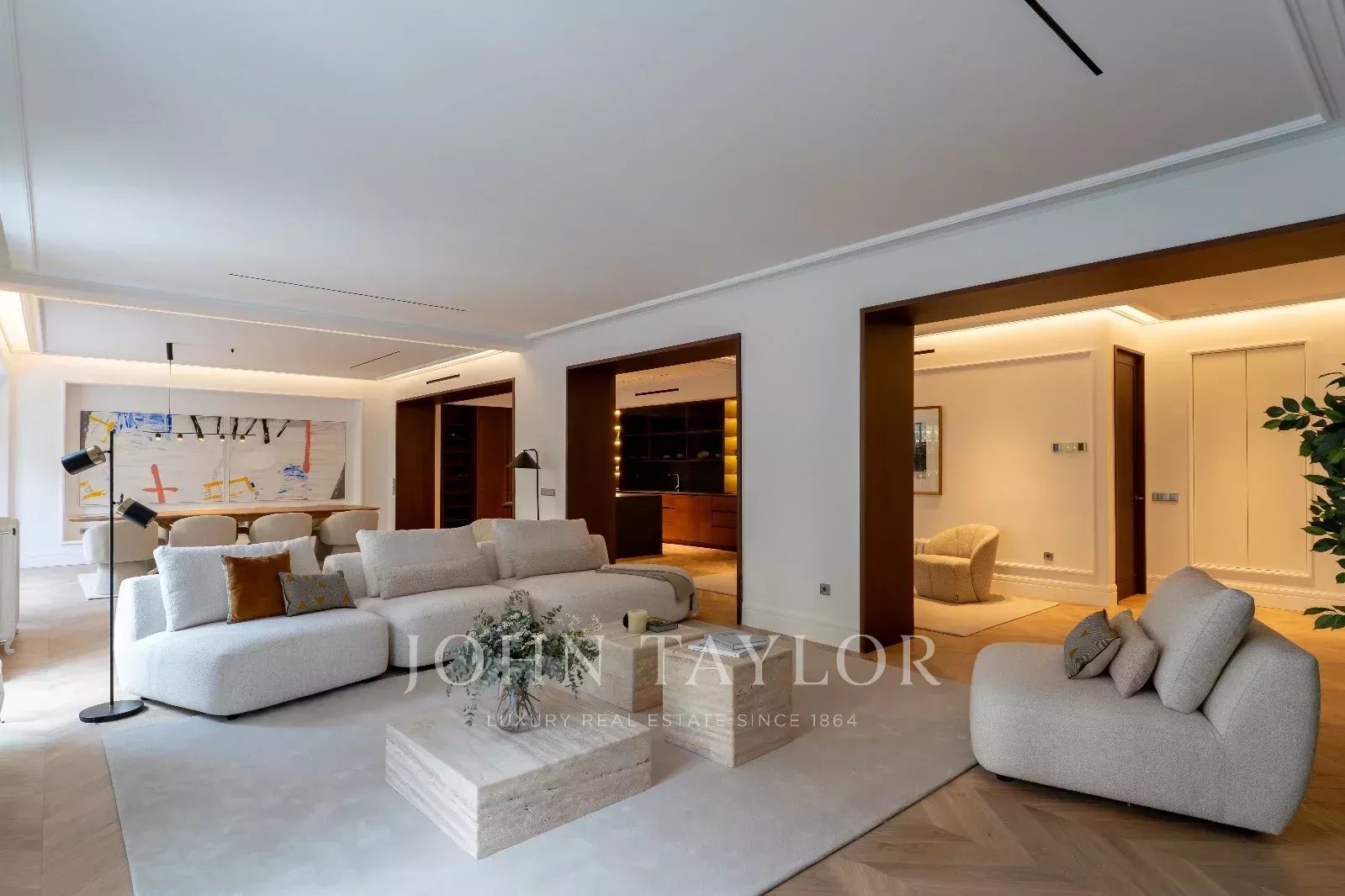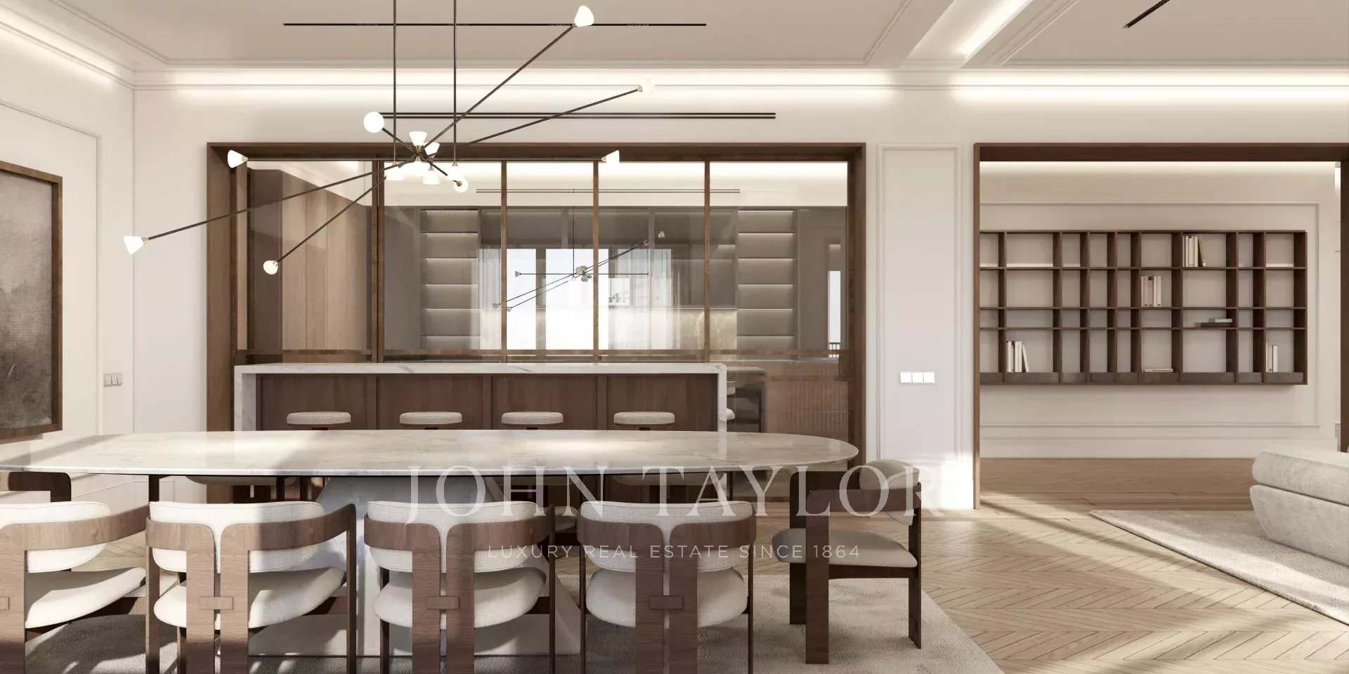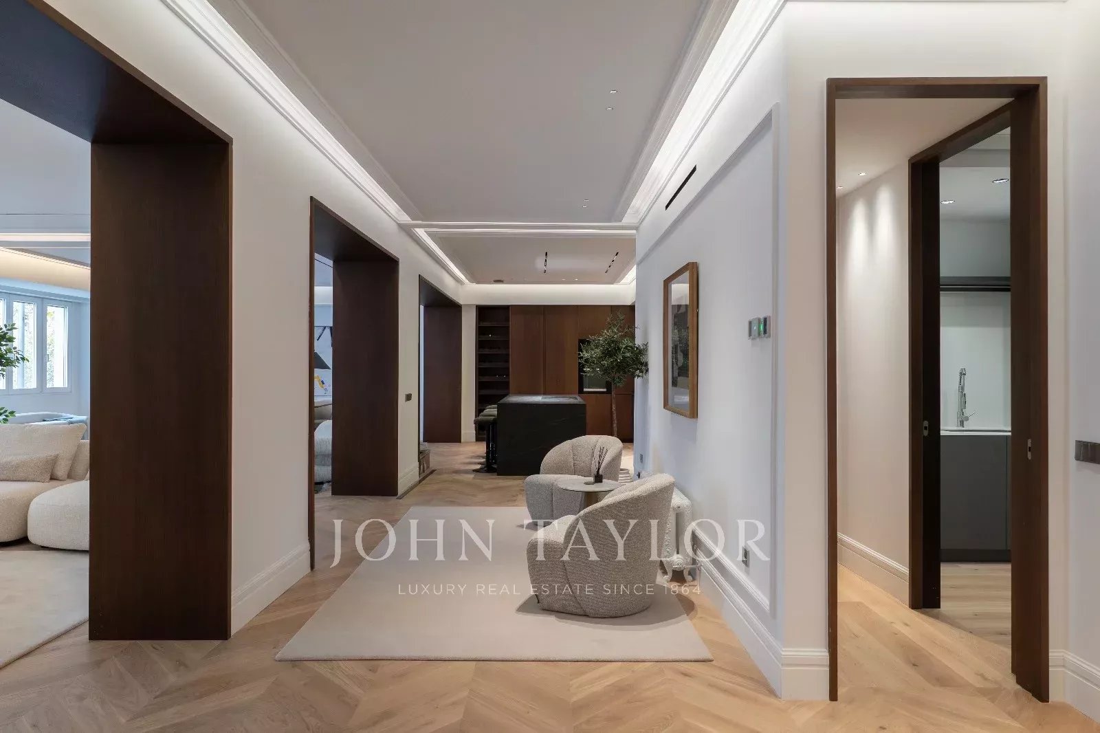 Tato výjimečná rezidence vyniká svou velikostí, třímetrovými stropy a tím, že zabírá celé první patro budovy. Má také zcela samostatný byt, který nabízí soukromí pro návštěvy a další členy rodiny.