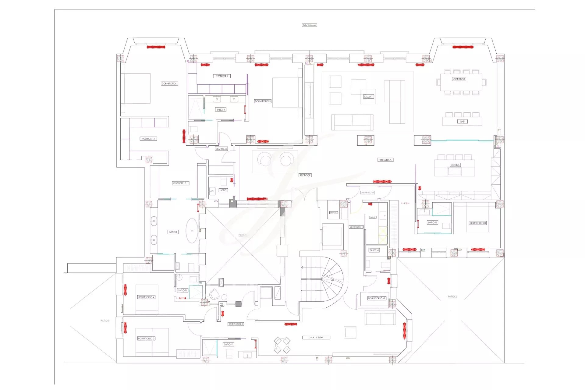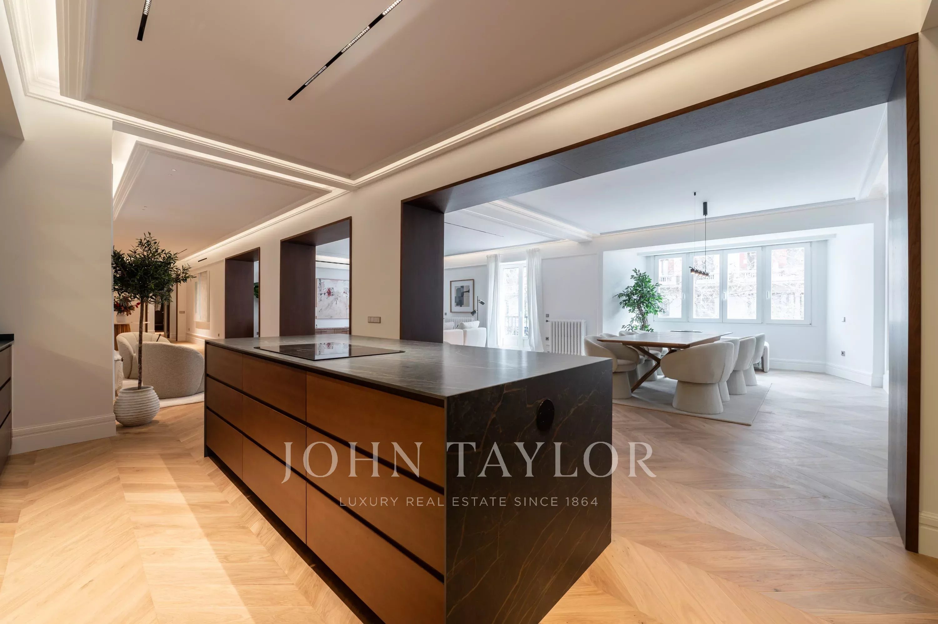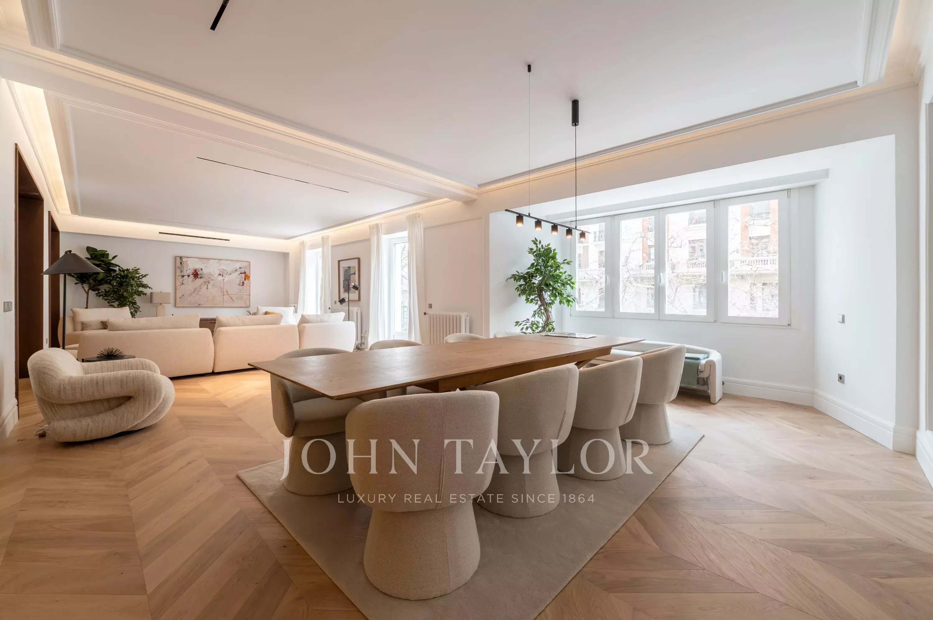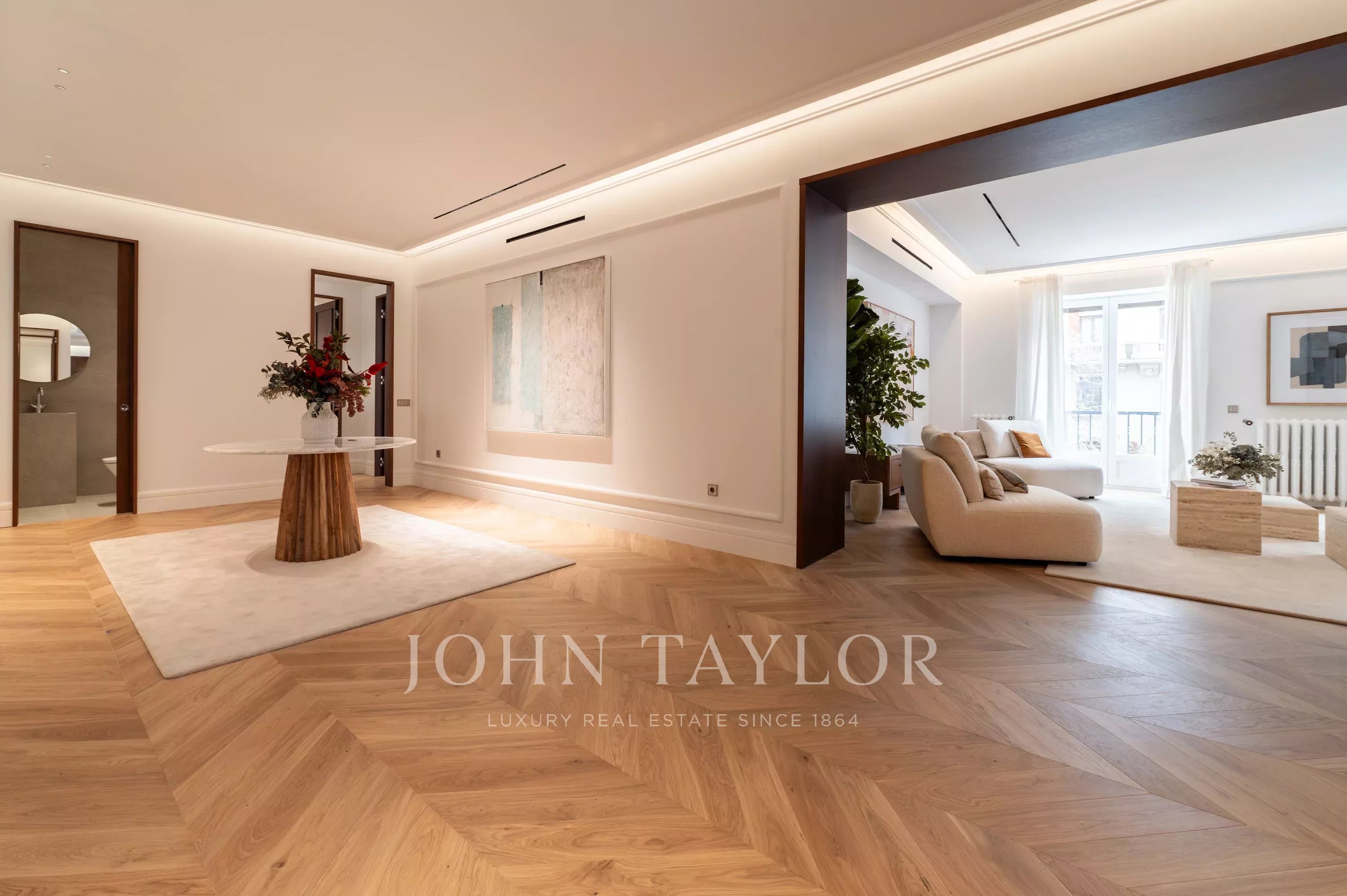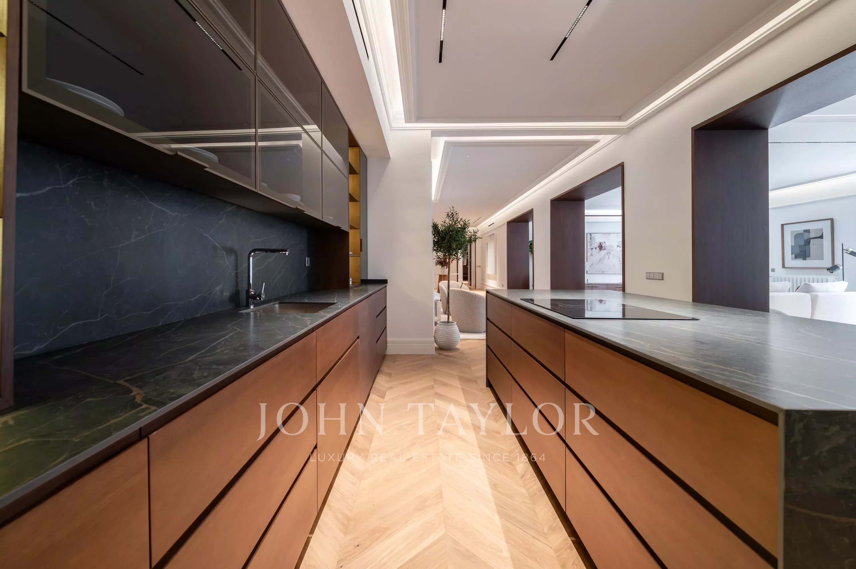 Tato výjimečná rezidence vyniká svou velikostí, třímetrovými stropy a tím, že zabírá celé první patro budovy. Má také zcela samostatný byt, který nabízí soukromí pro návštěvy a další členy rodiny.