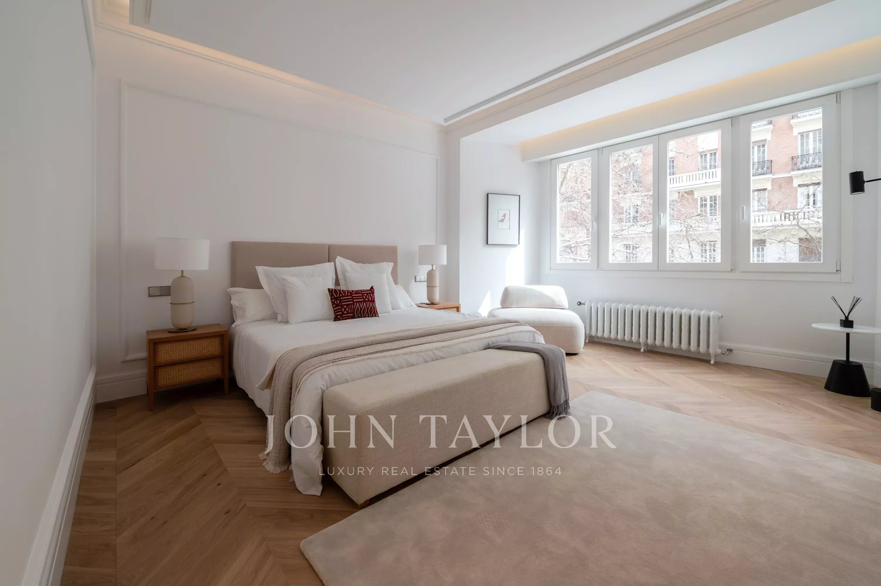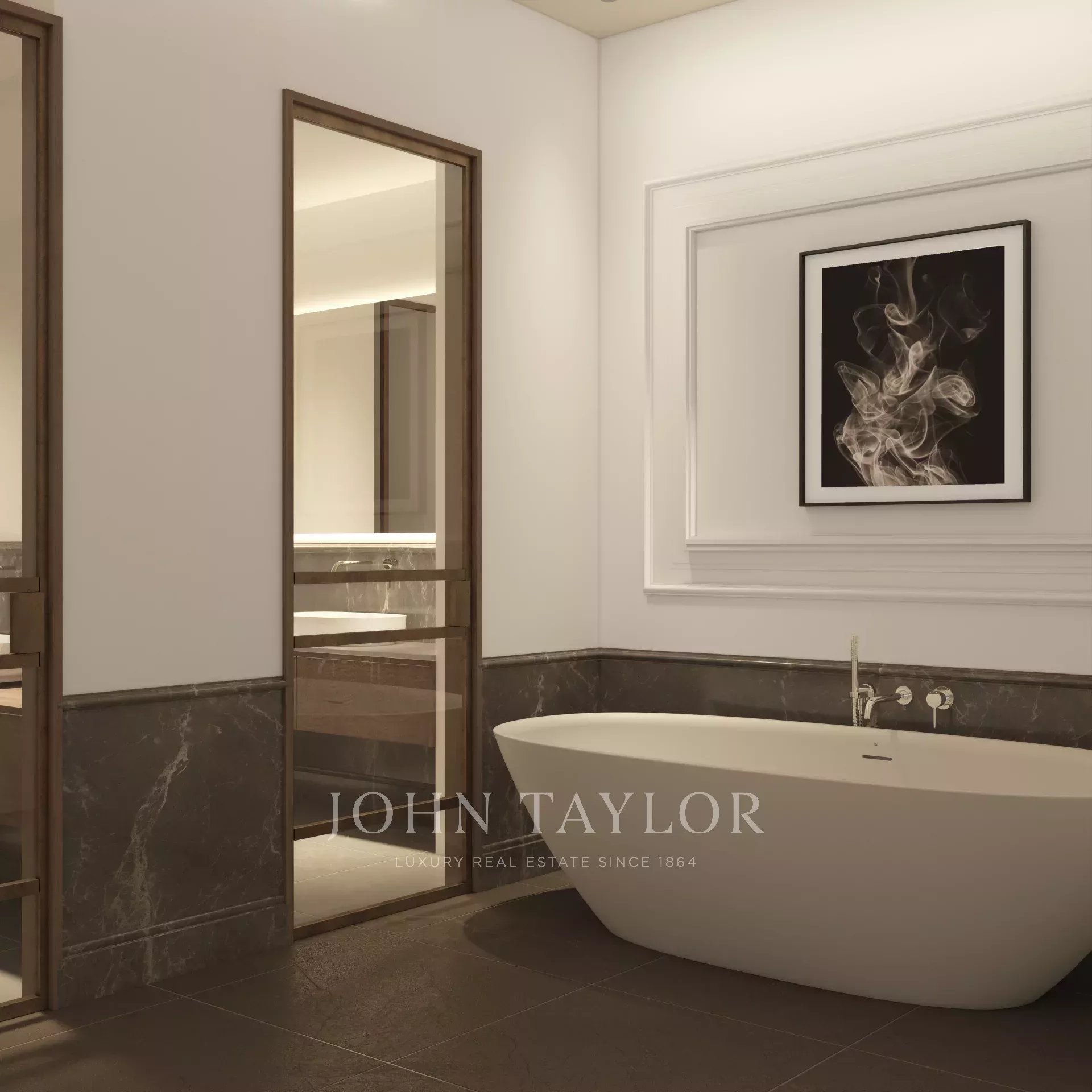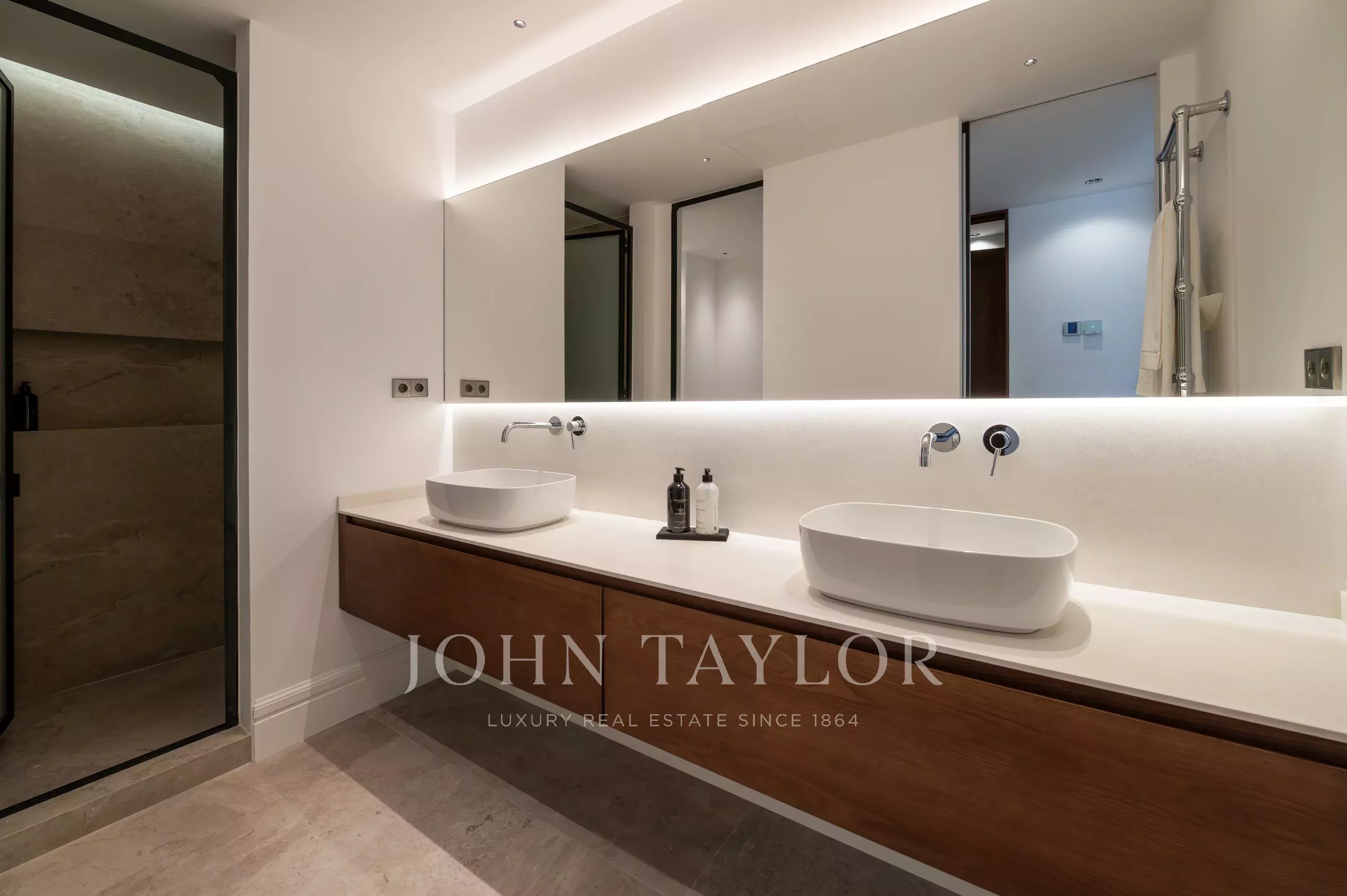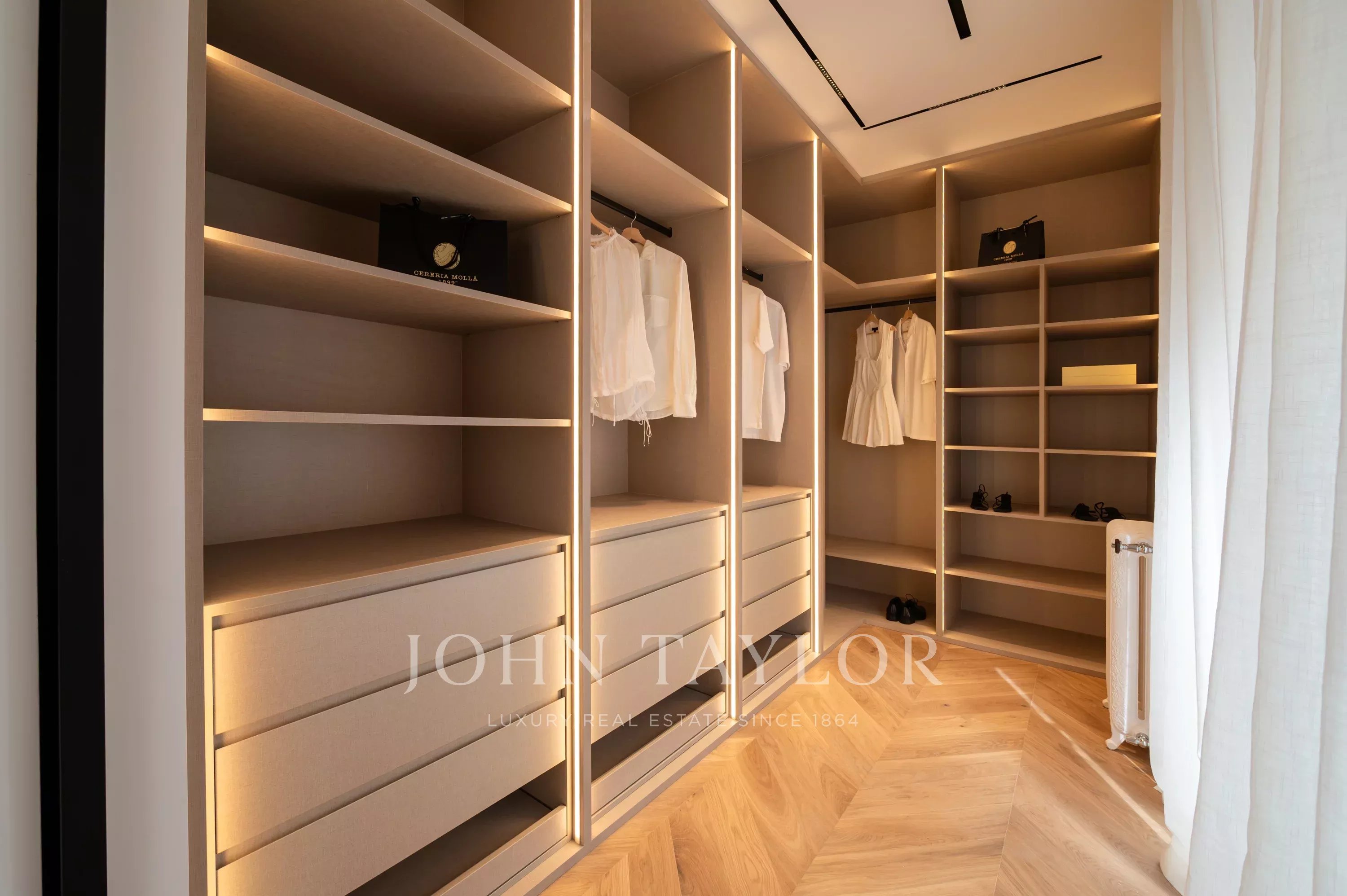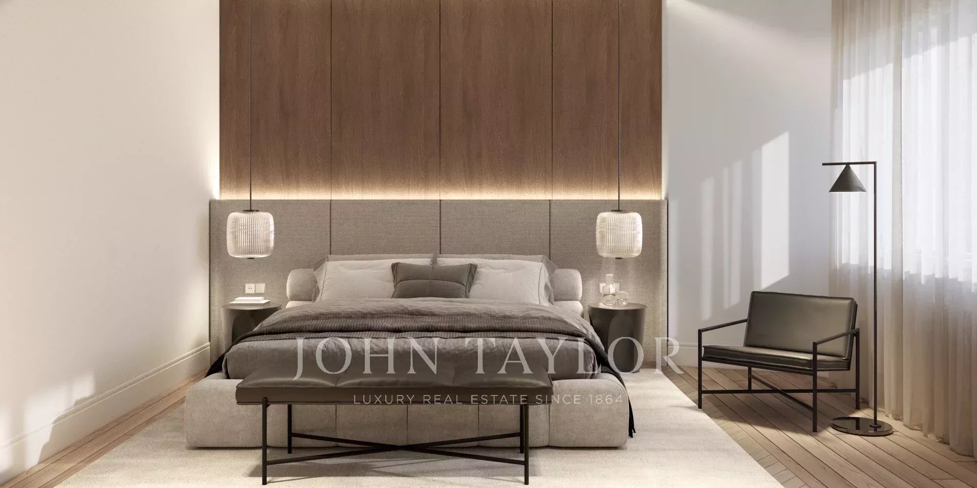 Hlavní ložnice se vyrovná nejlepším hotelům na světě, je prostorná, s velkými okny s výhledem do ulice, dvěma nezávislými šatnami a vlastní koupelnou obloženou exkluzivním mramorem Pietra Grey, vybavenou moderními designovými bateriemi a luxusními povrchovými úpravami.