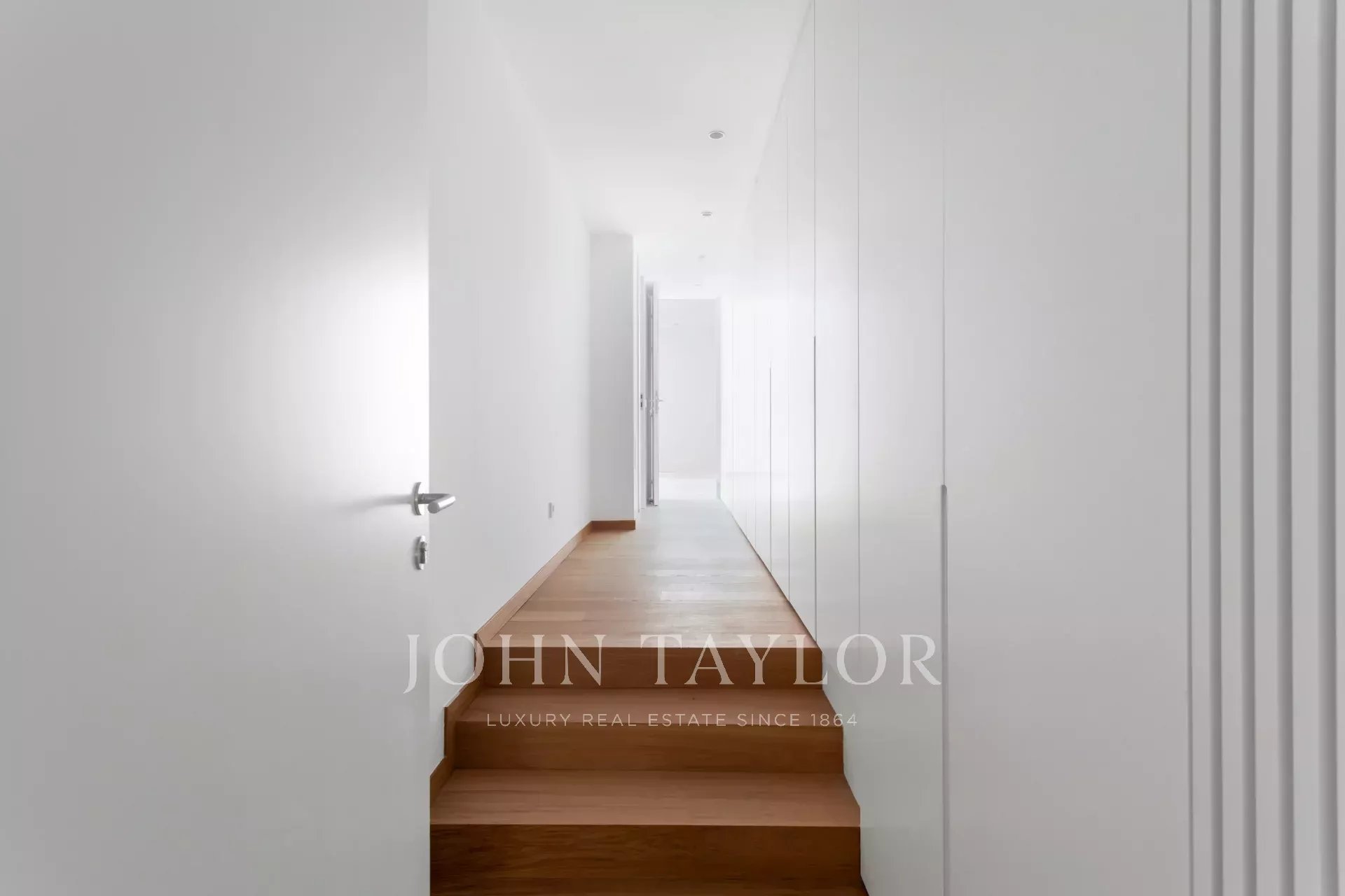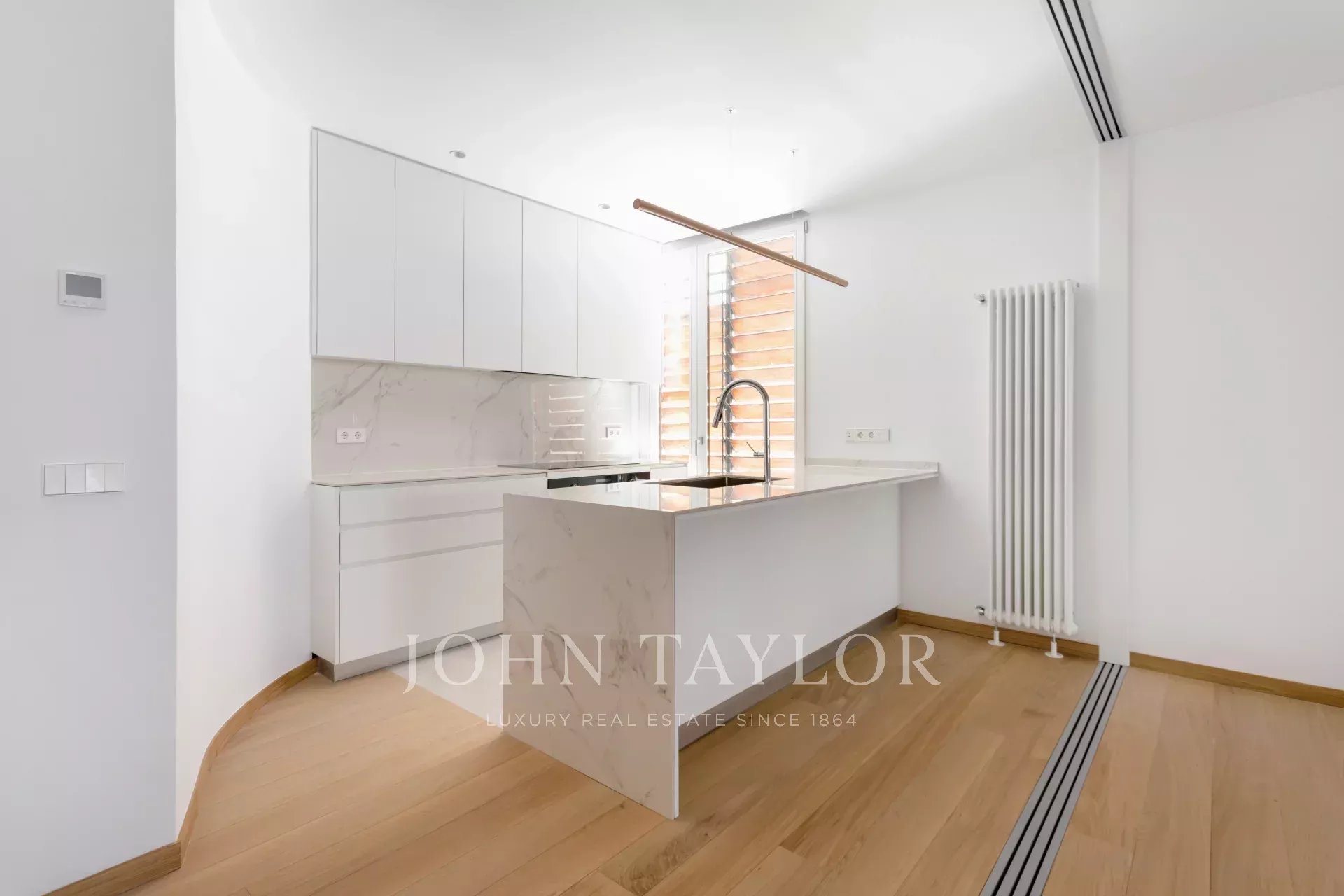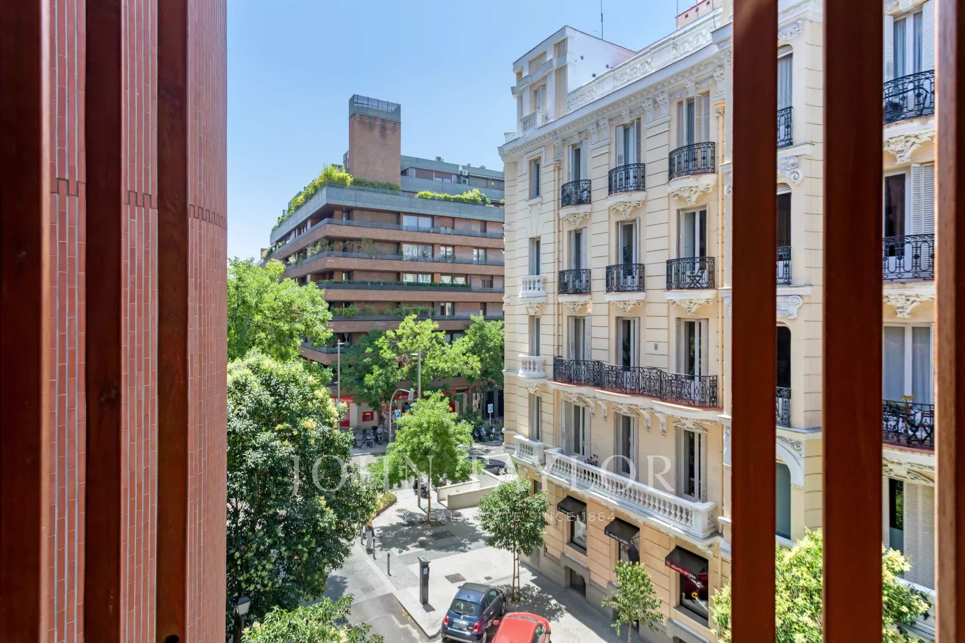 Tento jedinečný byt má na 307 m² podlahové plochy soukromou vstupní halu vedle hlavního výtahu, druhou vstupní halu do interiéru, která vede do veřejné části bytu - toalety pro hosty, obývacího pokoje, jídelny a otevřené kuchyně - všechny se otevírají na terasy směrem do ulice Lagasca. Ze vstupní haly je také přístup do ložnicové části přes velké šatní skříně a "pracoviště", které člení první hlavní apartmá s mimořádnou šatnou a přístupem na terasu s výhledem na ulici Ortega y Gasset spolu s kompletní koupelnou; a druhé hlavní apartmá, rovněž s přístupem na hlavní terasu, šatní částí a kompletní koupelnou.