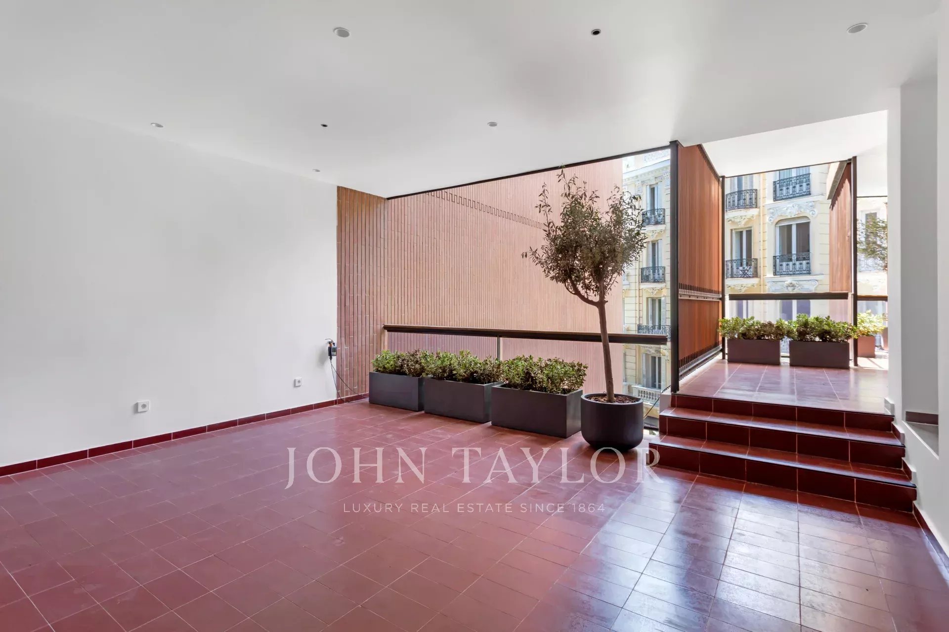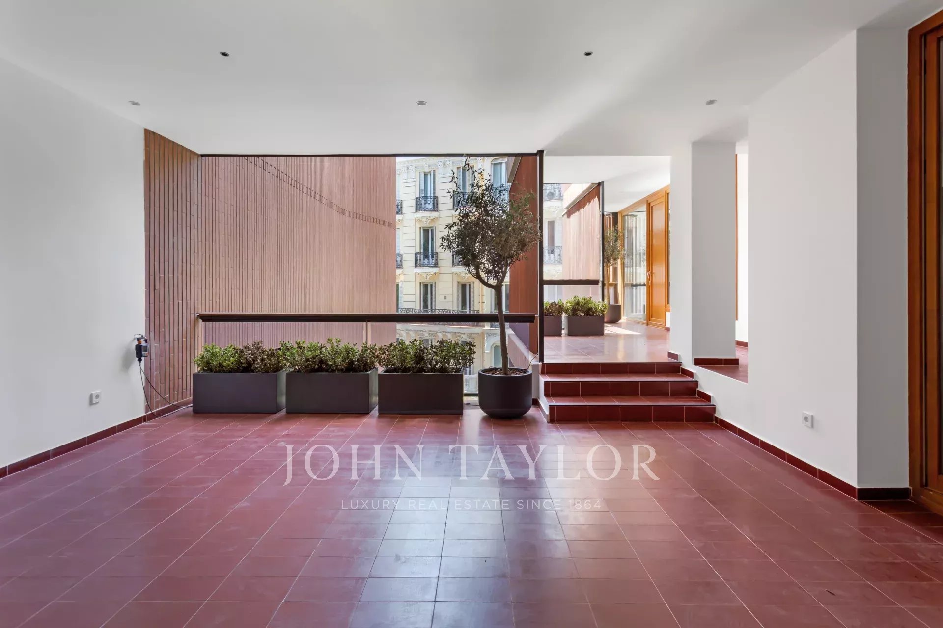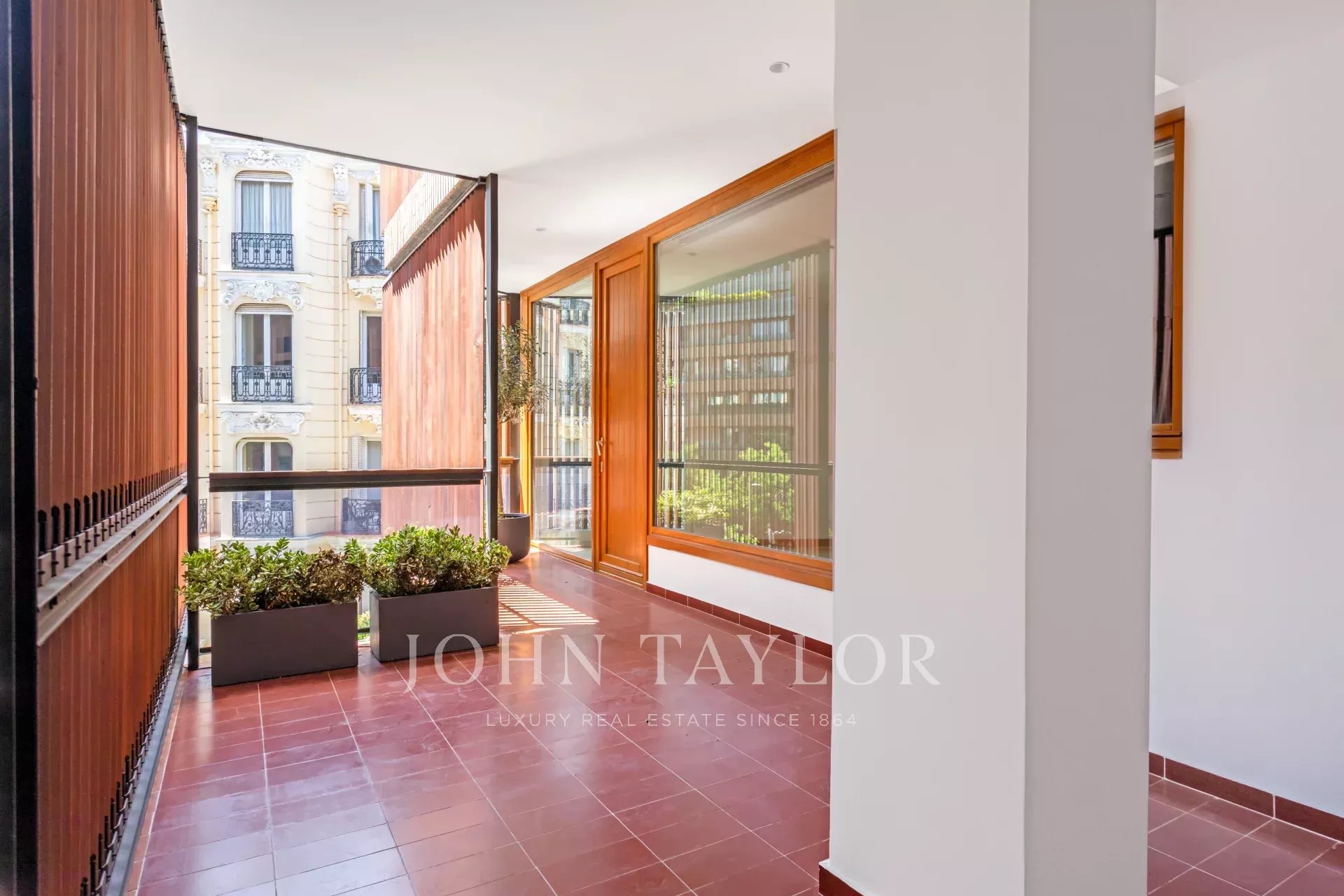 Tento jedinečný byt má na 307 m² podlahové plochy soukromou vstupní halu vedle hlavního výtahu, druhou vstupní halu do interiéru, která vede do veřejné části bytu - toalety pro hosty, obývacího pokoje, jídelny a otevřené kuchyně - všechny se otevírají na terasy směrem do ulice Lagasca. Ze vstupní haly je také přístup do ložnicové části přes velké šatní skříně a "pracoviště", které člení první hlavní apartmá s mimořádnou šatnou a přístupem na terasu s výhledem na ulici Ortega y Gasset spolu s kompletní koupelnou; a druhé hlavní apartmá, rovněž s přístupem na hlavní terasu, šatní částí a kompletní koupelnou.