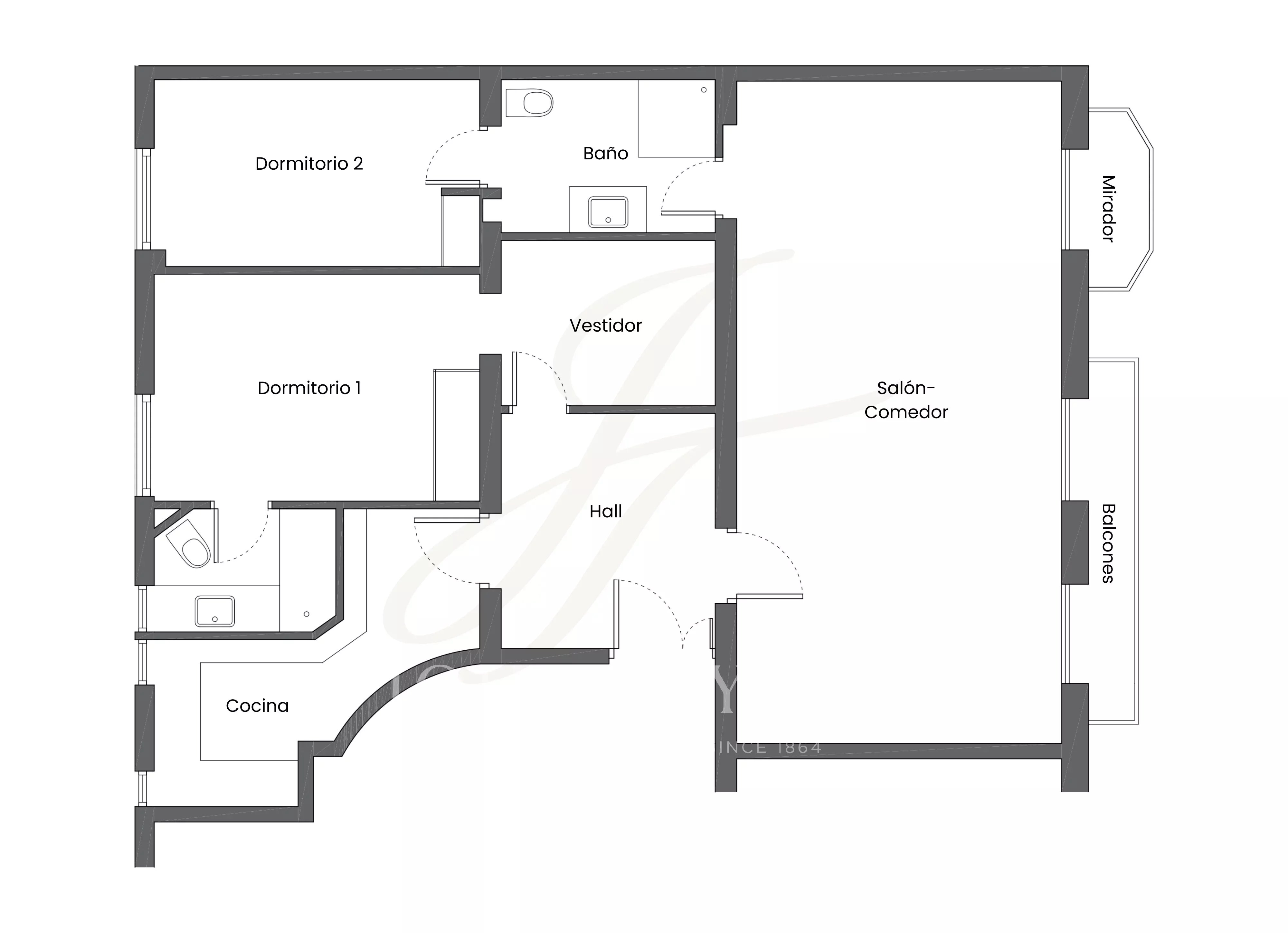 Nemovitost vyniká příjemným výhledem a vynikajícím přirozeným světlem díky dvěma balkonům a okouzlujícímu arkýři, které dodávají fasádě charakter a výraznost. V současné době je prezentován k rekonstrukci a nabízí mimořádný potenciál pro vytvoření moderního a funkčního domova se dvěma ložnicemi s vlastní koupelnou, prostorným obývacím pokojem, samostatnou kuchyní, koupelnou pro hosty a prádelnou.